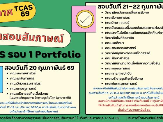 วันที่ 21 - 22 กุมภาพันธ์ 2569 วันสอบสัมภาษณ์ "คณะกายภาพบำบัด" TCAS 69 รอบที่ 1 (…