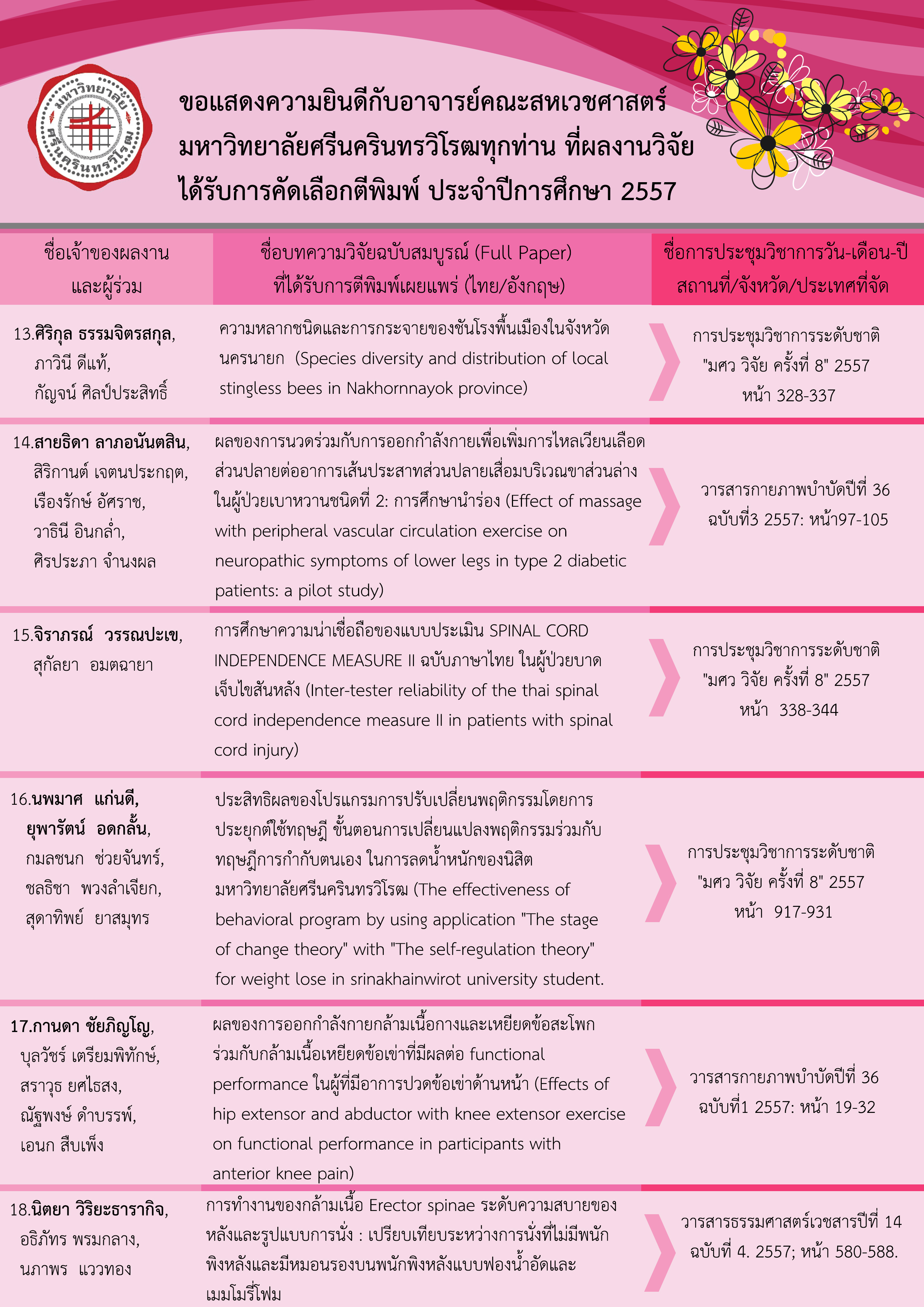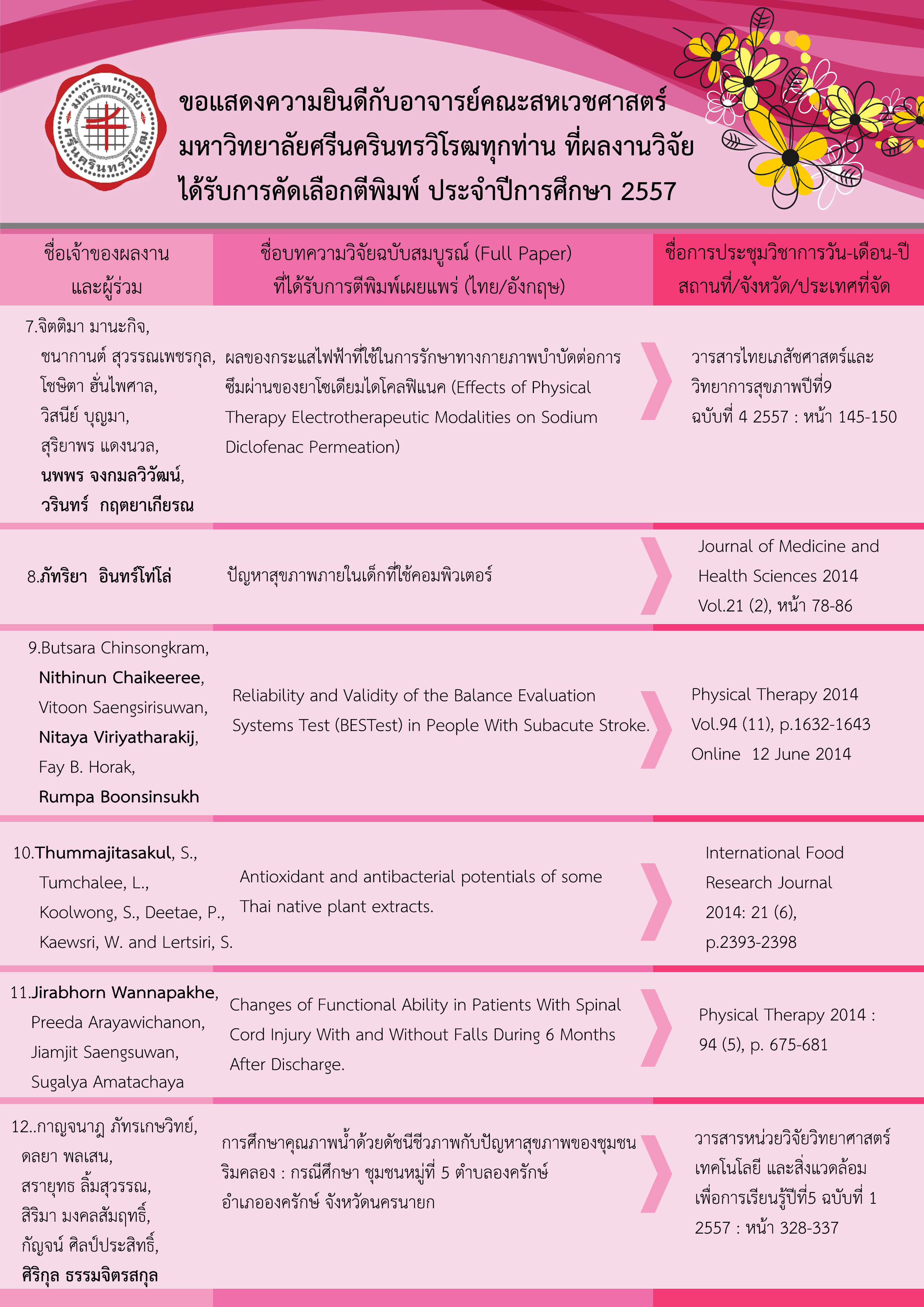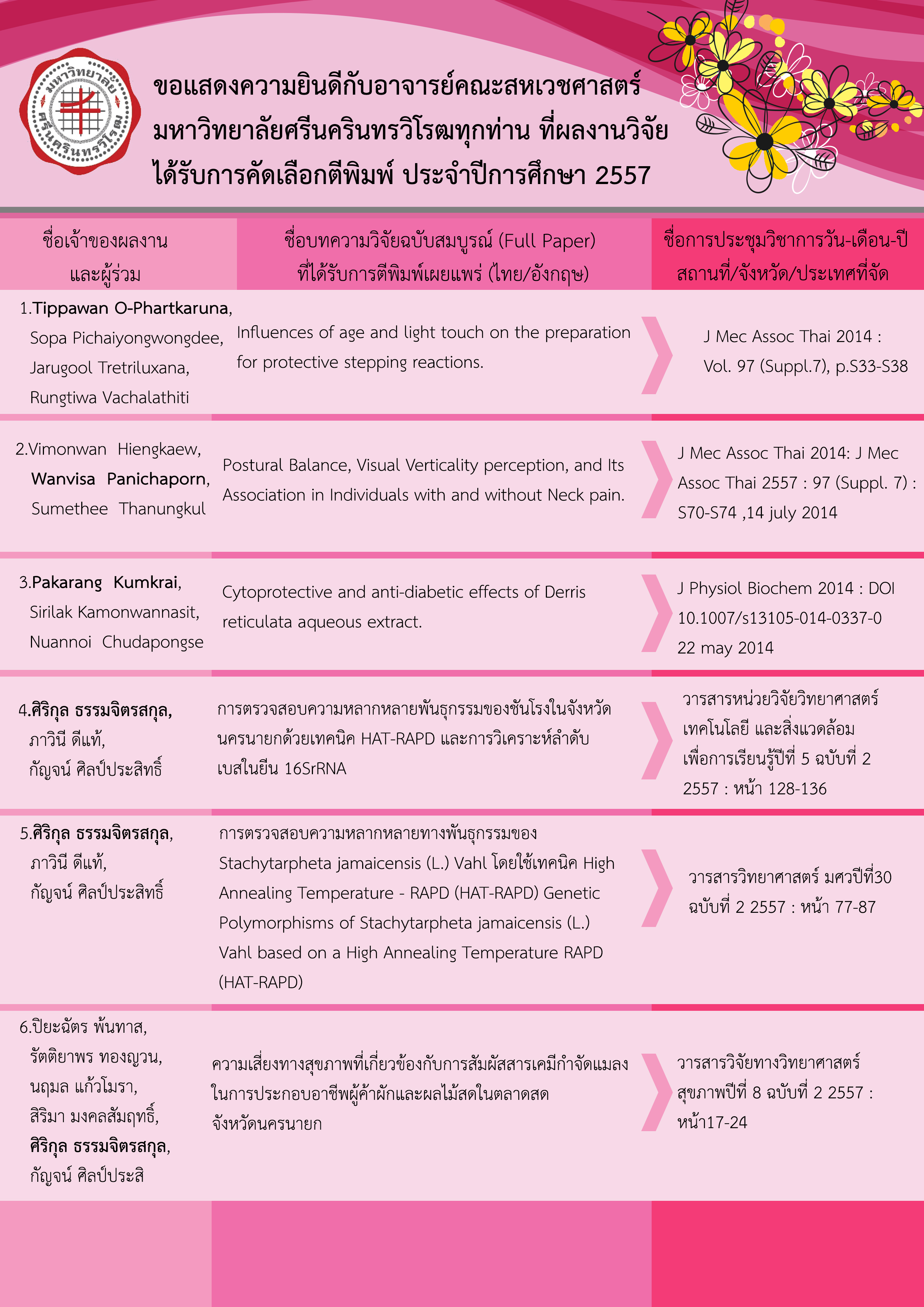 ข่าวประชาสัมพันธ์ ขอแสดงความยินดีกับอาจารย์คณะสหเวชศาสตร์ ที่ผลงานวิจัยได้รับการคัดเลือกตีพิมพ์ ประจำปี2557 วันเริ่ม 2015-09-28 วันสิ้นสุด 2015-09-28 PreviousNext