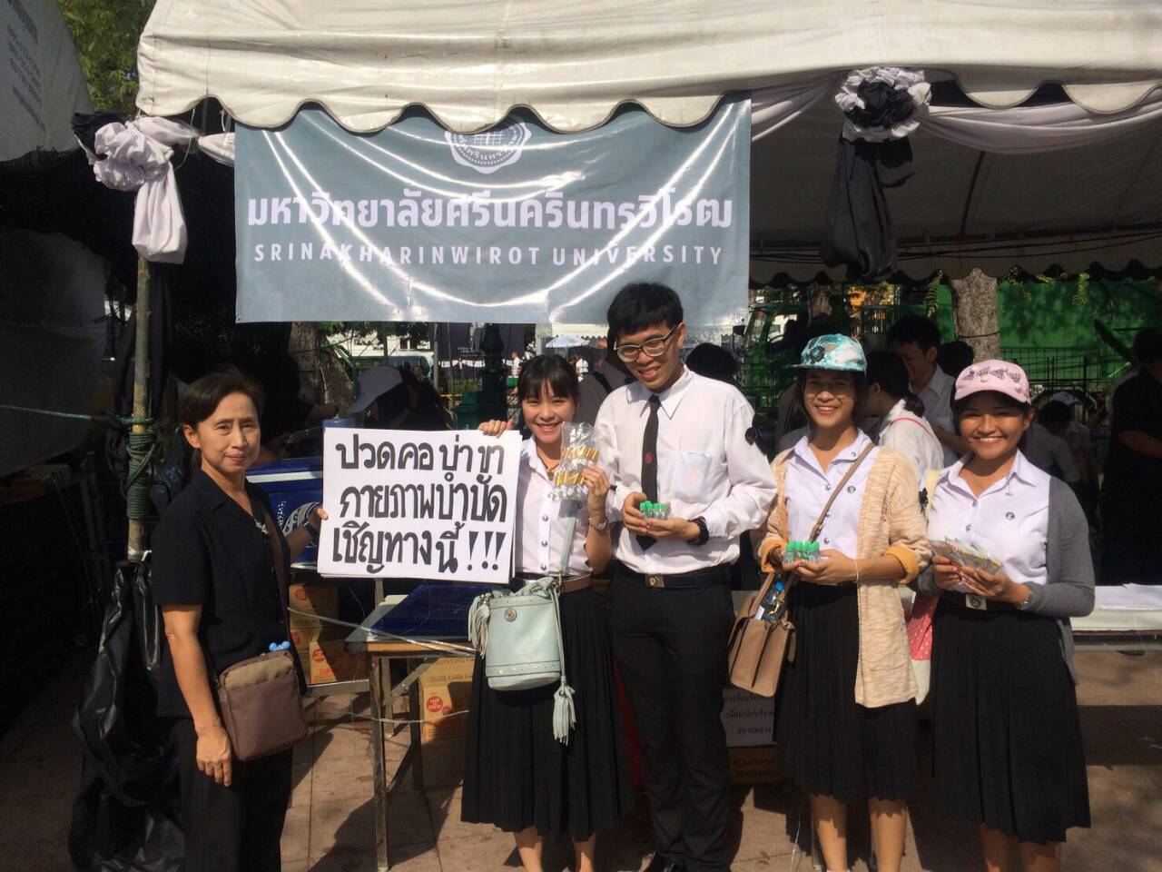เมื่อวันที่ 20 พฤศจิกายน 2559 คณาจารย์และนิสิต คณะกายภาพบำบัด มศว ร่วมโครงการ "ทำดีเพื่อพ่อ" โดยมีการแจกพิมเสนน้ำ การให้บริการทางกายภาพบำบัด นวดบรรเทาอาการปวดเมื่อย