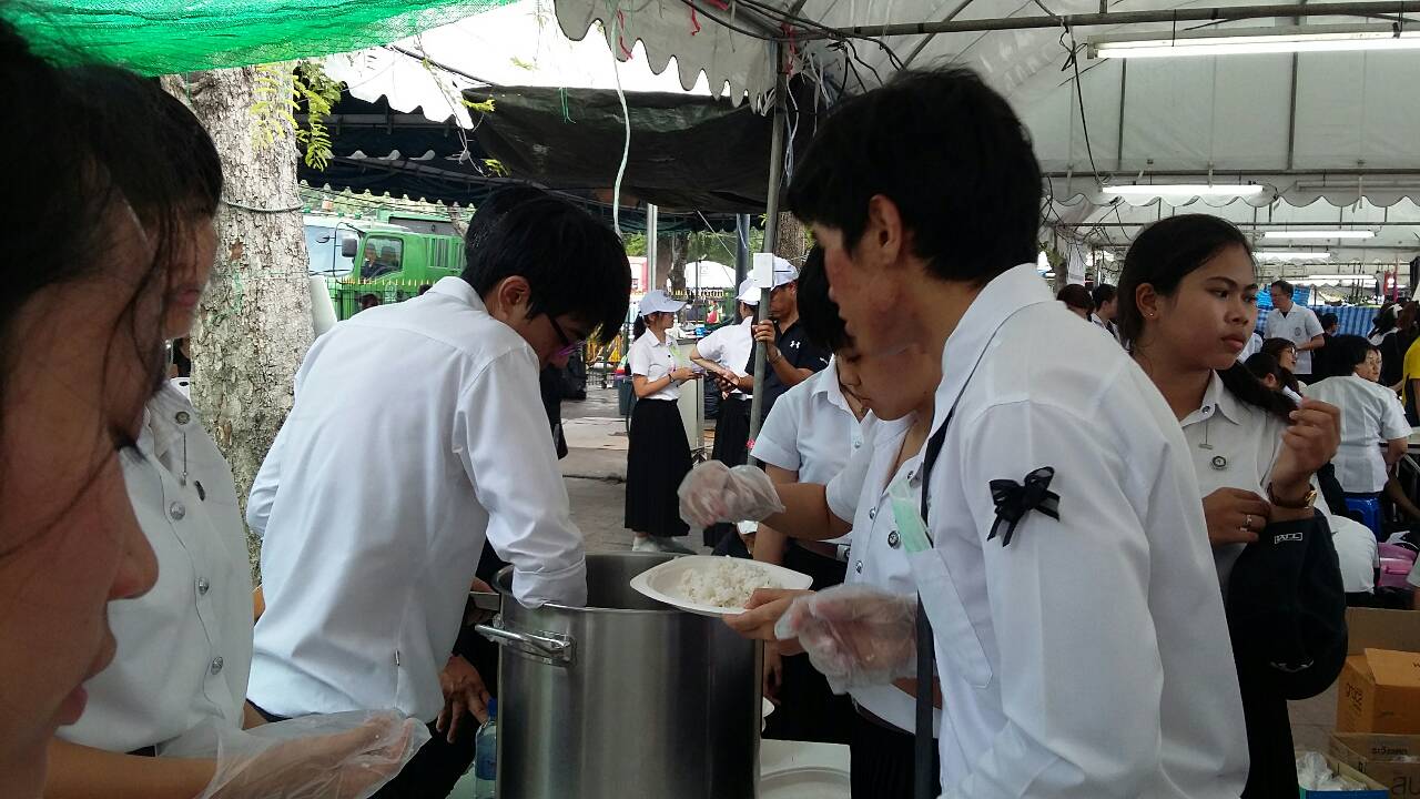 ร่วมแจกจ่ายอาหารและเครื่องดื่ม ให้กับประชาชนที่มาสักการะพระบรมศพ ณ บริเวณท้องสนามหลวง