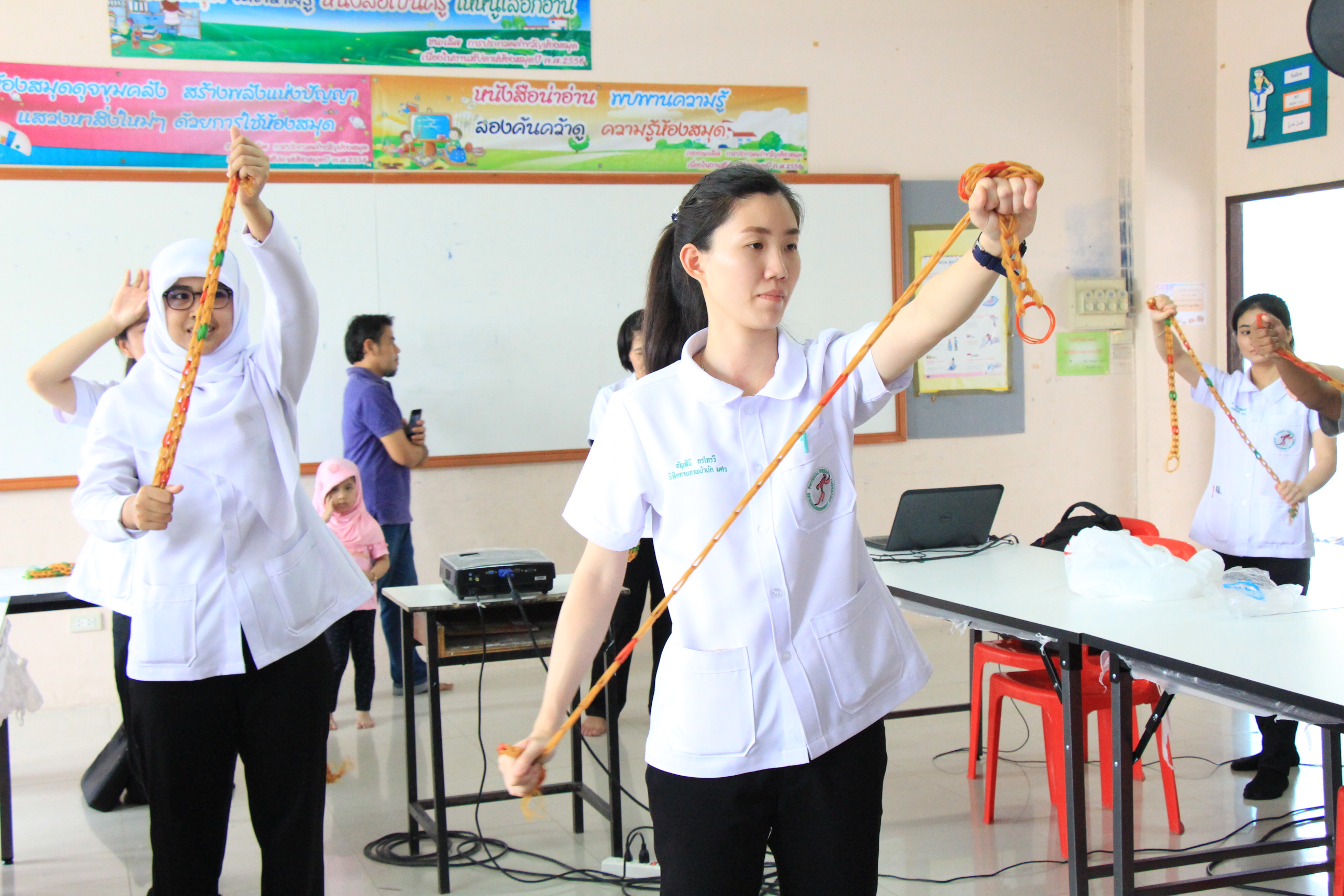คณะกายภาพบำบัด มศว จัดโครงการบริการวิชาการ ในหัวข้อ "โครงการครอบครัวสุขภาพดี ชุมชนมีสุข ปีที่ 2" ให้กับนักเรียนโรงเรียนผดุงอิสลาม จ.นครนายก เมื่อวันที่ 15 มีนาคม 2560 โดยจัดกิจกรรมให้ความรู้เกี่ยวกับการดูแลสุขภาพของตนเองและ คนในครอบครัว มุ่งเน้นให้นักเรียนที่เข้าร่วมกิจกรรม ได้เรียนรู้วิธีการตรวจวัดชีพจร การวัดความดันโลหิต การออกกำลังกายเพื่อยืดกล้ามเนื้อส่วนต่าง ๆ บรรยายความรู้เบื้องต้นเกี่ยวกับโรคหลอดเลือดในสมอง และวิธีการช่วยเหลือผู้ป่วยหมดสติเบื้องต้น ทั้งนี้เพื่อให้นักเรียนได้นำความรู้ที่ได้กลับไปดูแลตนเองและผู้ปกครองที่บ้านได้อย่างถูกวิธี
