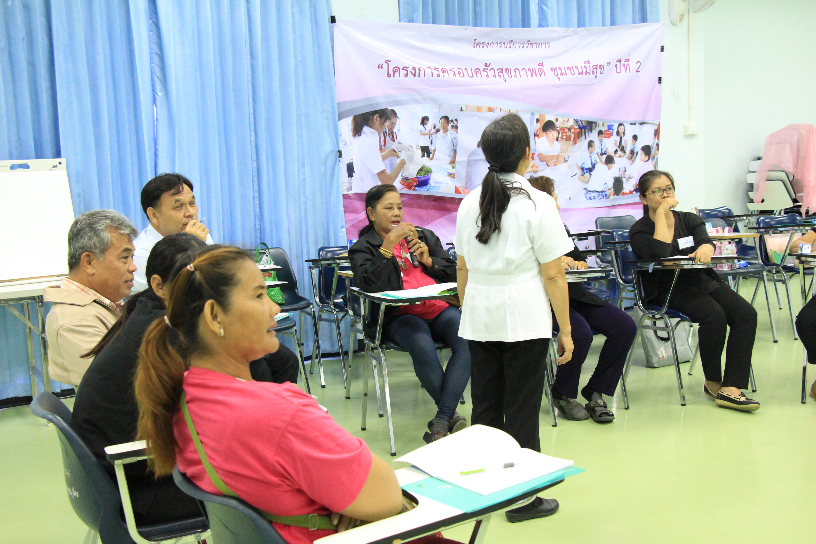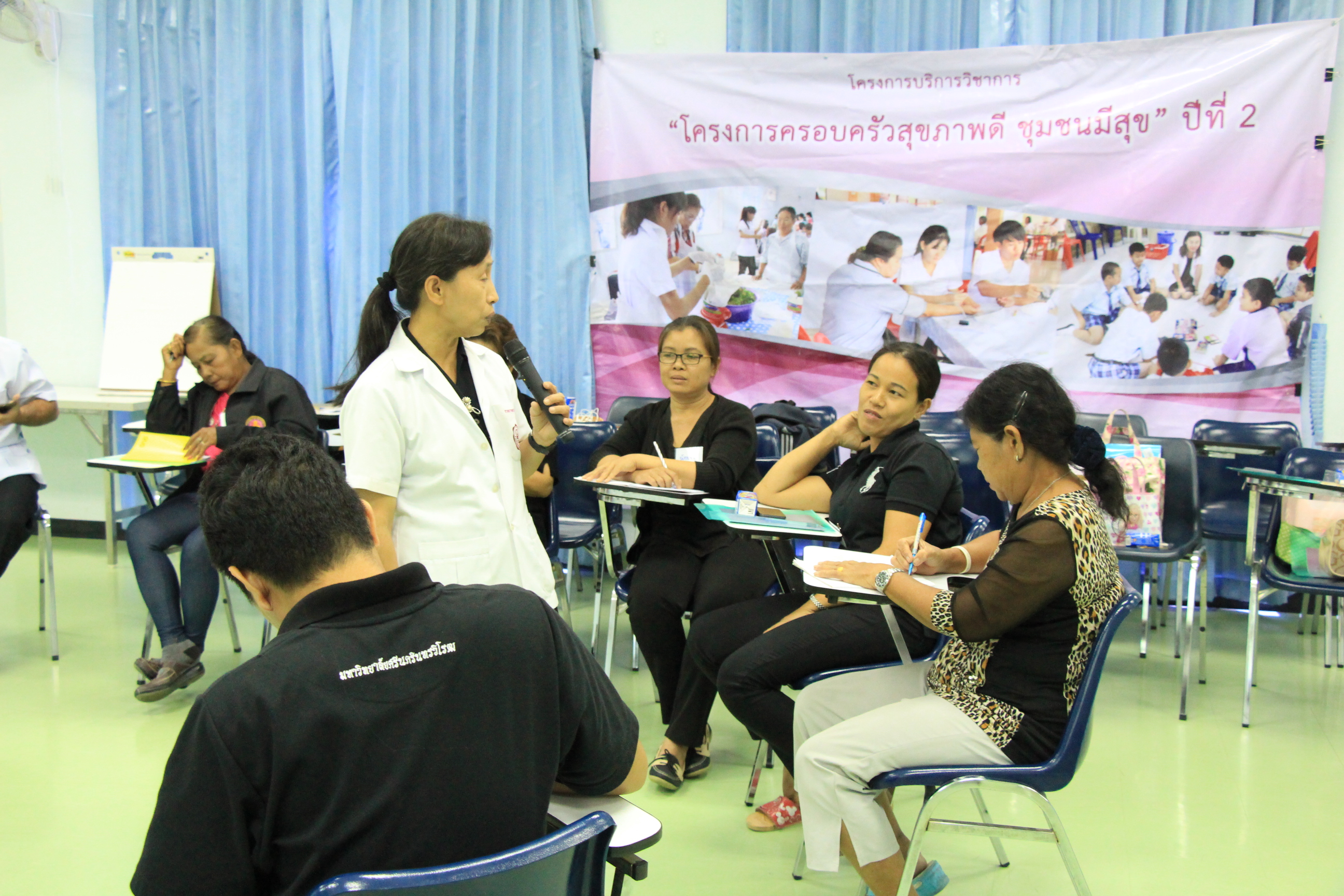 เมื่อวันที่ 25 พฤษภาคม 2560 คณะกายภาพบำบัด มศว ได้จัดการสัมมนาแลกเปลี่ยนเรียนรู้ ในหัวข้อ "ครอบครัวสุขภาพดี ชุมชนมีสุขได้อย่างไร" นำโดย ผศ.ดร.รัตติยา จินเดหวา ผู้ช่วยคณบดีฝ่ายกิจการนิสิตและบริการชุมชน ร่วมกับ ผู้นำชุมชน อสม.ตำบลบางปลากด และตำบลคลองใหญ่