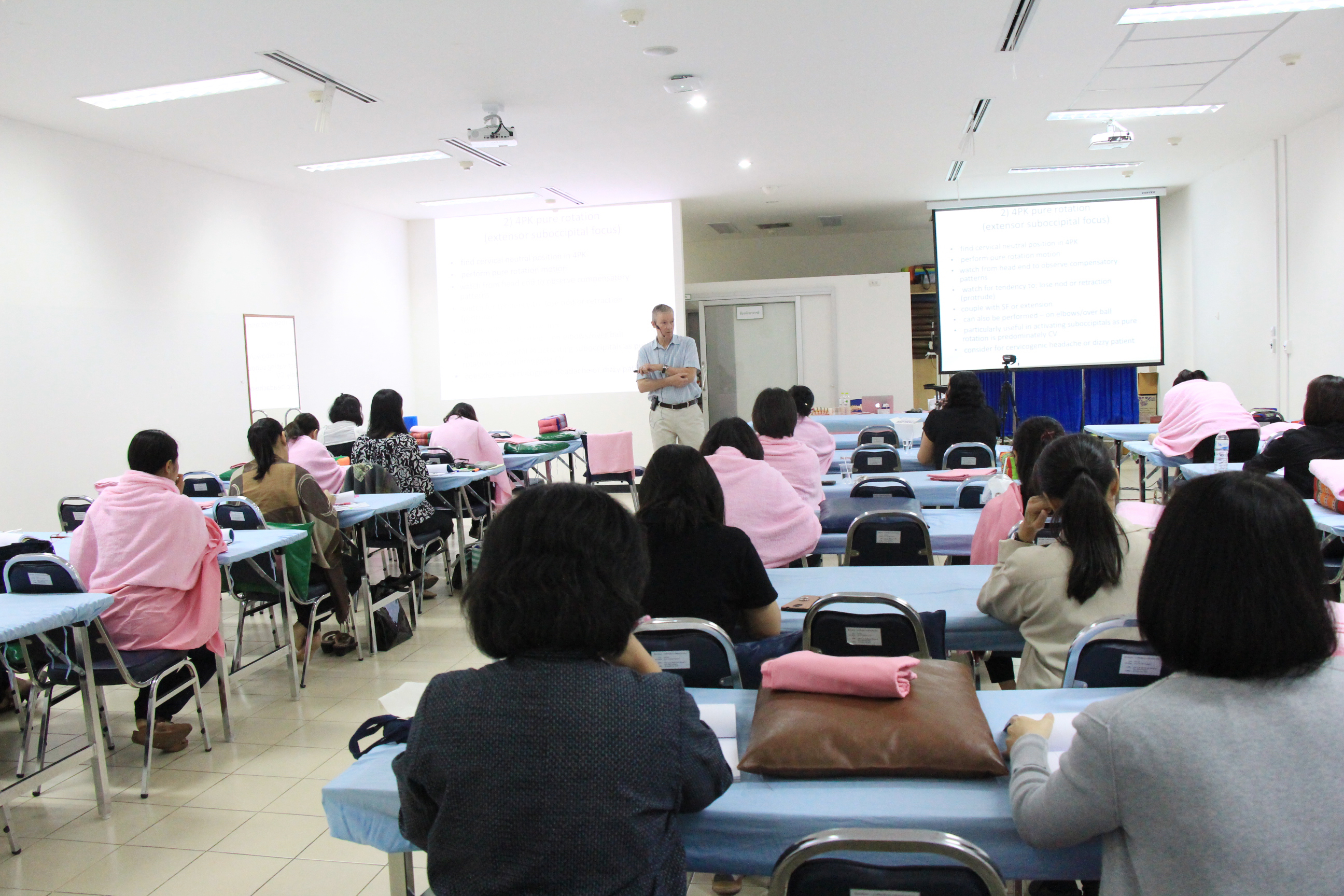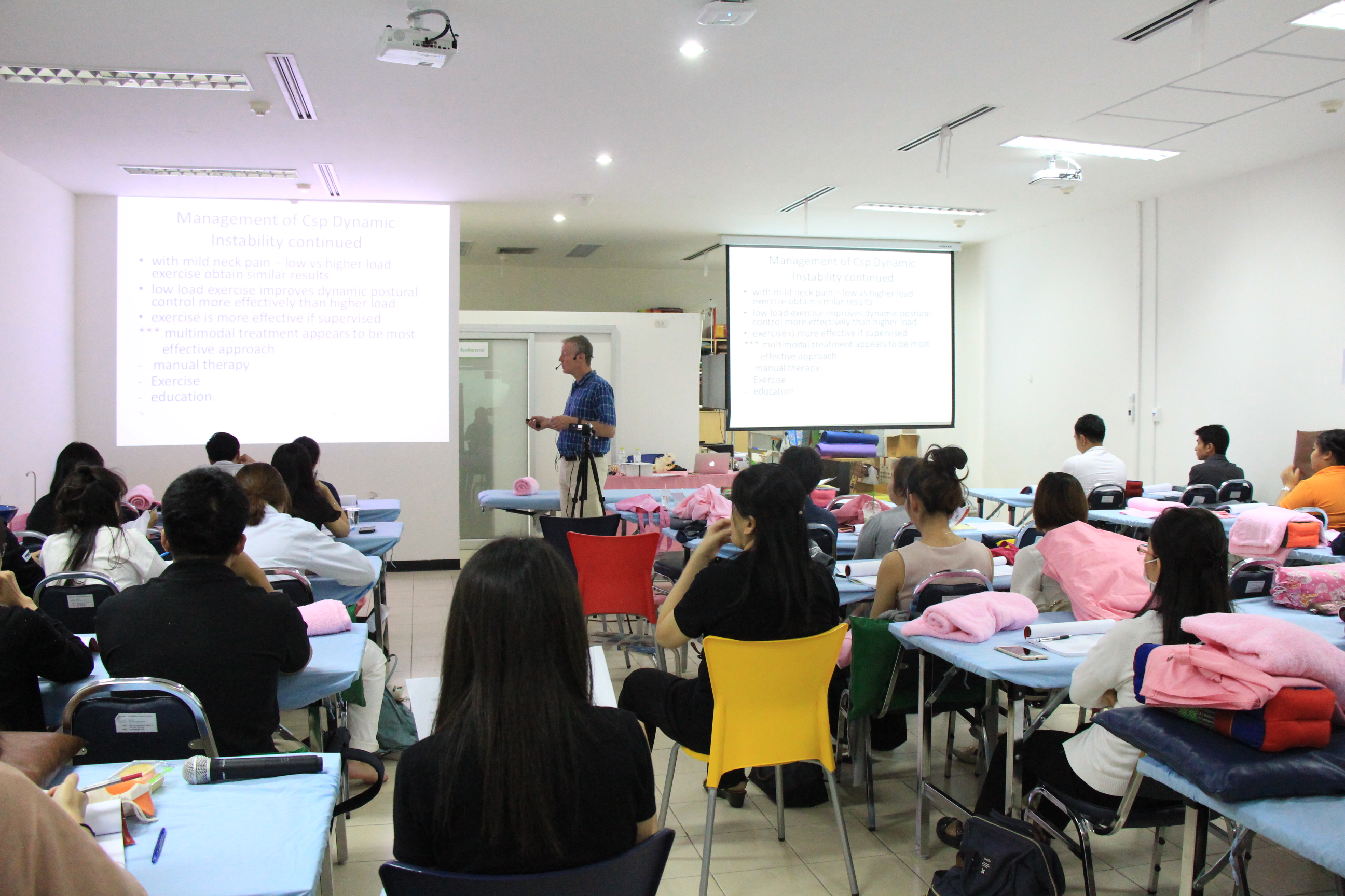 คณะกายภาพบำบัด มศว จัดโครงการอบรมเชิงปฏิบัติการเรื่อง Cervical spine: Exercise and Manual Therapy ให้กับนักกายภาพบำบัดจากหน่วยงานต่าง ๆ เมื่อวันที่ 15-16 มิถุนายน 2560 วิทยากรโดย Bernard Tonks B.Sc.(PT), FCAMT ณ คลินิกกายภาพบำบัด มศว ประสานมิตร ชั้น 6 อาคารบริการ : ศาสตราจารย์ ม.ล.ปิ่น มาลากุล มหาวิทยาลัยศรีนครินทรวิโรฒ กรุงเทพมหานคร