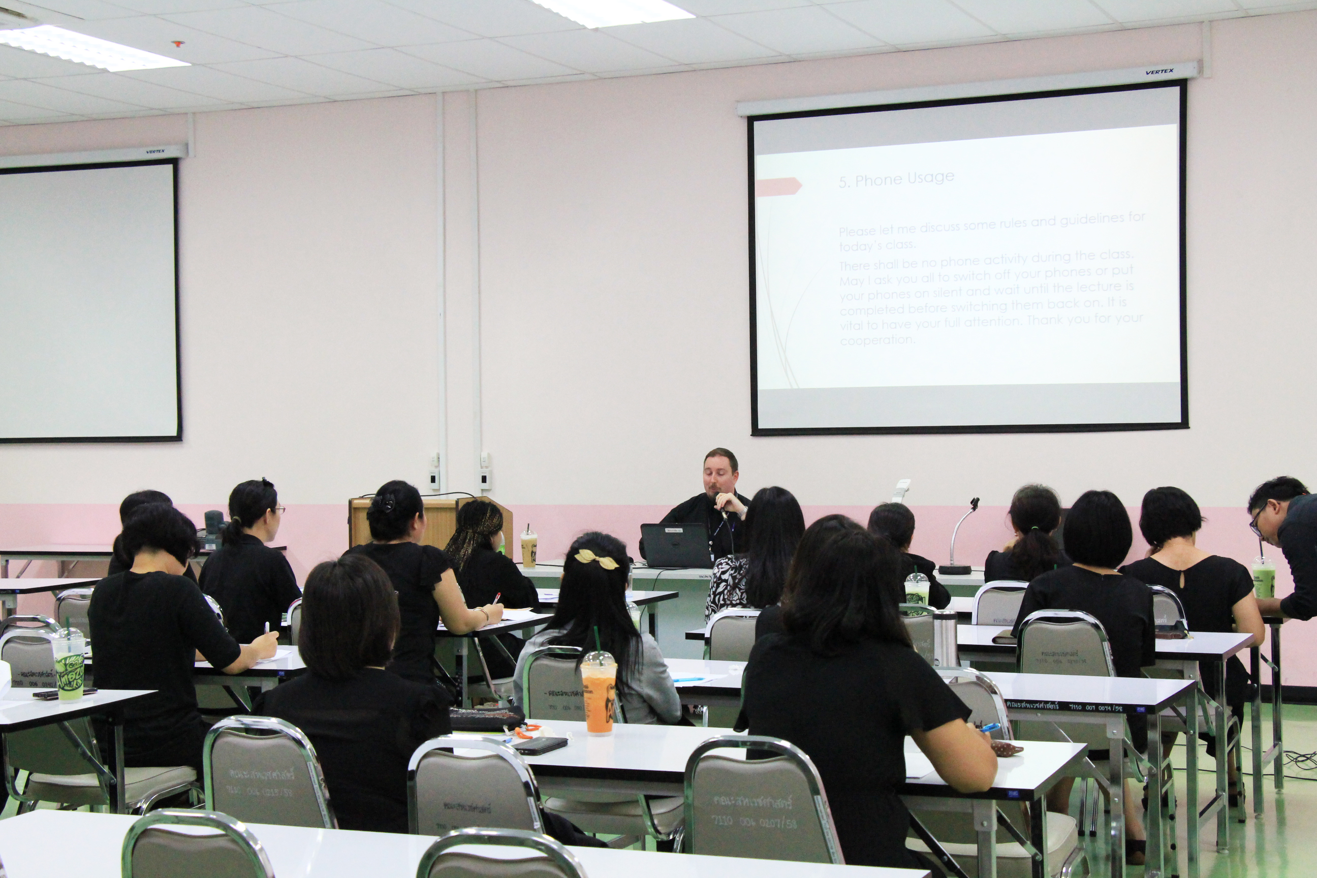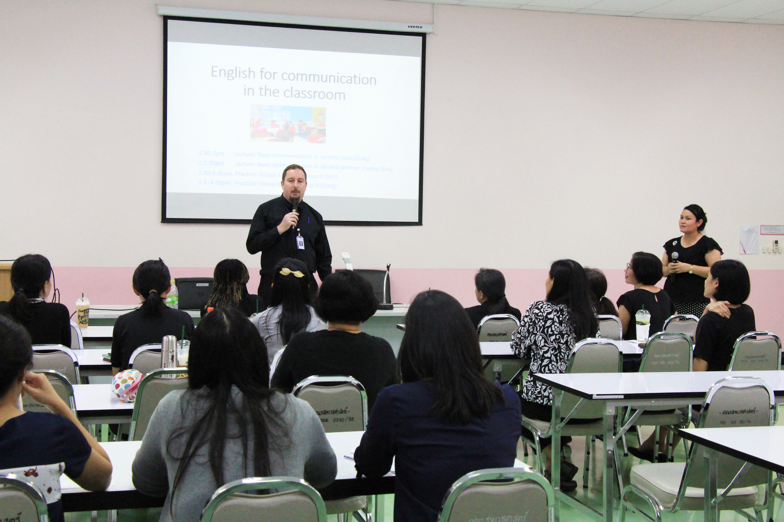 บรรยาย การปฏิบัติ และสัมมนา ทำให้อาจารย์มีทักษะด้านการสื่อสารอยู่ในระดับมาตรฐาน อีกทั้งการสอนเป็นภาษาอังกฤษยังจะเป็นการพัฒนานิสิตให้เป็นผู้ที่มีทักษะการสื่อสารภาษาอังกฤษให้ดีขึ้น ซึ่งเป็นหนึ่งในคุณสมบัติความเป็นนิสิตที่พึงประสงค์ในศตวรรษที่ 21 โดยมี Mr.Craig James Morrison และ Ms.Sharnmin Shompa Mollick เป็นวิทยากร