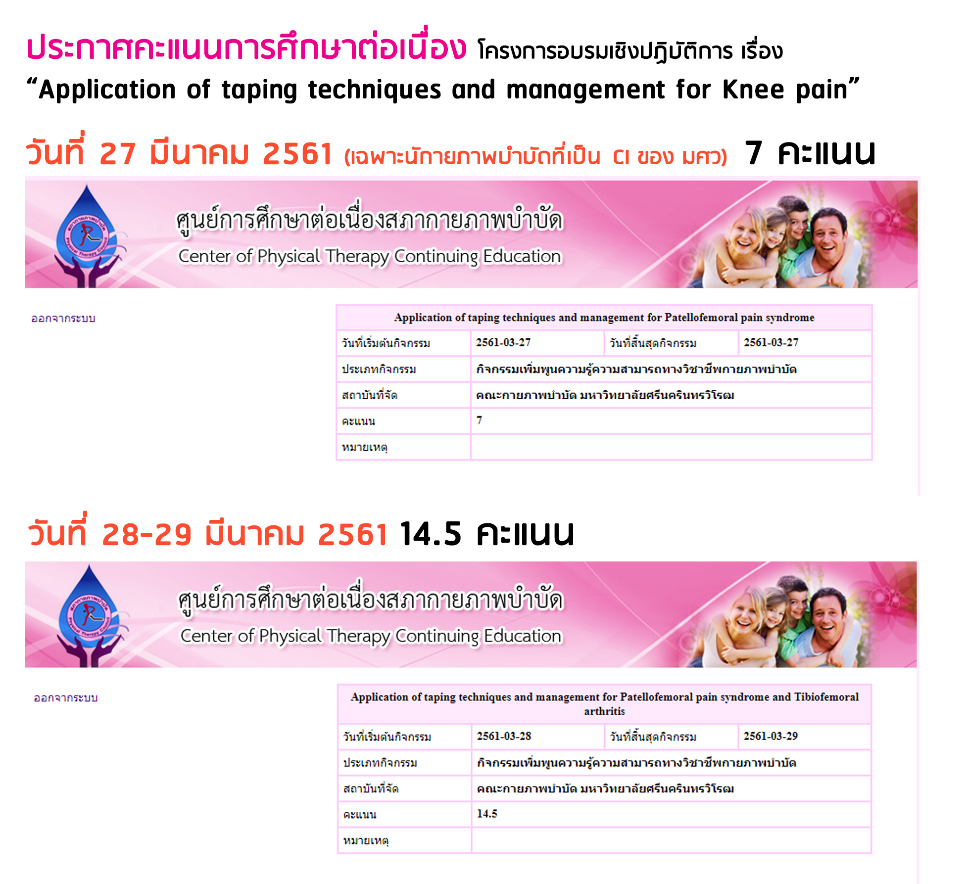 คณะกายภาพบำบัด มศว กำหนดจัดโครงการอบรมเชิงปฏิบัติการ เรื่อง “Application of taping techniques and management for Knee pain”