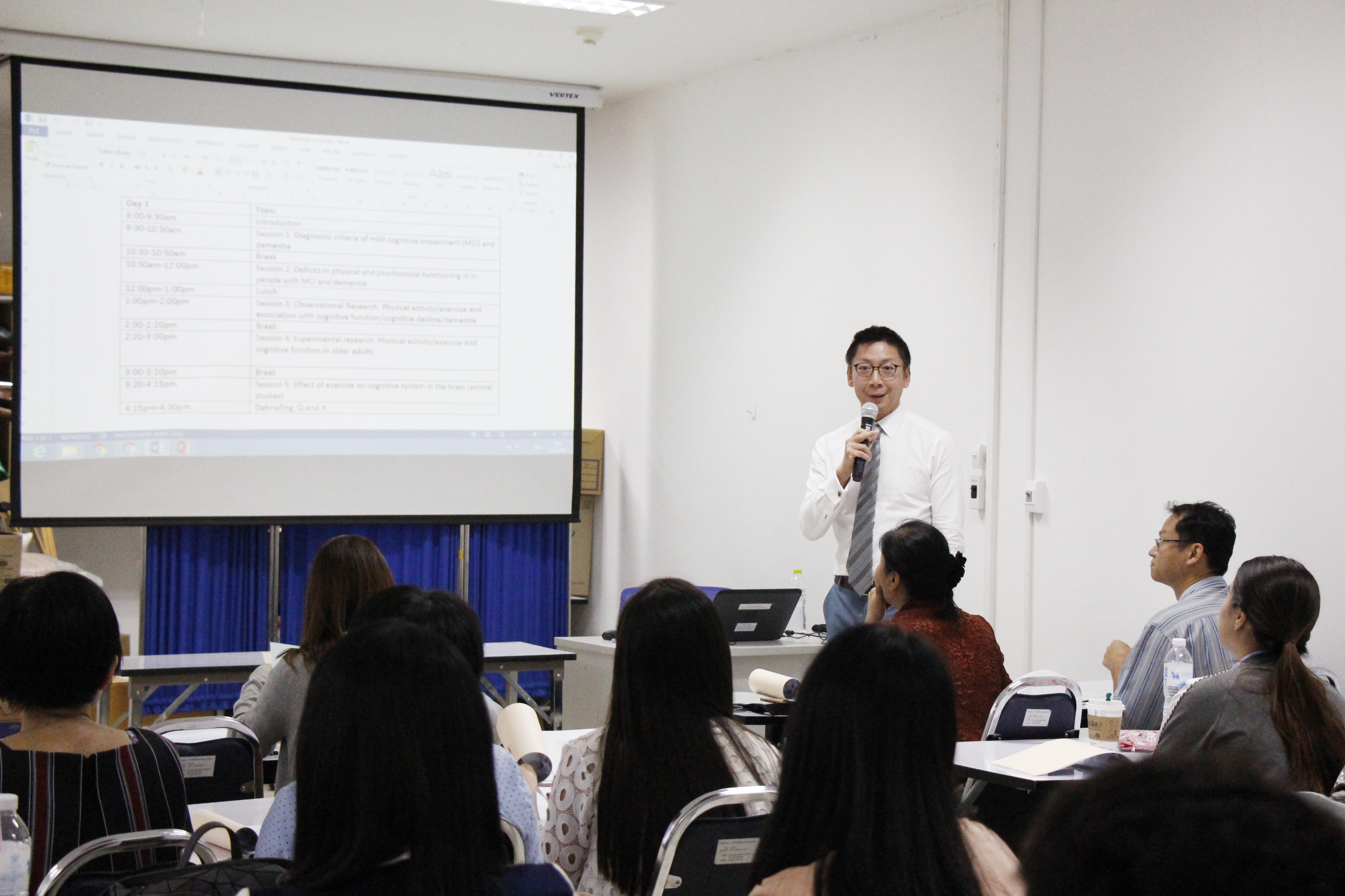 คณะกายภาพบำบัด มศว จัดโครงการอบรมเรื่อง "Diagnosis and exercise intervention for people with mild cognitive impairment (MCI) and dementia" เมื่อวันที่ 14 - 15 มิถุนายน 2561 วิทยากรโดย Prof. Marco Pang
