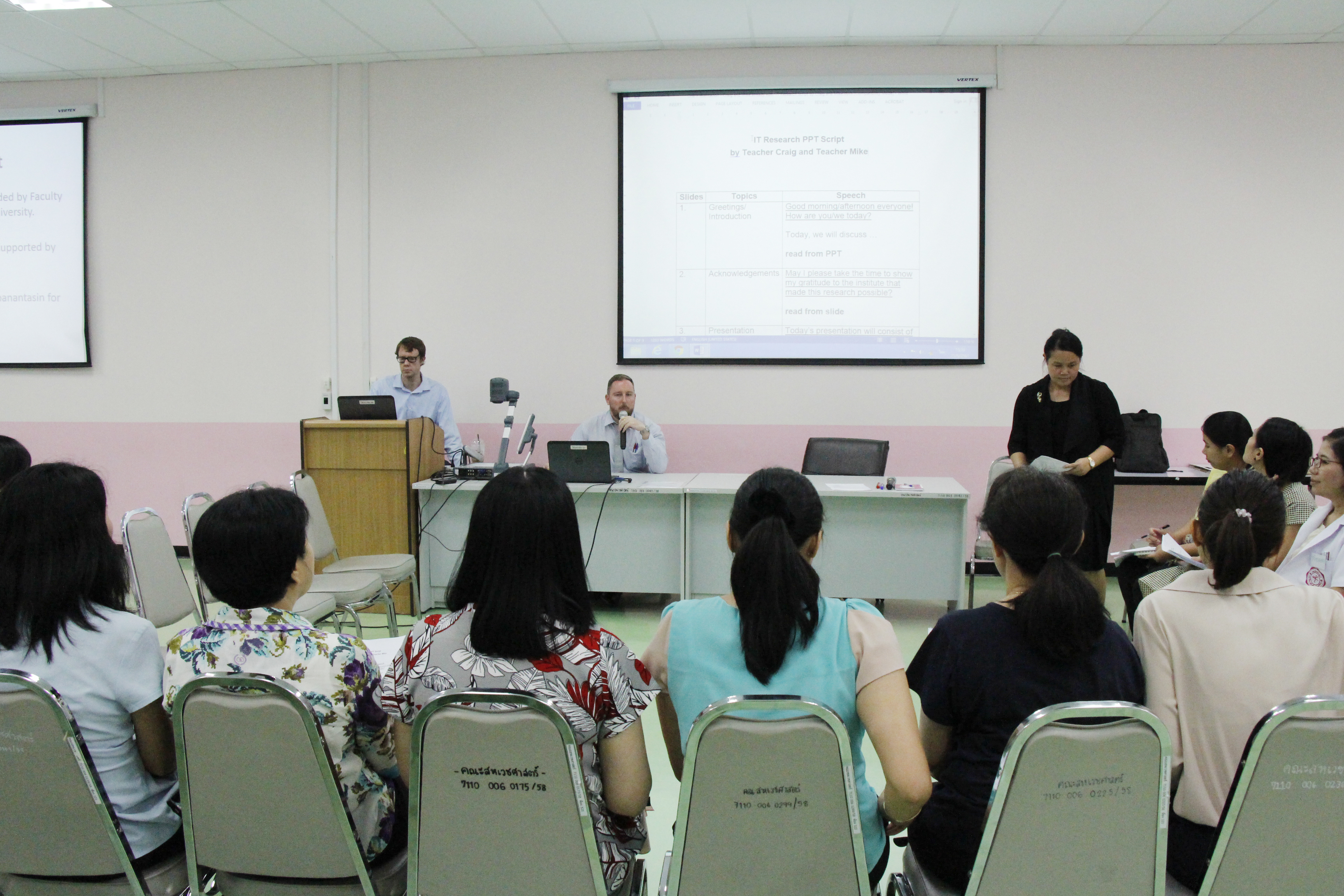 เมื่อวันที่ 25 มิถุนายน 2561 คณะกายภาพบำบัด มศว จัดโครงการอบรมพัฒนาอาจารย์ด้านทักษะการสอนเป็นภาษาอังกฤษ และ โครงการเสริมทักษะการนำเสนอ Oral presentation และ Public speaking เพื่อให้อาจารย์ได้พัฒนาทักษะการสอนด้วยการพูดภาษาอังกฤษในห้องเรียนชั่วโมงปฏิบัติการ และเพื่อพัฒนาอาจารย์ให้มีทักษะการใช้ภาษาอังกฤษ ทั้งในด้านการนำเสนอผลงานวิจัยในงานประชุมวิชาการระดับนานาชาติ และการพูดสาธารณะ โดยมี Mr. Craig James Morrison และ Mr. Michael Welch สังกัด สถาบันวิจัย พัฒนา และสาธิตการศึกษา (โรงเรียนสาธิตมหาวิทยาลัยศรีนครินทรวิโรฒ องครักษ์) เป็นวิทยากร