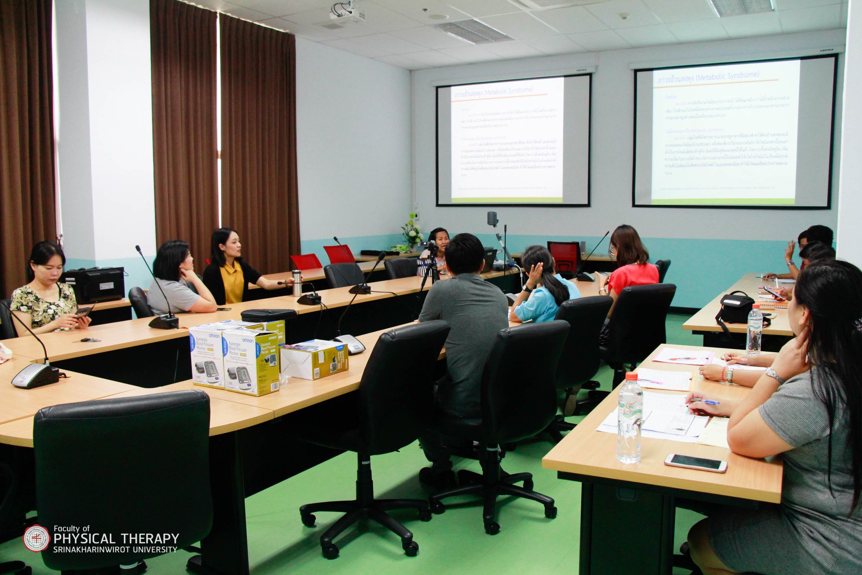 คณะกายภาพบำบัด จัดโครงการพัฒนารูปแบบการอบรมเชิงปฏิบัติการสำหรับบุคคลทั่วไปที่สนใจสุขภาพ หัวข้อ “คุมน้ำหนัก สนุก สุขภาพดี ง่ายนิดเดียว” (โครงการนำร่องบุคลากร) เมื่อวันที่ 31 ก.ค.2561 มีการบรรยายหัวข้อ หลักโภชนาการสำหรับลดน้ำหนักหรือควบคุมน้ำหนักให้อยู่ วิทยากรโดย อ.ยุพารัตน์ ม่วงเขาแดง และวันที่ 6 ส.ค.– 8 ต.ค. 2561 ปฏิบัติการออกกำลังกาย วันละ 30 - 60 นาที 3 วันต่อสัปดาห์ ในเวลา 16.30-17.30 น.วิทยากรโดย อ.สุวัฒน์ จิตรดำรง ณ ห้อง 308 คณะกายภาพบำบัด มศว