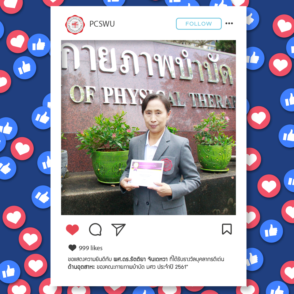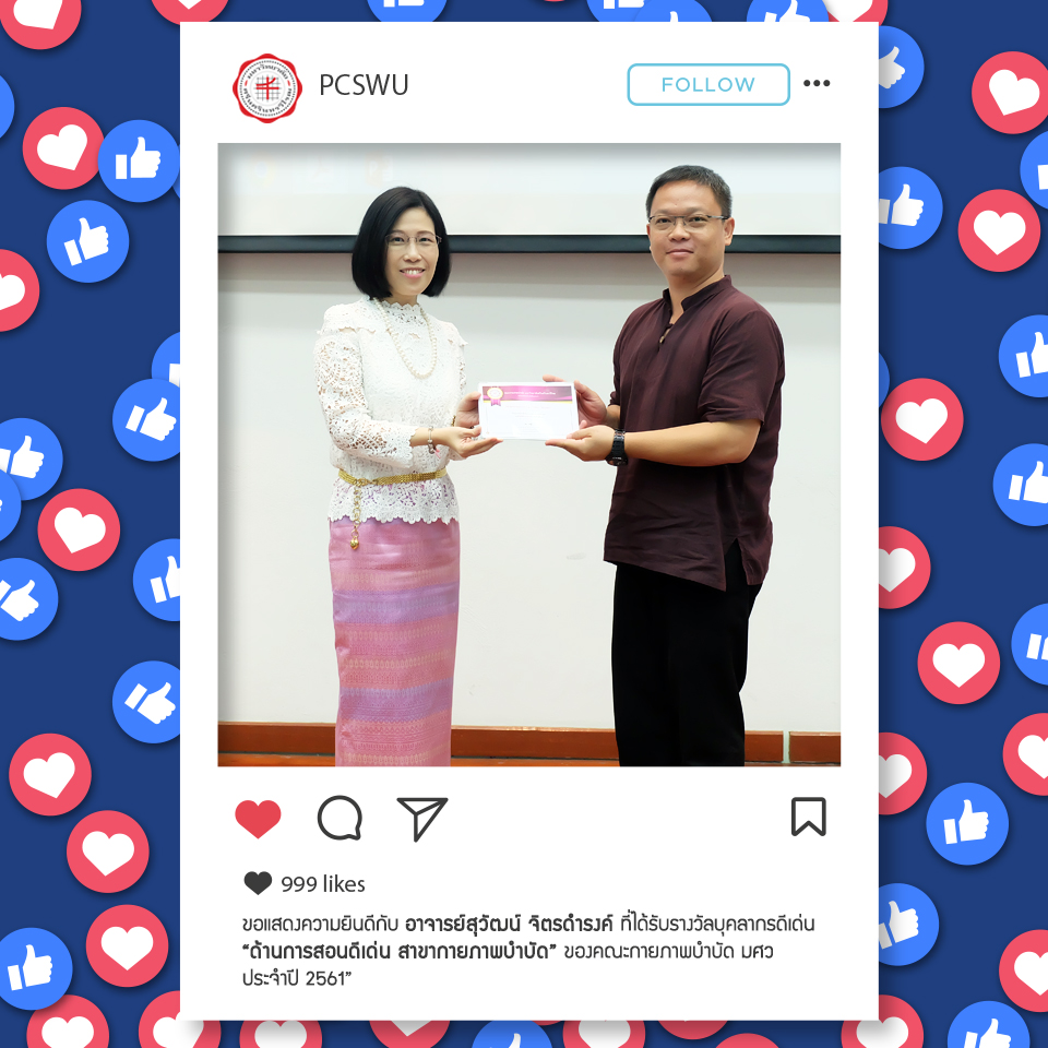 คณะกายภาพบำบัด มศว มอบรางวัลบุคลากรดีเด่นด้านการสอนดีเด่น ด้านอุตสาหะ และด้านบริการวิชาการดีเด่น ประจำปี 2561 ให้กับ
