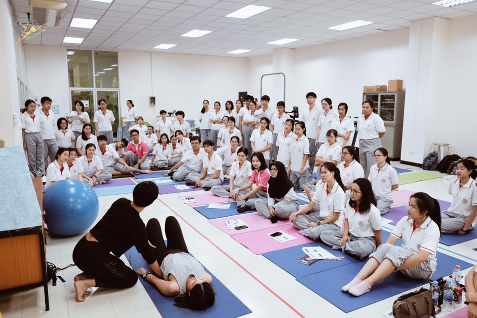 My class บรรยากาศการเรียนวิชาการออกกำลังกายเพื่อการรักษา "พิลาทีส" ของนิสิตกายภาพบำบัดปีที่ 4 โดยมีศิษย์เก่าสาขากายภาพบำบัด มศว พี่เกว สิรภัทร เรืองมณี PT SWU รุ่น 18 และพี่ลูกหว้า ภัทราพร เอี่ยมอุดม PT SWU 20 เป็นอาจารย์พิเศษในครั้งนี้