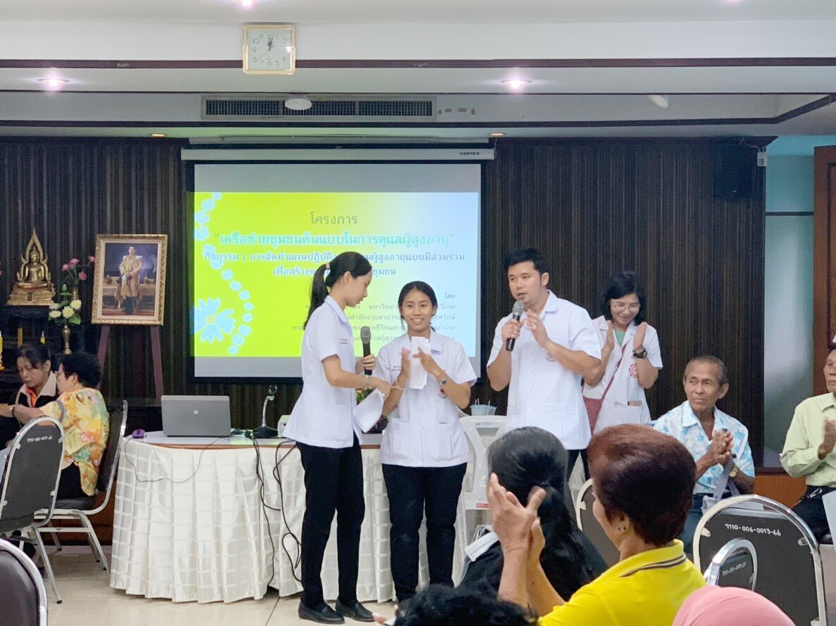คณะกายภาพบำบัด มศว จัดโครงการบริการวิชาการแก่ชุมชน กิจกรรมที่ 1 สร้างหลักสูตรเครือข่ายชุมชนต้นแบบในการดูแลผู้อายุ เมื่อวันที่ 28 พฤศจิกายน 2561 ณ ห้องประชุมที่ว่าการอำเภอองครักษ์ อ.องครักษ์ จ.นครนายก โดยมีการอภิปรายเกี่ยวกับการมีส่วนร่วมของชุมชนในการดูแลผู้สูงอายุ แนวทางการสร้างการมีส่วนร่วมของชุมชนและหน่วยงานภาครัฐในการขับเคลื่อนงานผู้สูงอายุ และทิศทางการดำเนินงานของชมรม/โรงเรียนผู้สูงอายุบนพื้นฐานของการบูรณาการทุกภาคส่วน