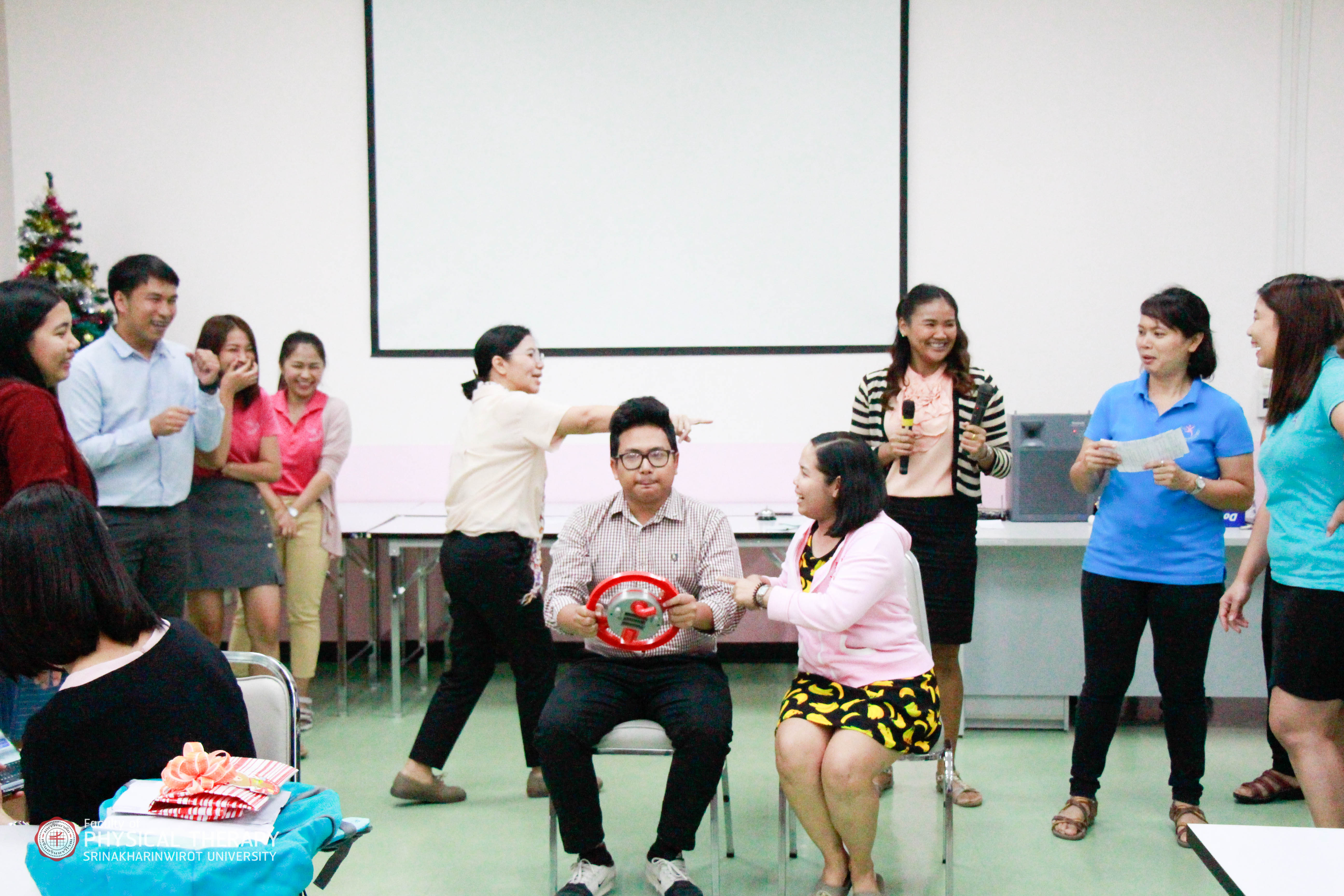 ผู้บริหาร คณาจารย์ และบุคลากรคณะกายภาพบำบัด มศว ร่วมจัดกิจกรรมสานสัมพันธ์ปีใหม่ 2562 โดยมีการรับประทานอาหารกลางวันพร้อมกัน กิจกรรมจับสลากของขวัญ และกิจกรรมเล่นเกมสานสัมพันธ์เสริมสร้างความสามัคคีและความสนุกสนานภายในองค์กร