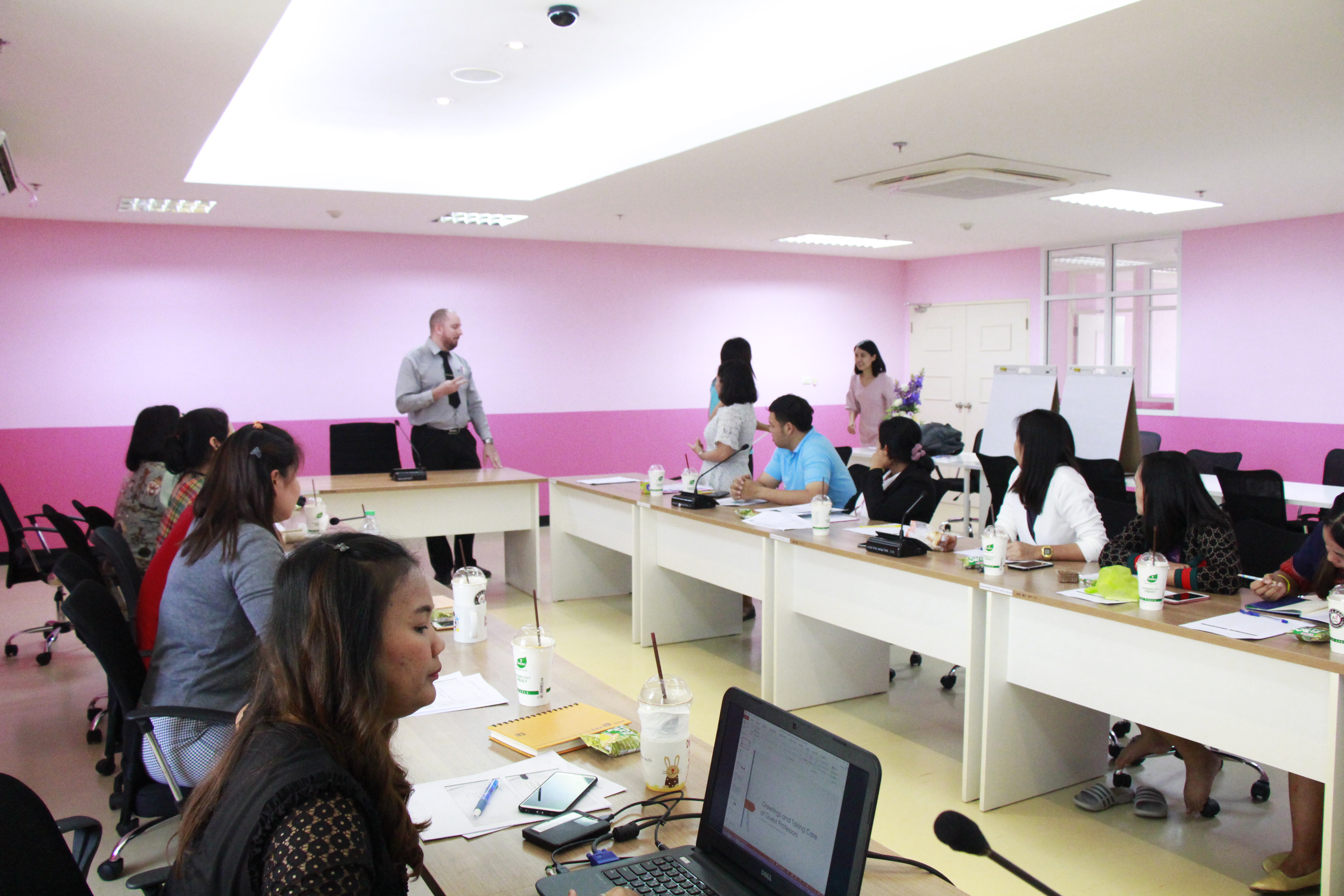 วันที่ 18 มกราคม 2562 คณะกายภาพบำบัดจัดโครงการพัฒนาทักษะการสื่อสารภาษาอังกฤษสำหรับบุคลากรสายปฏิบัติการ ในหัวข้อ การสนทนาภาษาอังกฤษเพื่อต้อนรับและรับรองชาวต่างชาติ โดยมี Mr.Craig James Morrison สังกัดสถาบันวิจัย พัฒนา และสาธิตการศึกษา (โรงเรียนสาธิตมหาวิทยาลัยศรีนครินทรวิโรฒ องครักษ์) เป็นวิทยากร