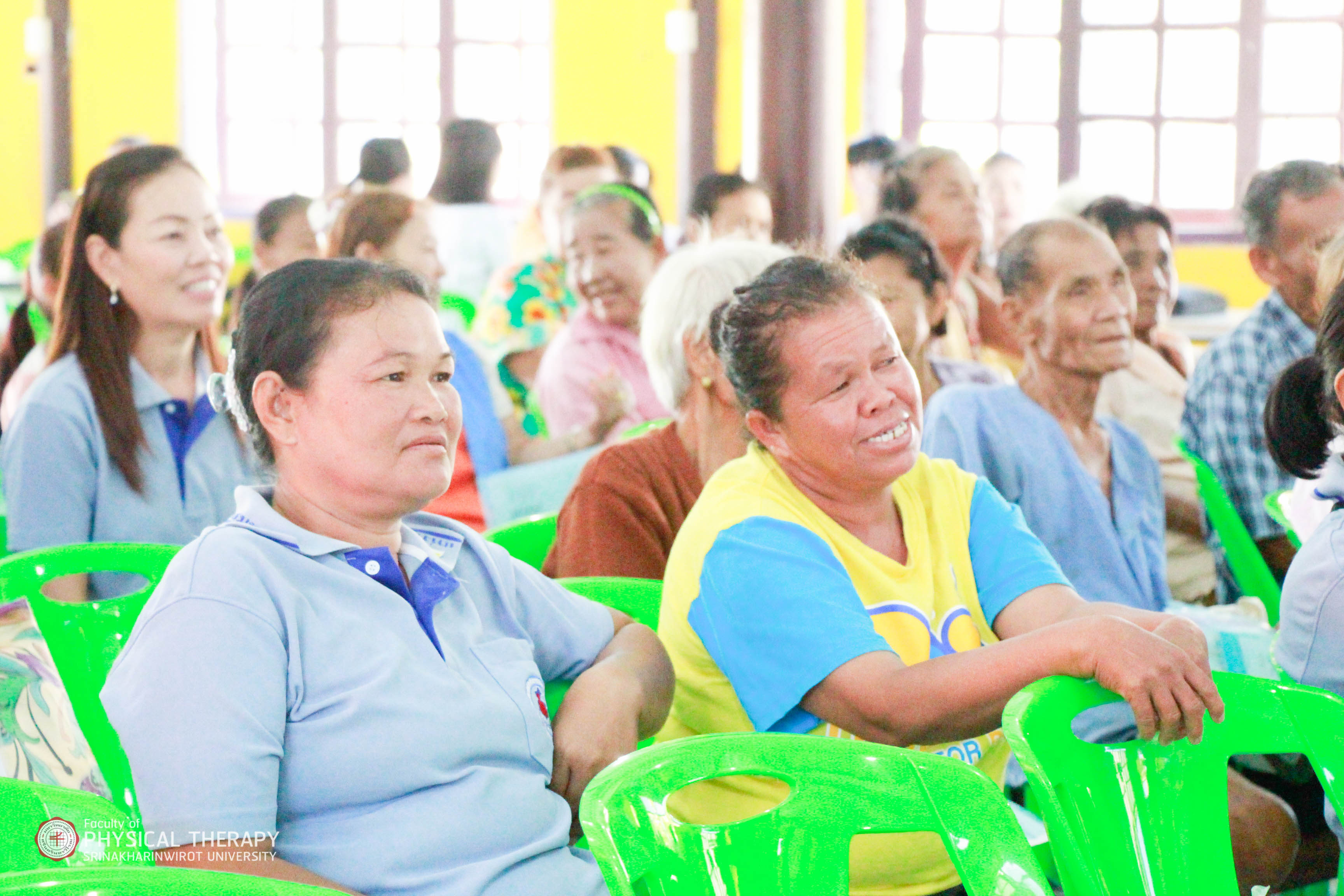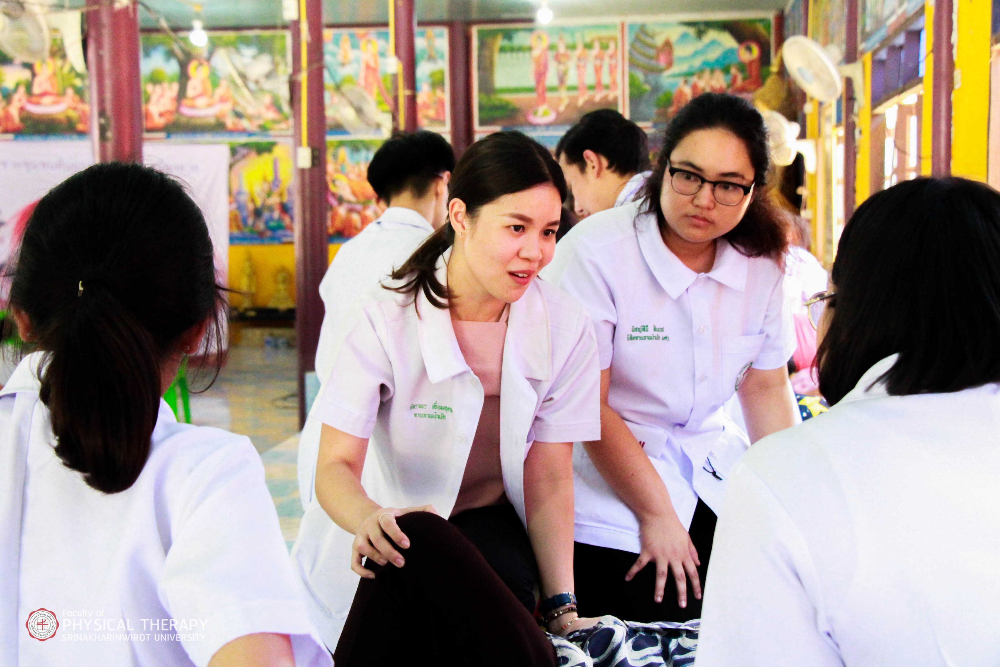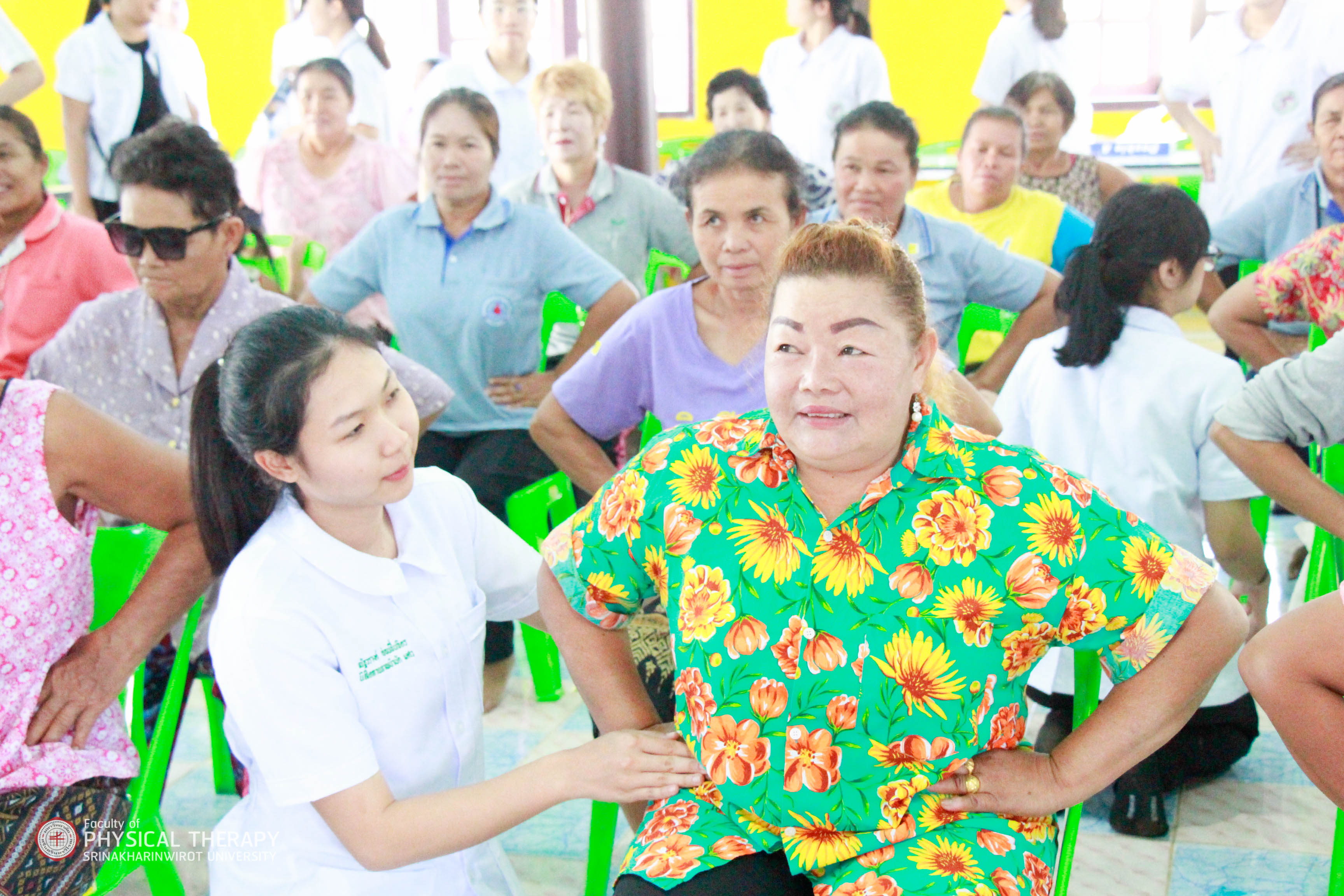 คณะกายภาพบำบัด มศว จัดโครงการบริการวิชาการแก่ชุมชน "โครงการเครือข่ายชุมชนต้นแบบในการดูแลผู้สูงอายุ" ณ วัดบ้านใหม่ไทยพัฒนา อ.วัฒนานคร จ.สระแก้ว เมื่อวันที่ 9 - 10 มีนาคม 2562 โดยมีวัตถุประสงค์เพื่อให้ความรู้ด้านการดูแลสุขภาพให้กับประชาชนในพื้นที่ ในเรื่องของการออกกำลังกาย ท่ายืดกล้ามเนื้อลดอาการการปวดเมื่อย สาธิตการทำยาหม่อง ให้บริการตรวจวัดความดันโลหิต ตรวจระดับน้ำตาลในเลือด และออกหน่วยให้บริการทางกายภาพบำบัดเพื่อตรวจรักษาเบื้องต้น ให้กับประชาชนที่มาเข้าร่วมโครงการในวันดังกล่าวด้วย