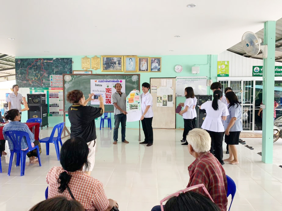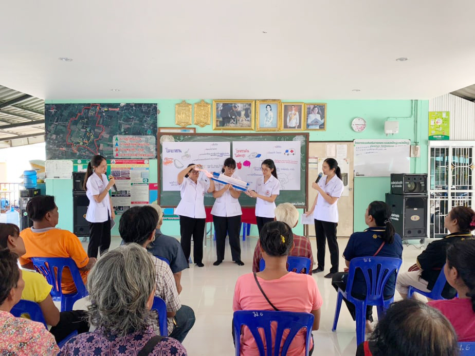 เมื่อวันที่ 18 เมษายน 2562 นิสิตชั้นปี 3 สาขาการส่งเสริมสุขภาพ คณะกายภาพบำบัด มศว ร่วมกับ โรงพยาบาลส่งเสริมสุขภาพตำบลหนองรี จัดโครงการ “กินอย่างไรให้ชาววังปลาไหลสุขภาพดี” เพื่อสร้างความตระหนักในการดูแลสุขภาพให้กับชาวบ้านหมู่ 6 ตำบลบ้านพร้าว อ.บ้านนา จ.นครนายก โดยเป็นกระบวนการจัดการเรียนรู้อย่างมีส่วนร่วมกับชุมชน เป็นกิจกรรมหนึ่งในการจัดการเรียนการสอนวิชา การพัฒนาสุขภาพชุมชนแบบองค์รวม"
