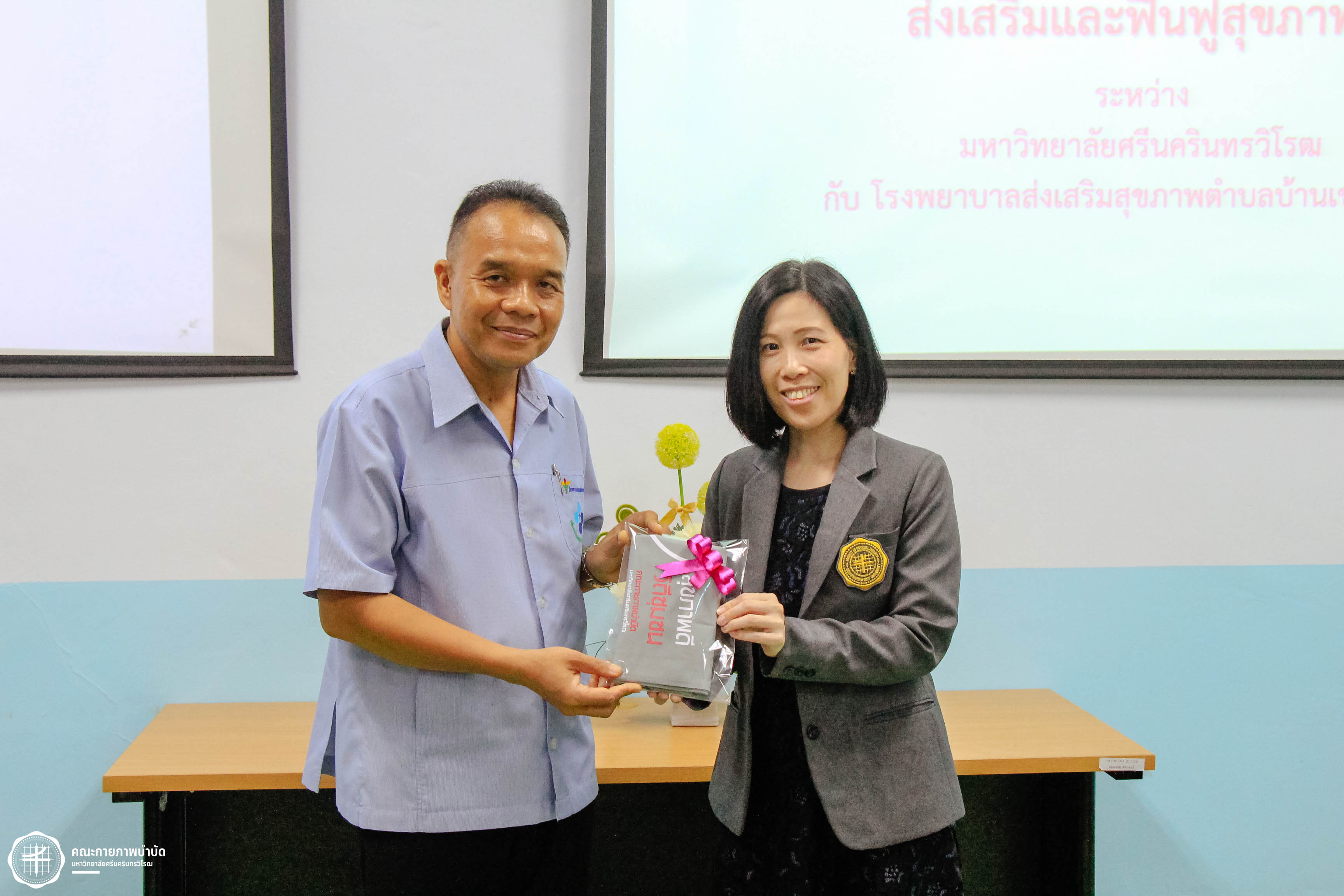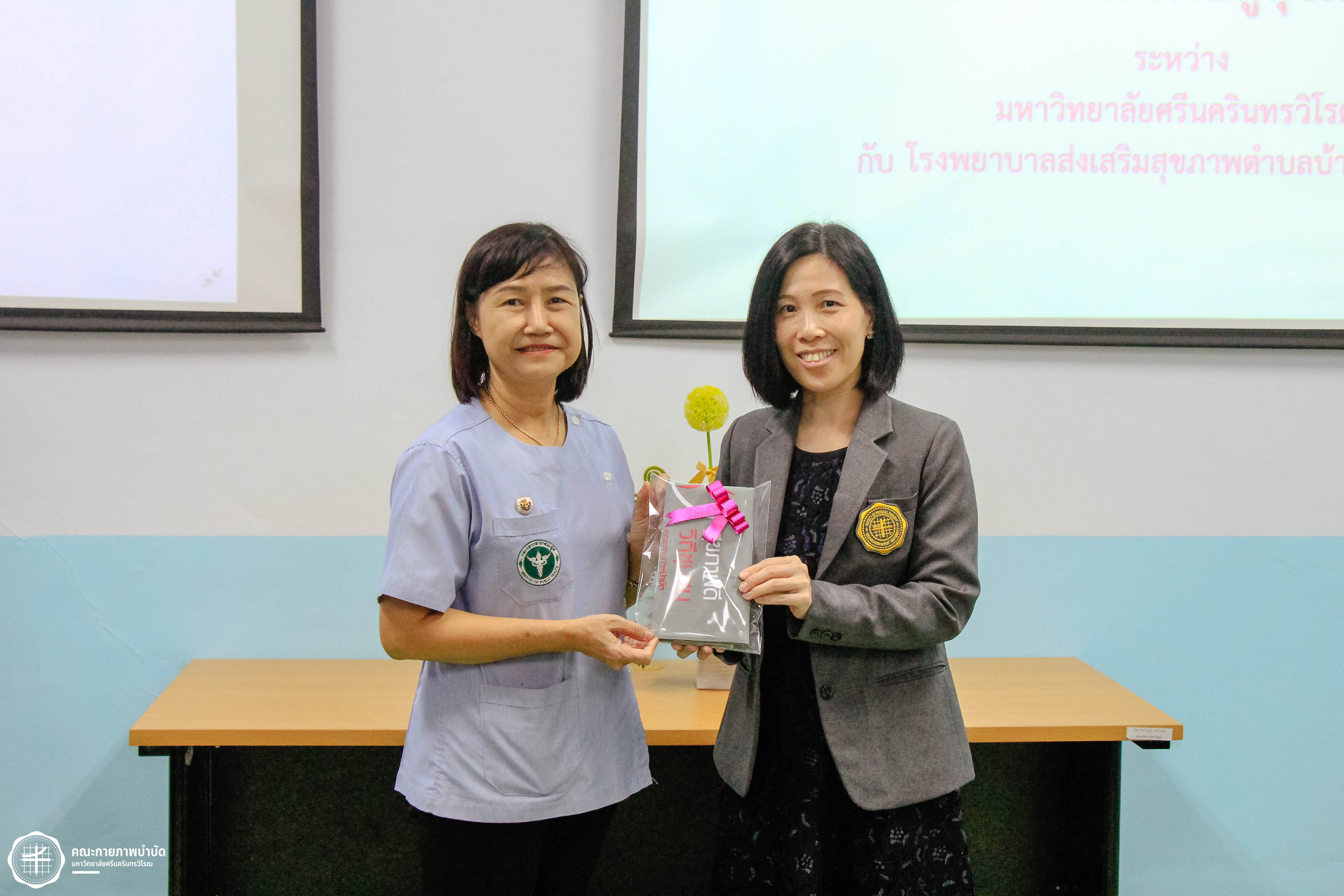เมื่อวันที่ 24 ตุลาคม 2562 คณะกายภาพบำบัด มศว ได้จัดทำบันทึกข้อตกลง (MOU) ว่าด้วยความร่วมมือทางวิชาการด้านการส่งเสริมและฟื้นฟูสุขภาพ กับโรงพยาบาลส่งเสริมสุขภาพตำบลบ้านเขมรฝั่งใต้ ณ ห้องประชุม 318 คณะกายภาพบำบัด มหาวิทยาลัยศรีนครินทรวิโรฒ