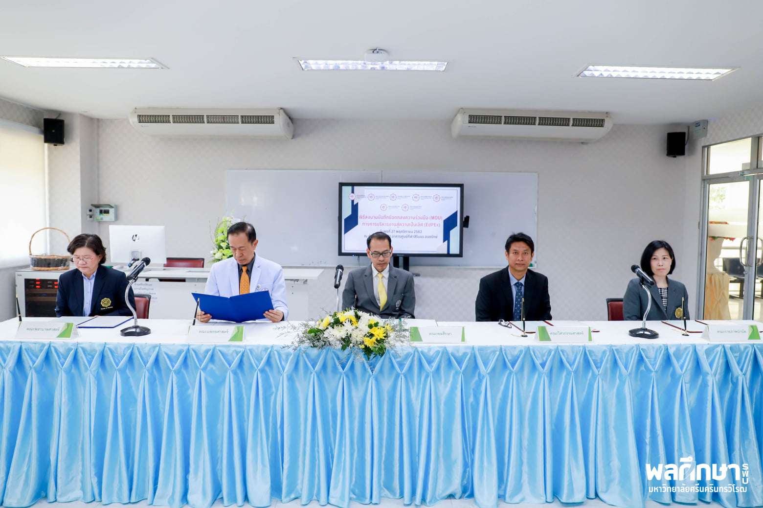 การลงนามบันทึกข้อตกลงความร่วมมือเครือข่ายพัฒนาคุณภาพการศึกษา ระหว่างคณะของมหาวิทยาลัยศรีนครินทรวิโรฒ ได้แก่ คณะพลศึกษา คณะแพทยศาสตร์ คณะพยาบาลศาสตร์ คณะวิศวกรรมศาสตร์ คณะกายภาพบำบัด เพื่อเป็นการแลกเปลี่ยนและเปรียบเทียบข้อมูลร่วมกัน ส่งเสริมการพัฒนา เพื่อนำไปสู่ความเป็นเลิศ เมื่อวันที่ 27 พฤศจิกายน 2562 ณ ห้องประชุม 301 อาคารศูนย์กีฬาสิรินธร องครักษ์