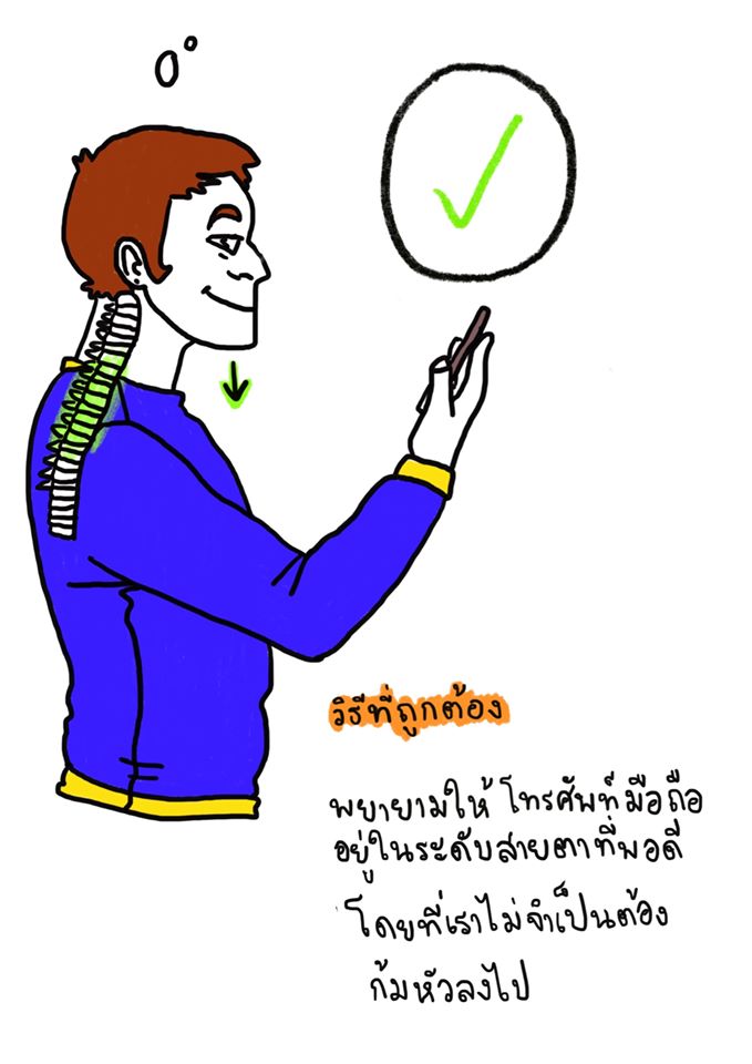 - . ใช้โทรศัพท์มือถือเท่าที่จำเป็น ไม่ควรโน้มหัวห่อไหล่มาข้างหน้า
