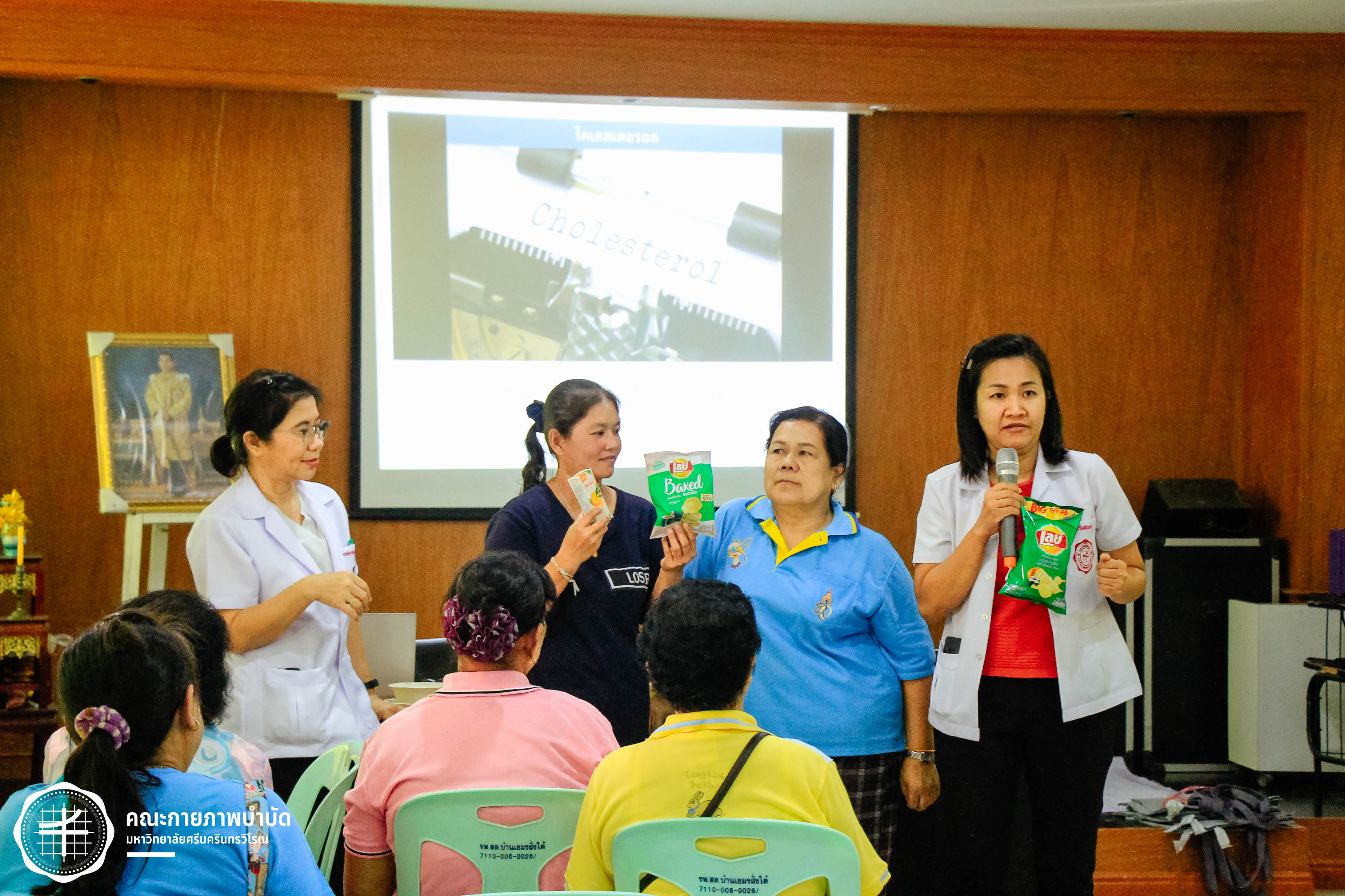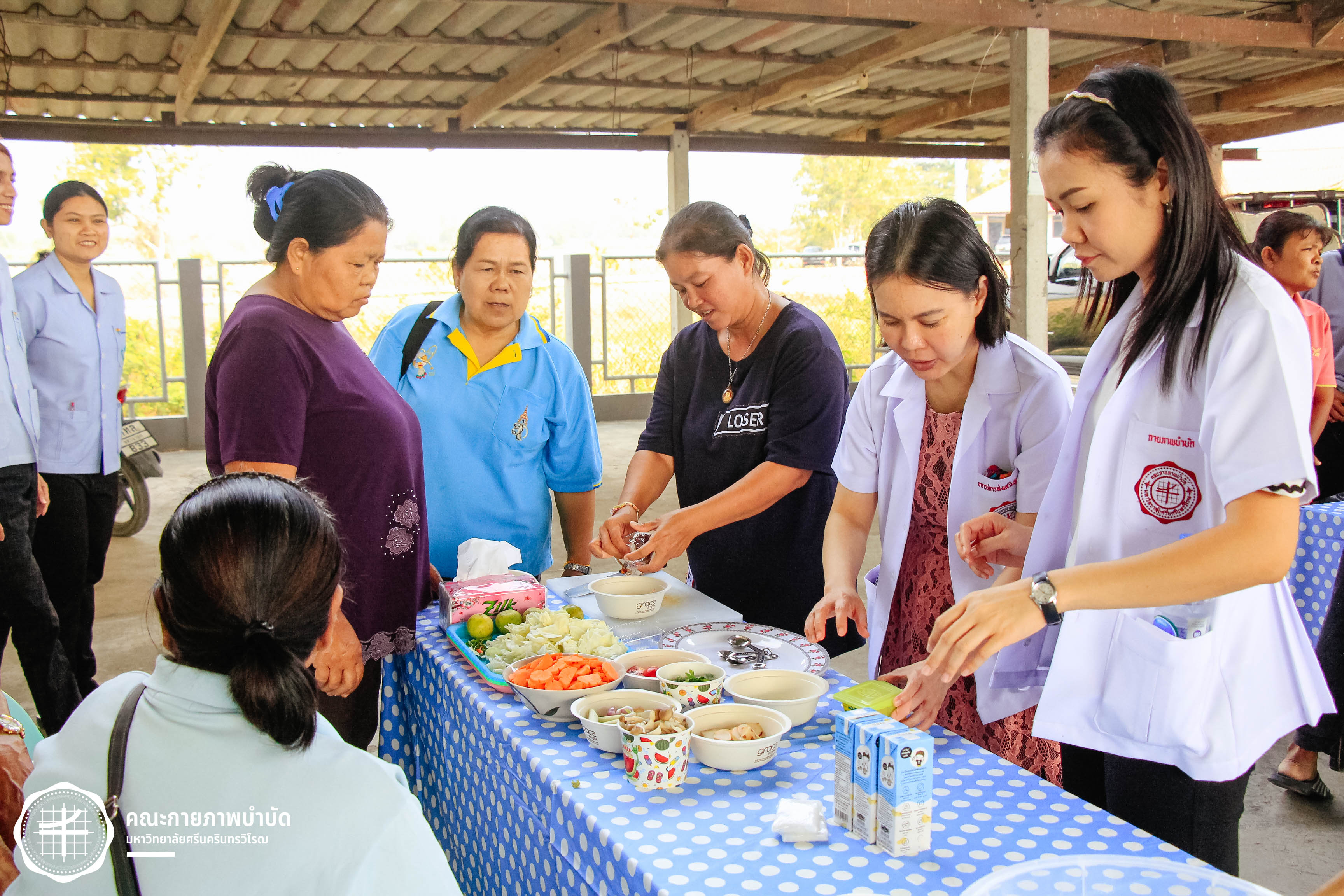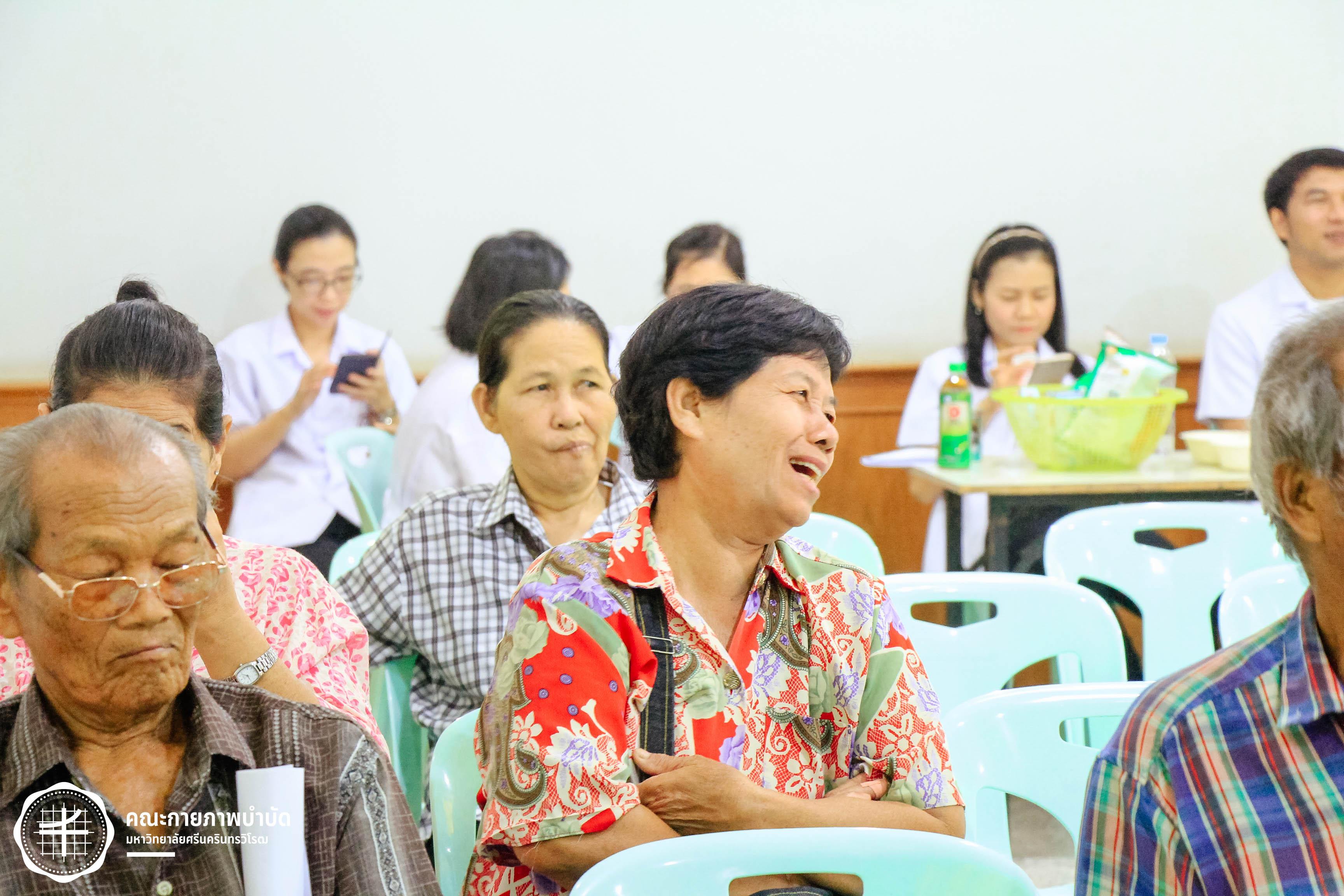 เมื่อวันที่ 14 มกราคม 2563 คณะกายภาพบำบัด มศว จัดโครงการบริการวิชาการ “เครือข่ายชุมชนต้นแบบในการดูแลผู้สูงอายุ” โดยมีกิจกรรม ตรวจระดับน้ำตาลในเลือด ช่างน้ำหนัก วัดความดัน วัดค่าดัชนีมวลกาย และการอบรมให้ความรู้เกี่ยวกับการอ่านฉลากโภชนาการ การเปรียบเทียบปริมาณน้ำตาลในอาหารและเครื่องดื่ม และกิจกรรมทำอาหารเพื่อสุขภาพ (ต้มข่าไก่ด้วยน้ำเต้าหู้โดยไม่ใช้กะทิ) ให้กับชมรมผู้สูงอายุในพื้นที่บ้านเขมรฝั่งใต้ ต.โพธิ์แทน อำเภอองครักษ์ จังหวัดนครนายก ทำให้ผู้สูงอายุที่เข้าร่วมโครงการได้รับความรู้กลับไปดูแลตนเอง และครอบครัวให้มีสุขภาพร่างกายที่แข็งแรงขึ้น