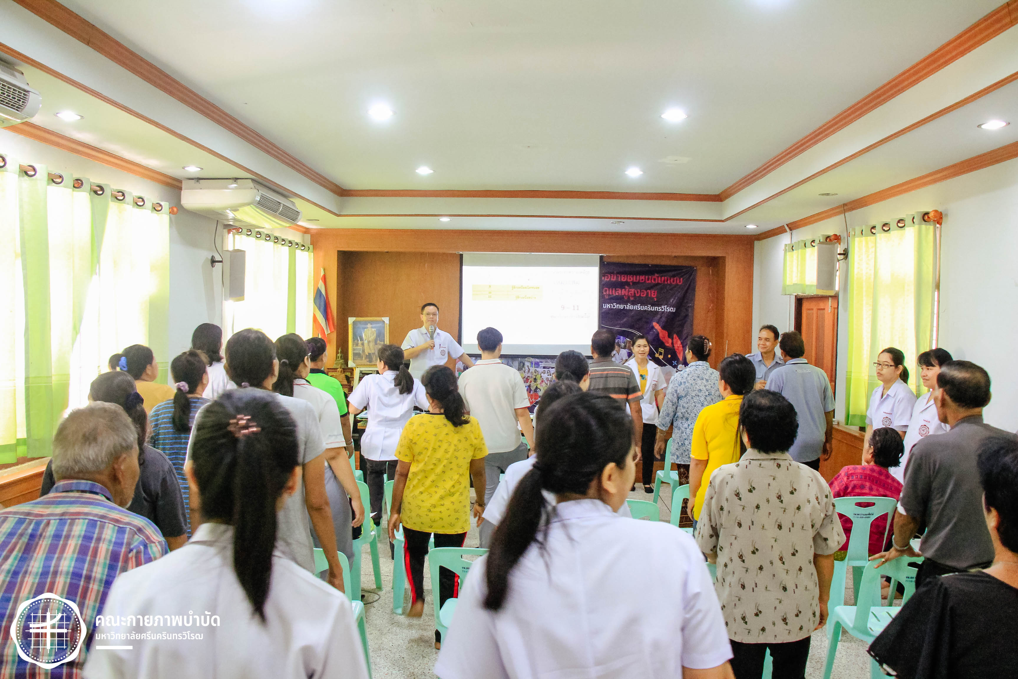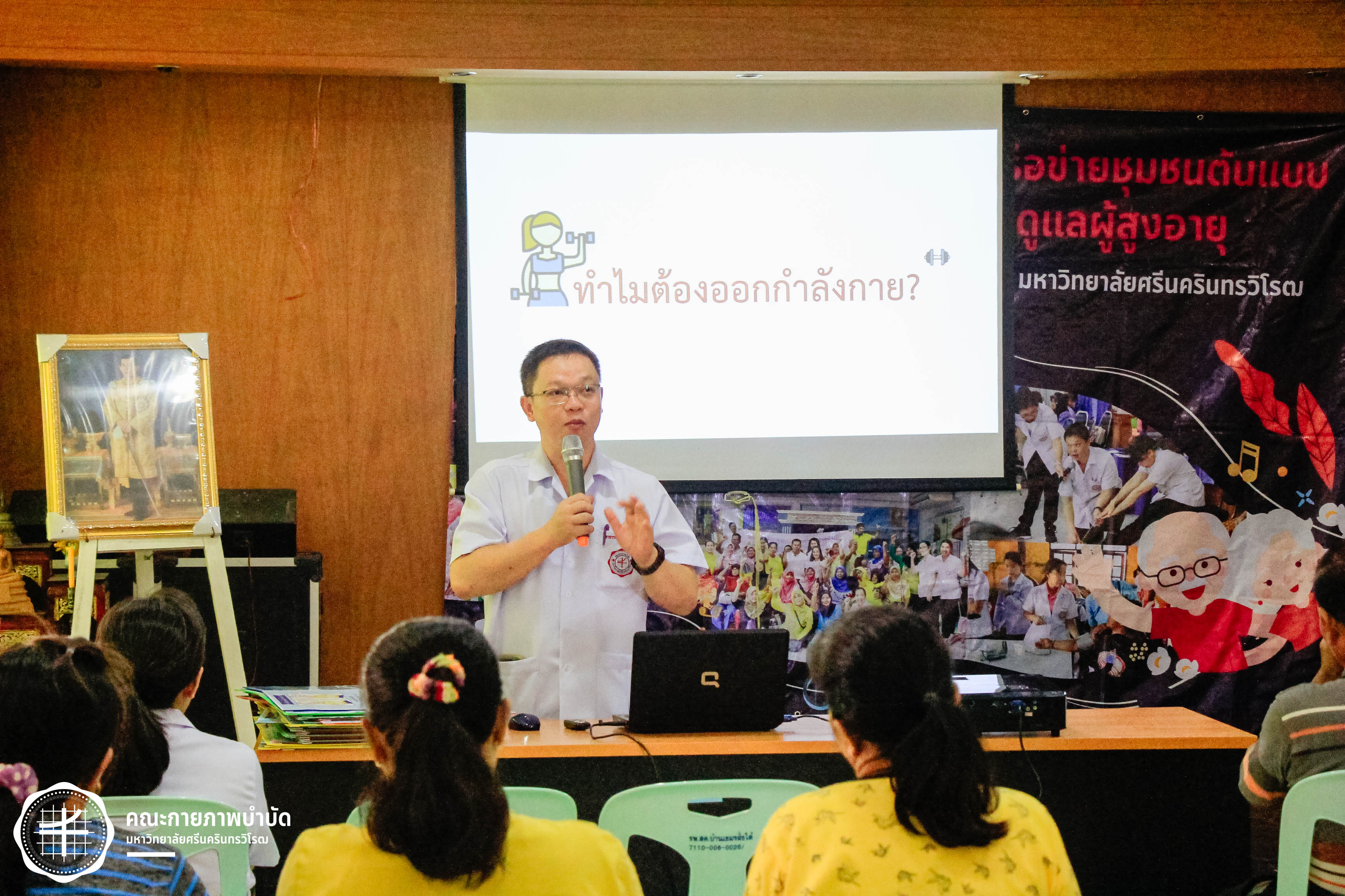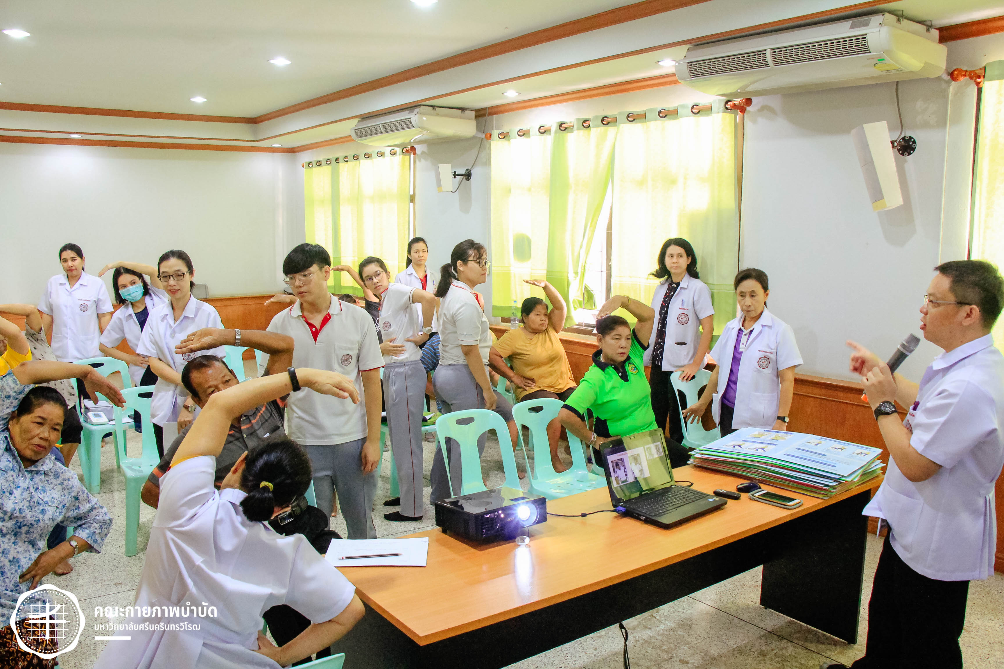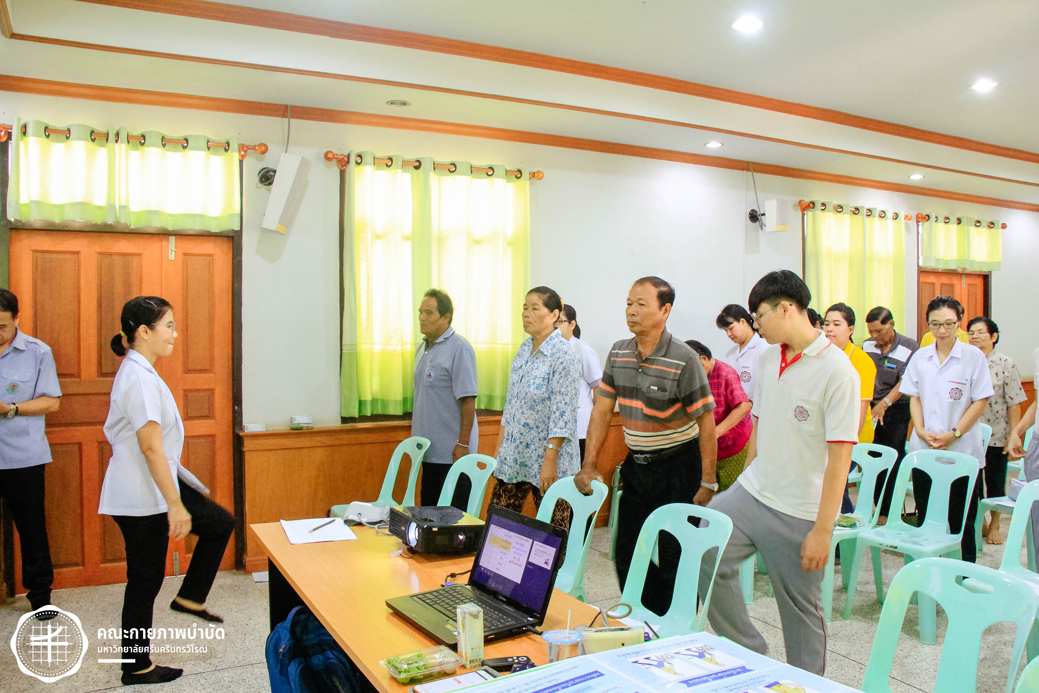 เมื่อวันที่ 22 มกราคม 2563 คณะกายภาพบำบัด มศว จัดโครงการบริการวิชาการ “เครือข่ายชุมชนต้นแบบในการดูแลผู้สูงอายุ” โดยมีกิจกรรม วัดความดัน และ ฝึกสอนท่าออกกำลังกาย เช่นการยืดกล้ามเนื้อขา การยืดกล้ามเนื้อข้างลำตัว การยืดกล้ามเนื้อน่องสำหรับผู้สูงอายุ ให้กับชมรมผู้สูงอายุในพื้นที่บ้านเขมรฝั่งใต้ ต.โพธิ์แทน อำเภอองครักษ์ จังหวัดนครนายก ทำให้ผู้สูงอายุที่เข้าร่วมโครงการได้รับความรู้กลับไปดูแลตนเอง และครอบครัวให้มีสุขภาพร่างกายที่แข็งแรงขึ้น