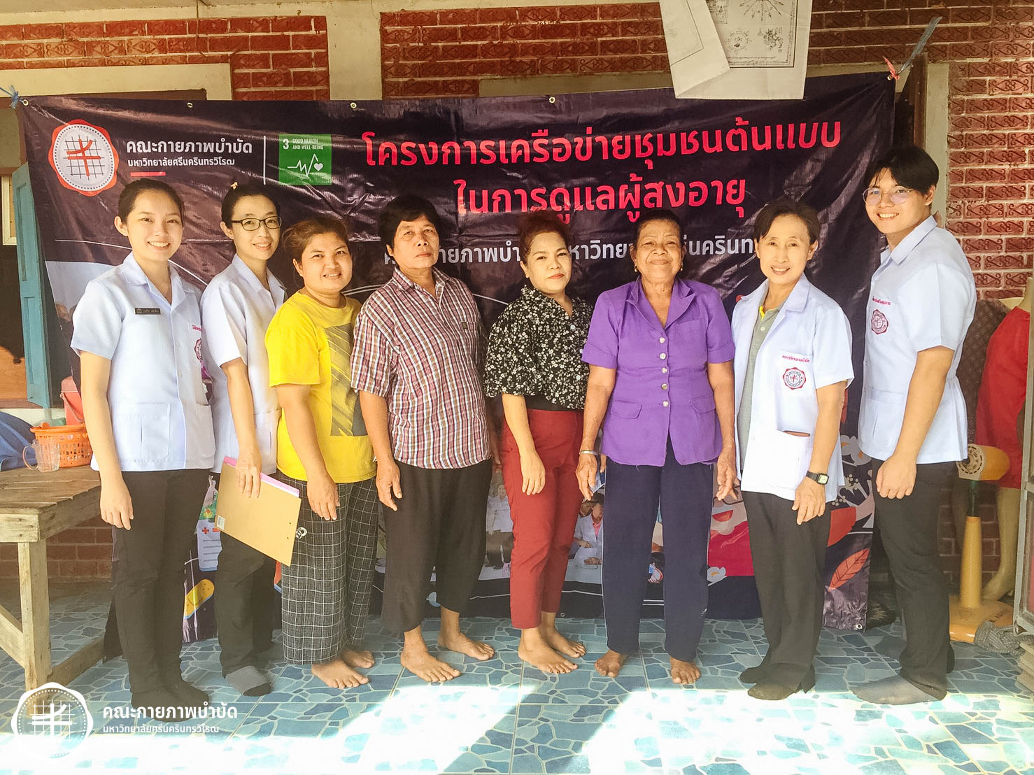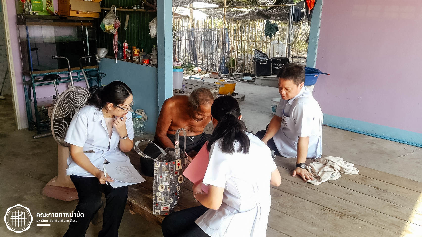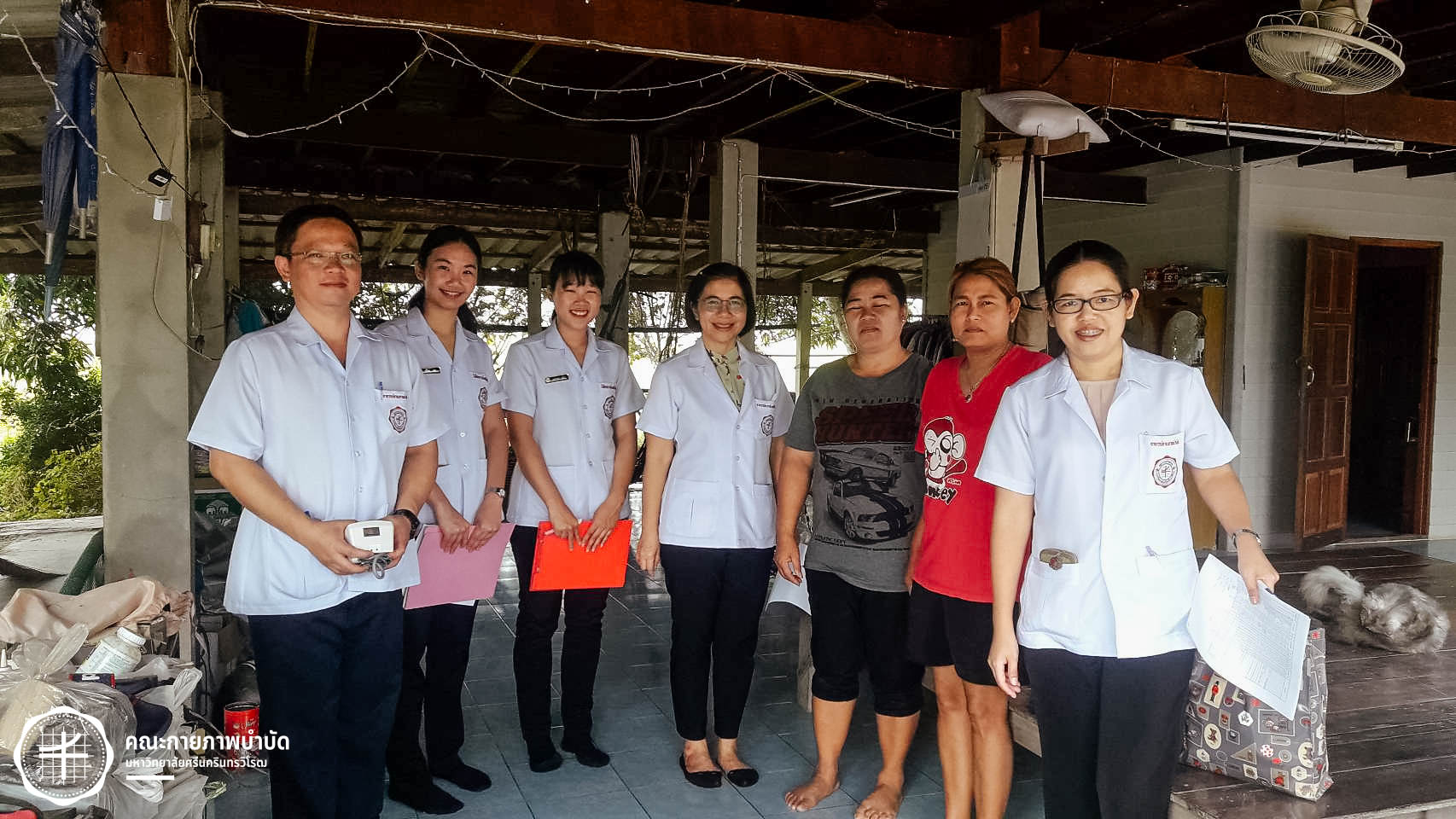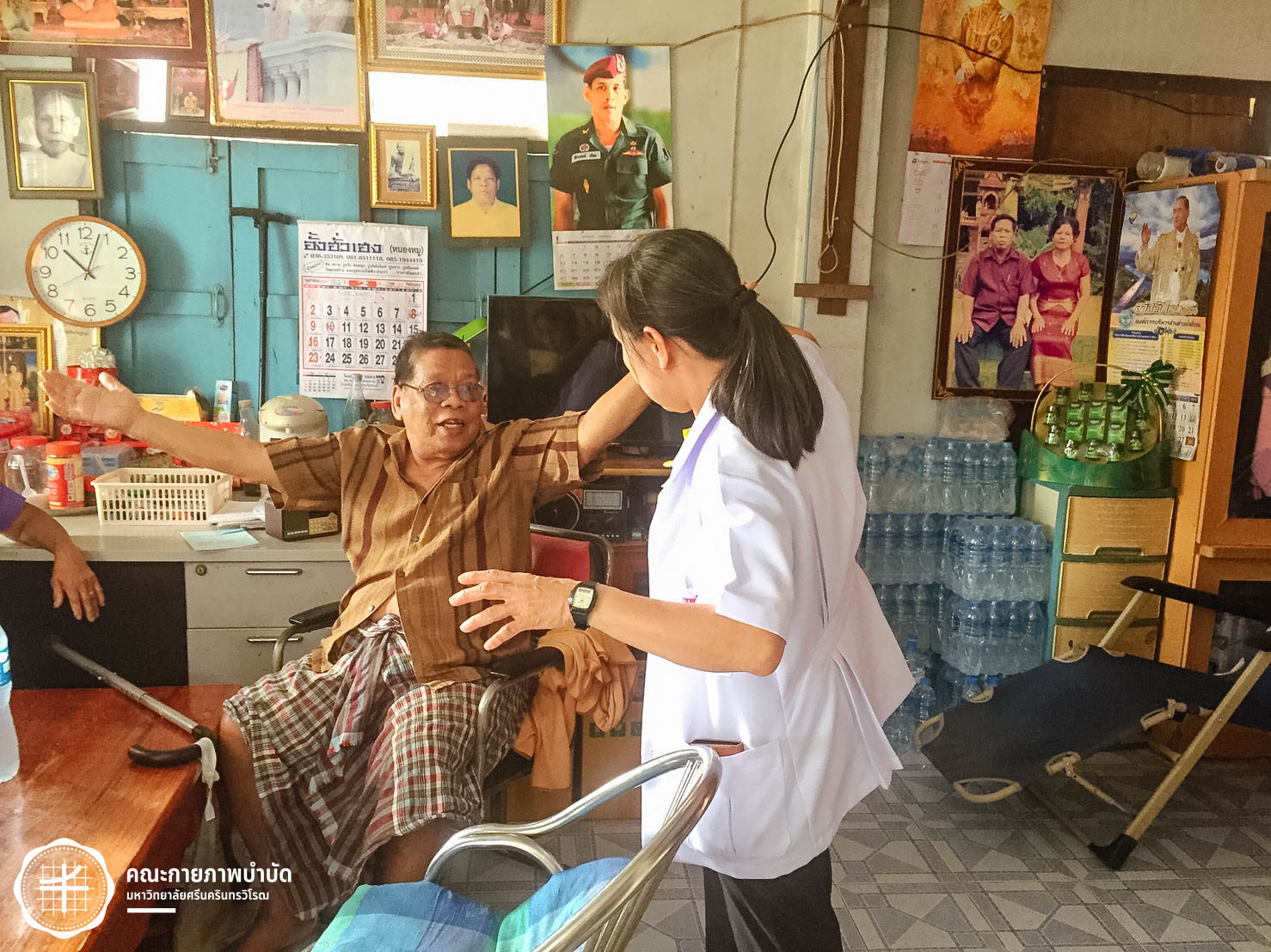 เมื่อวันที่ 12 กุมภาพันธ์ 2563 คณะกายภาพบำบัด มศว จัดโครงการบริการวิชาการ “เครือข่ายชุมชนต้นแบบในการดูแลผู้สูงอายุ” โดยมีกิจกรรม เยี่ยมบ้านและให้คำแนะนำเกี่ยวกับการดูแลสุขภาพผู้สูงอายุ ในพื้นที่บ้านเขมรฝั่งใต้ ต.โพธิ์แทน อำเภอองครักษ์ จังหวัดนครนายก ภาพ : อ.ดร.อ้อมใจ แต้เจริญวิริยะกุล