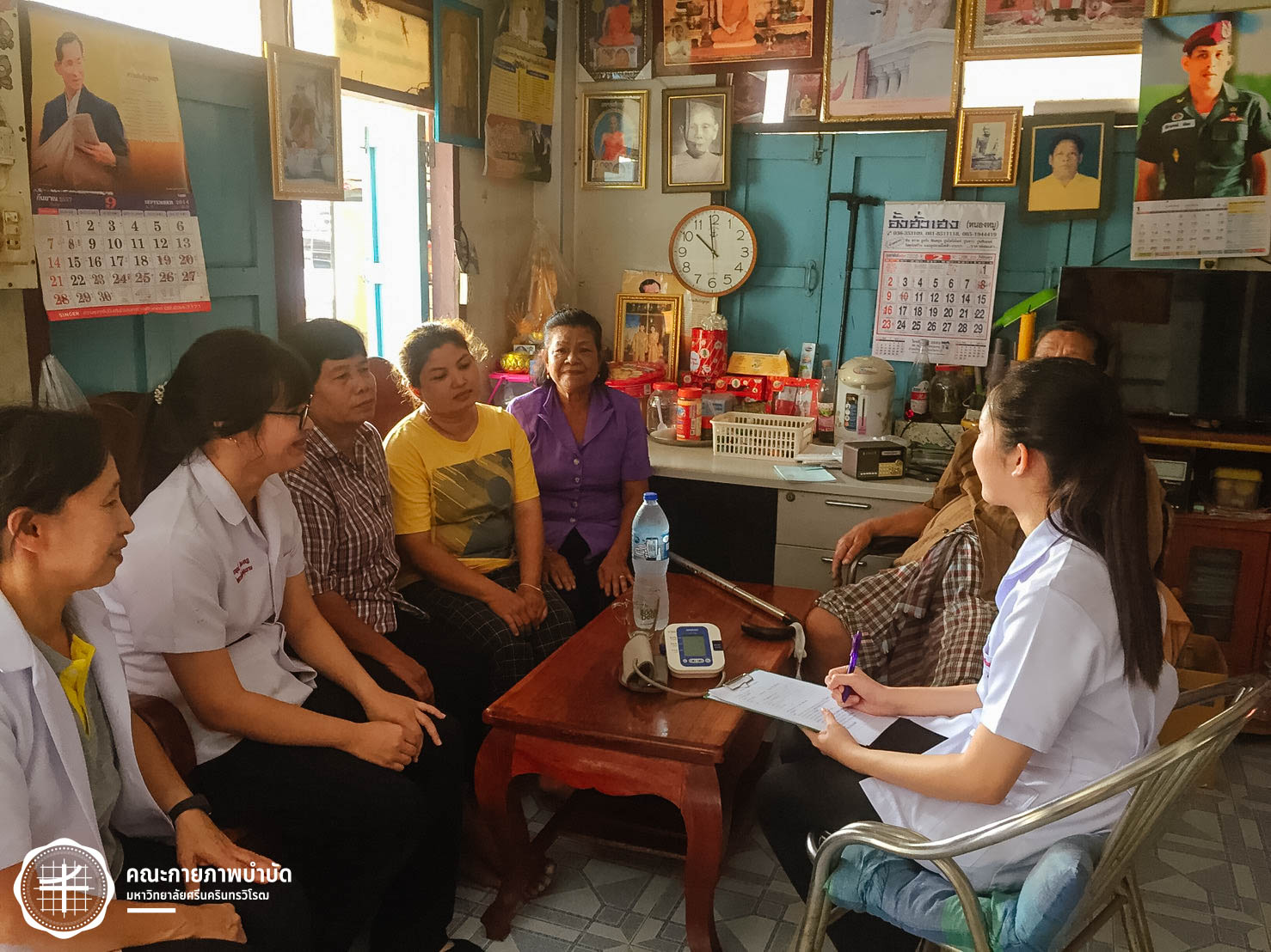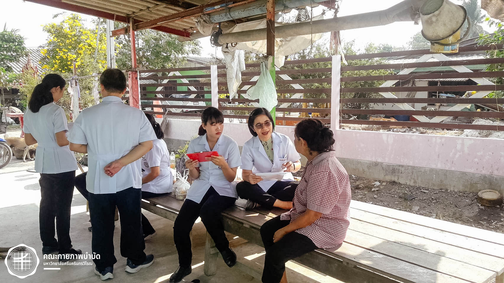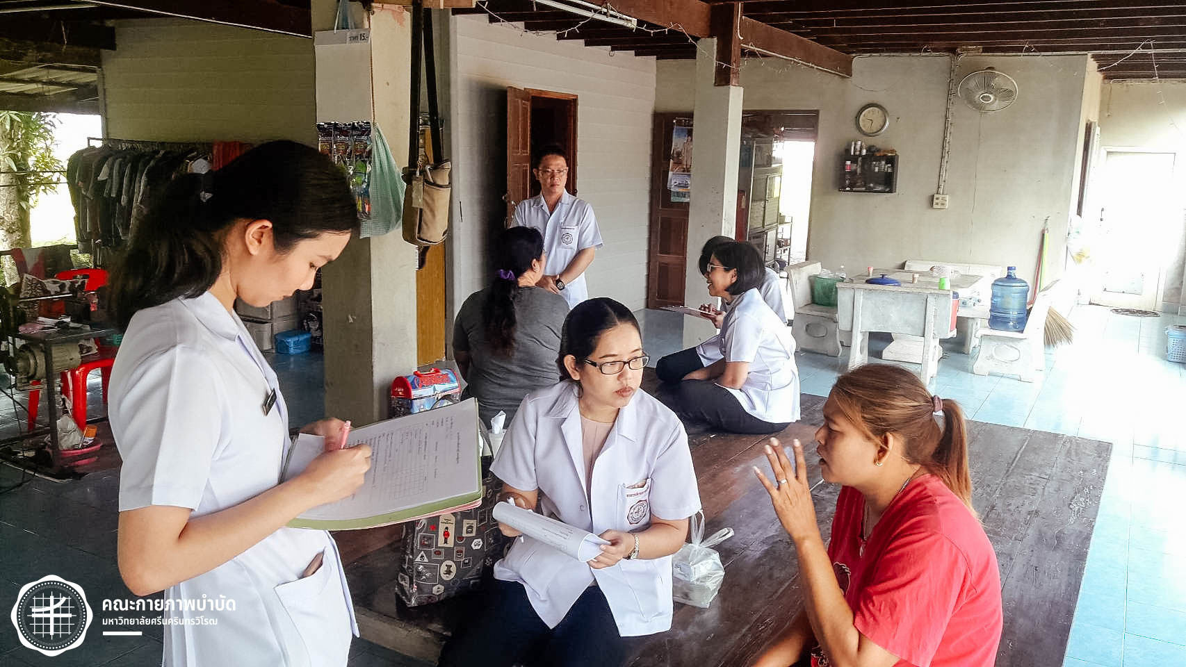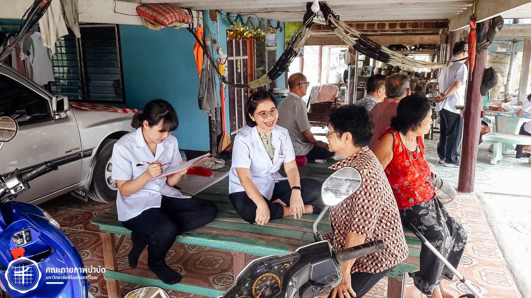 เมื่อวันที่ 12 กุมภาพันธ์ 2563 คณะกายภาพบำบัด มศว จัดโครงการบริการวิชาการ “เครือข่ายชุมชนต้นแบบในการดูแลผู้สูงอายุ” โดยมีกิจกรรม เยี่ยมบ้านและให้คำแนะนำเกี่ยวกับการดูแลสุขภาพผู้สูงอายุ ในพื้นที่บ้านเขมรฝั่งใต้ ต.โพธิ์แทน อำเภอองครักษ์ จังหวัดนครนายก ภาพ : อ.ดร.อ้อมใจ แต้เจริญวิริยะกุล