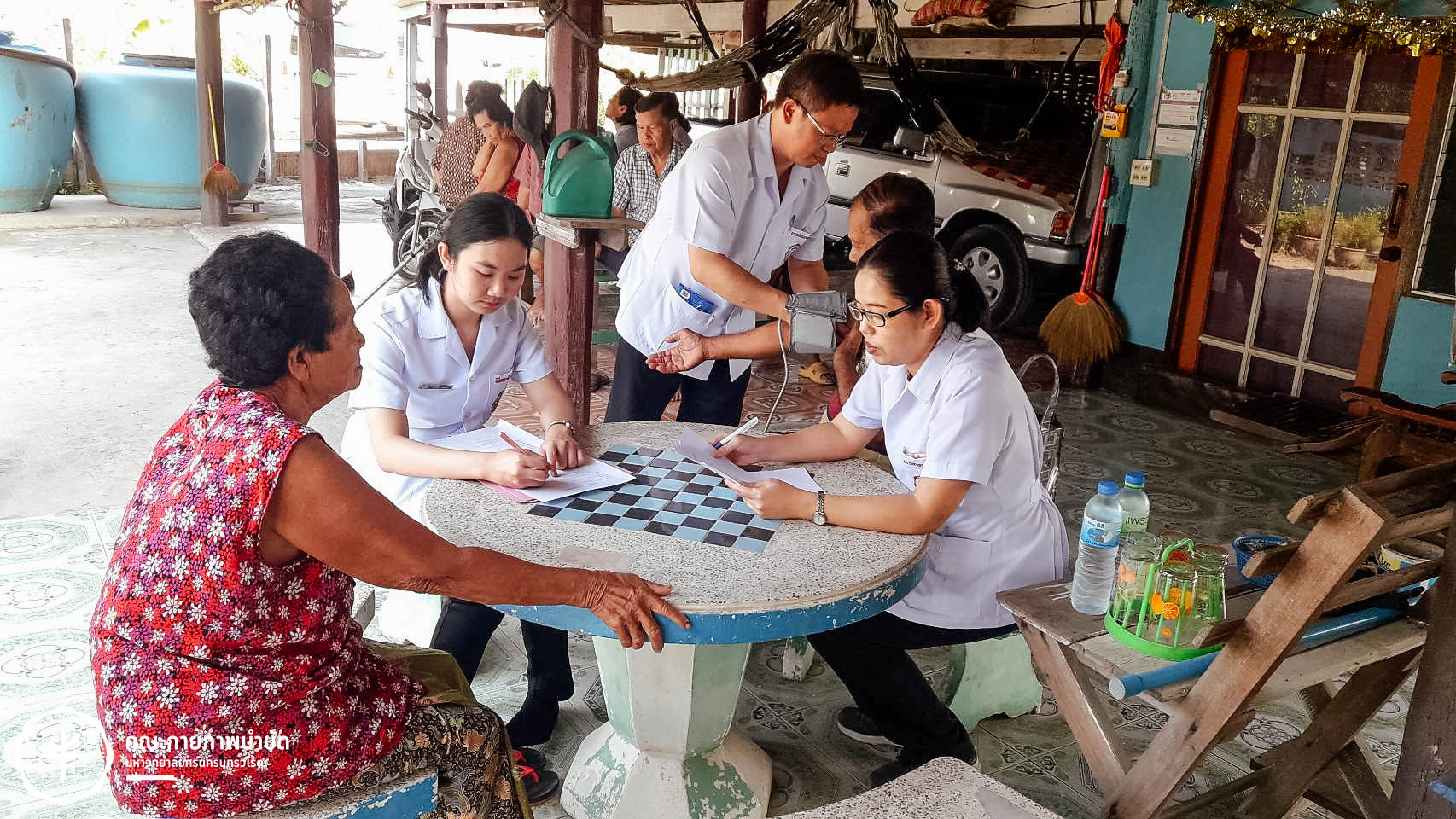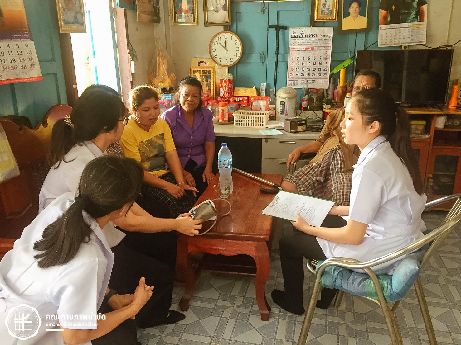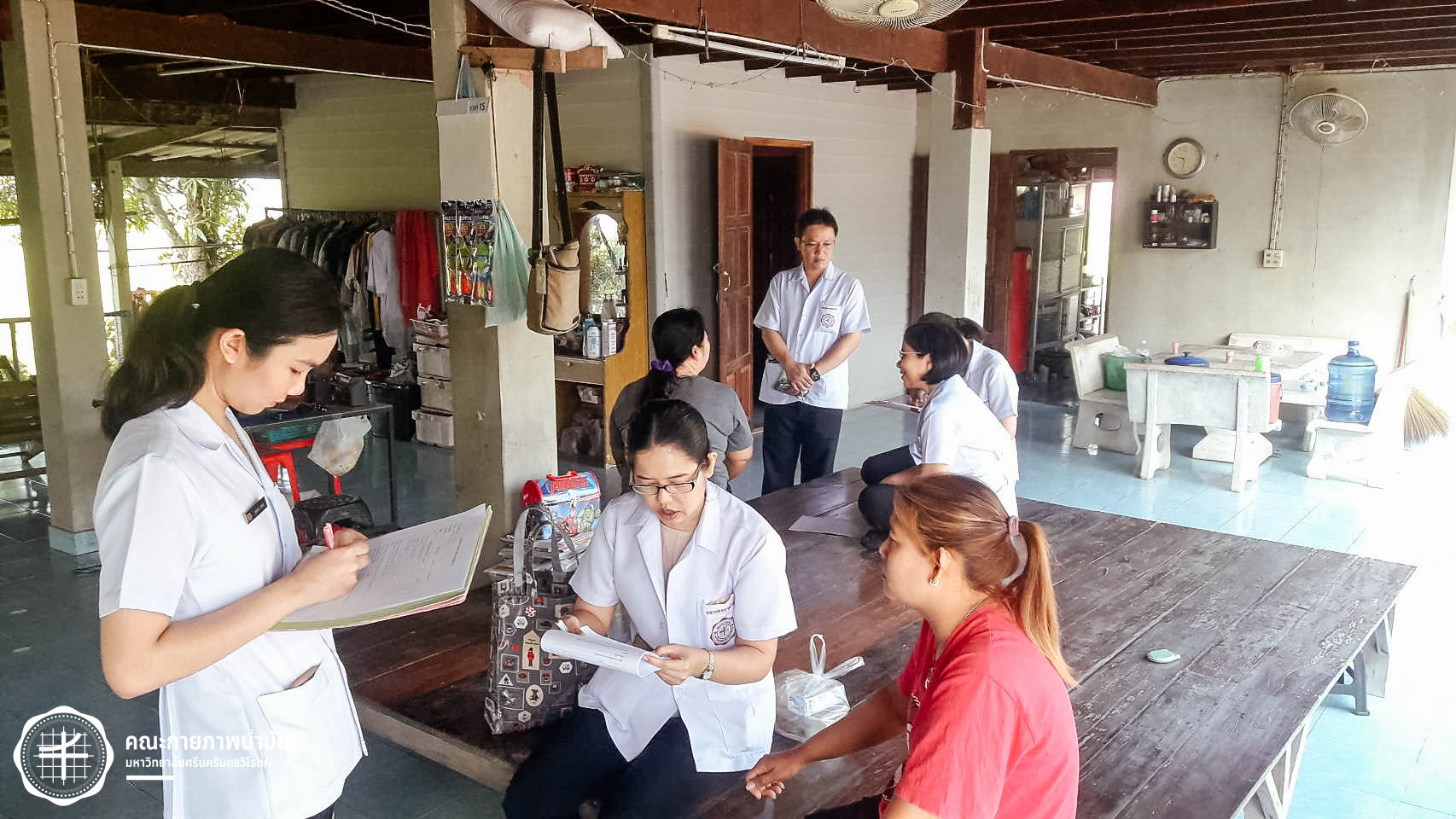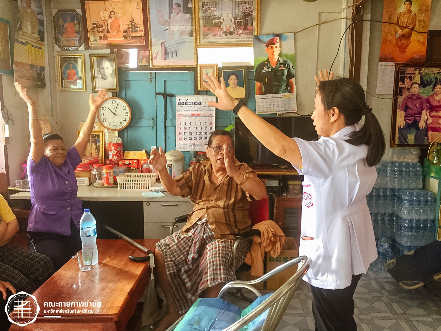 เมื่อวันที่ 12 กุมภาพันธ์ 2563 คณะกายภาพบำบัด มศว จัดโครงการบริการวิชาการ “เครือข่ายชุมชนต้นแบบในการดูแลผู้สูงอายุ” โดยมีกิจกรรม เยี่ยมบ้านและให้คำแนะนำเกี่ยวกับการดูแลสุขภาพผู้สูงอายุ ในพื้นที่บ้านเขมรฝั่งใต้ ต.โพธิ์แทน อำเภอองครักษ์ จังหวัดนครนายก ภาพ : อ.ดร.อ้อมใจ แต้เจริญวิริยะกุล