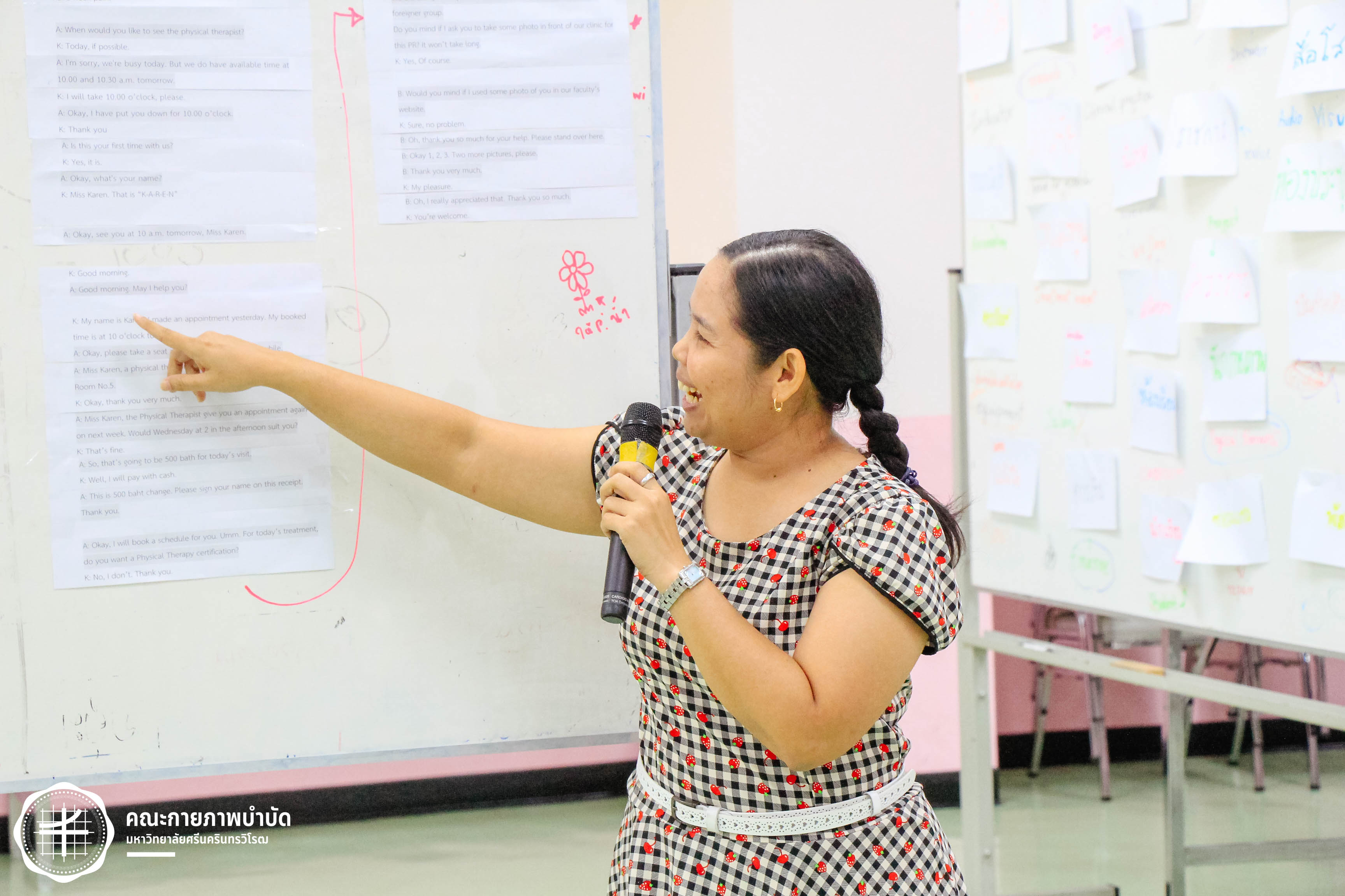 เมื่อวันที่ 20 กุมภาพันธ์ 2563 คณะกายภาพบำบัด มศว จัดโครงการพัฒนาการสื่อสารภาษาอังกฤษในการปฏิบัติงานของบุคลากรสายปฏิบัติการ เพื่อเพิ่มพูนความรู้ ความสามารถในการใช้ภาษาอังกฤษ สำหรับการสื่อสารในการปฏิบัติงานให้กับบุคคลากรสายปฏิบัติการ และสามารถต่อยอดความรู้และทักษะการสื่อสารภาษาอังกฤษในระดับที่สูงขึ้นต่อไป โดยมี อ.ดร.กนกวรรณ ทองโชติ อ.พิมพ์พร กล้วยอ่อน และ อ.ดร.อภิสรา โสมทัศน์ เป็นวิทยากร