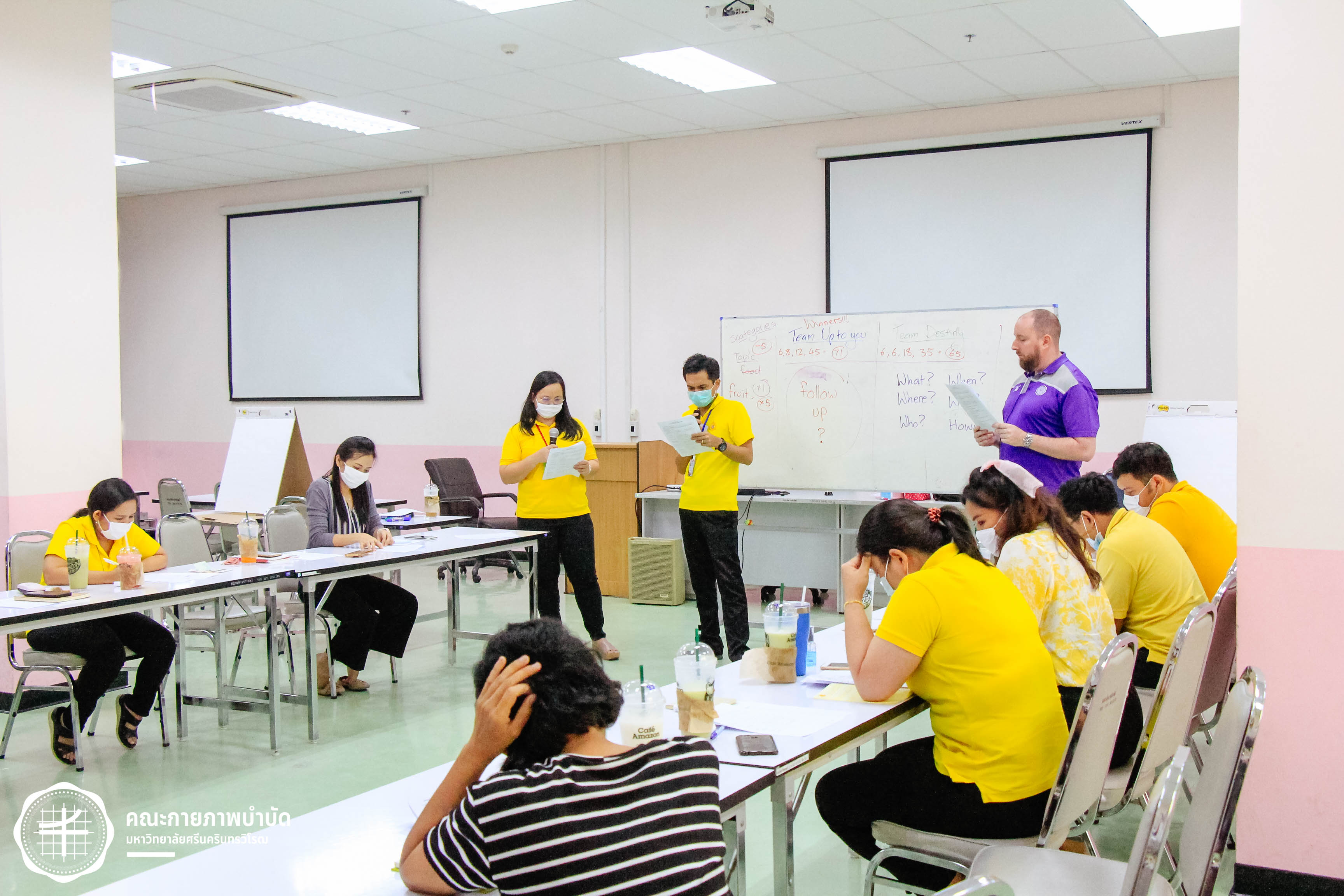เมื่อวันที่ 16 มีนาคม 2563 คณะกายภาพบำบัด มศว จัดโครงการพัฒนาการสื่อสารภาษาอังกฤษในการปฏิบัติงานของบุคลากรสายปฏิบัติการ เพื่อเพิ่มพูนความรู้ ความสามารถในการใช้ภาษาอังกฤษ สำหรับการสื่อสารในการปฏิบัติงานให้กับบุคคลากรสายปฏิบัติการ และสามารถต่อยอดความรู้และทักษะการสื่อสารภาษาอังกฤษในระดับที่สูงขึ้นต่อไป โดยมี Mr.Craig Morrison จากสถาบันวิจัย พัฒนา และสาธิตการศึกษา มหาวิทยาลัยศรีนครินทรวิโรฒ เป็นวิทยากร