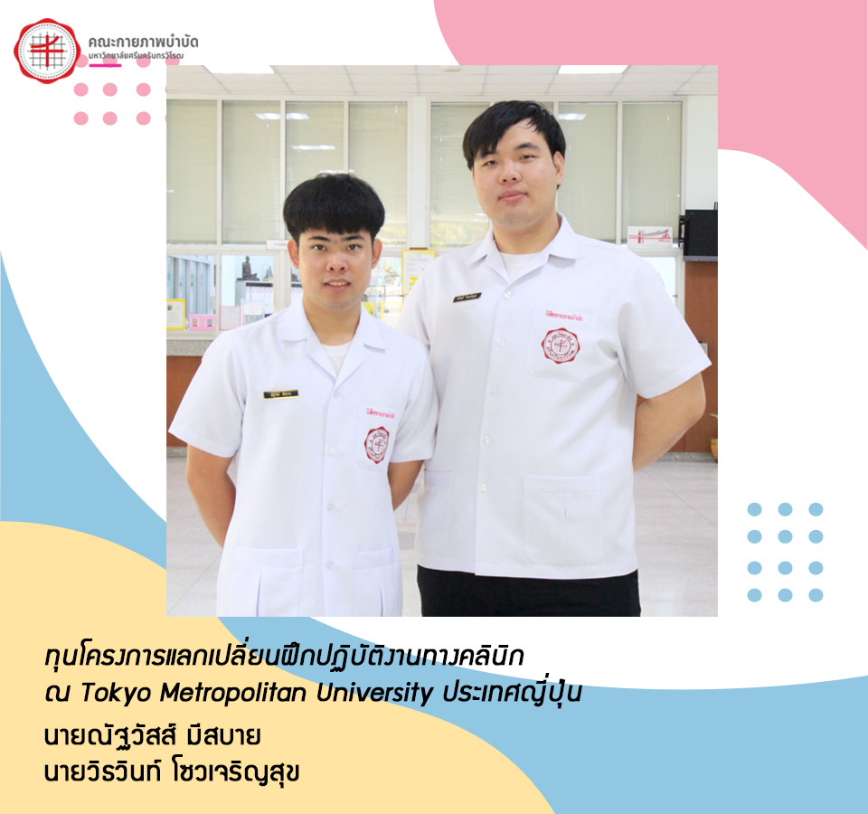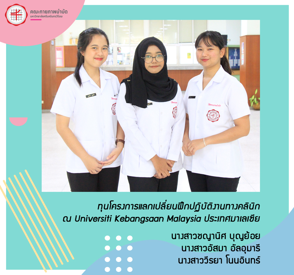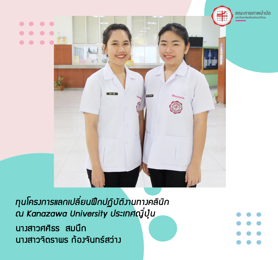 คณะกายภาพบำบัด มหาวิทยาลัยศรีนครินทรวิโรฒ ขอแสดงความยินดีกับนิสิตสาขากายภาพบำบัด ชั้นปีที่ 3 ที่ได้รับทุนโครงการแลกเปลี่ยนฝึกปฏิบัติงานทางคลินิก ณ ต่างประเทศ ทั้งหมด 3 ประเทศ ได้แก่