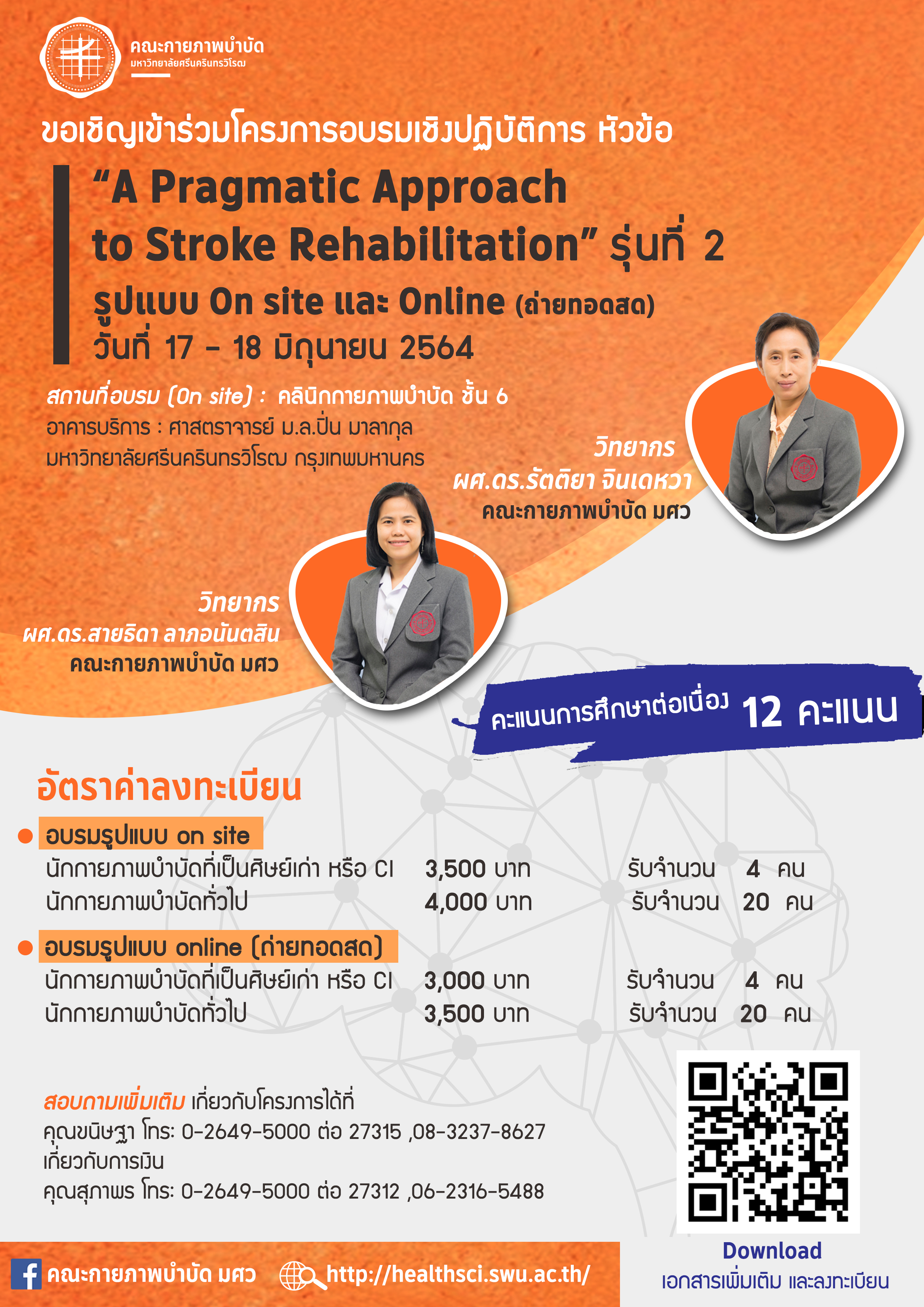 สามารถสอบถามเพิ่มเติมได้ที่ Inbox Facebook : คณะกายภาพบำบัด มศว https://www.facebook.com/ptswu