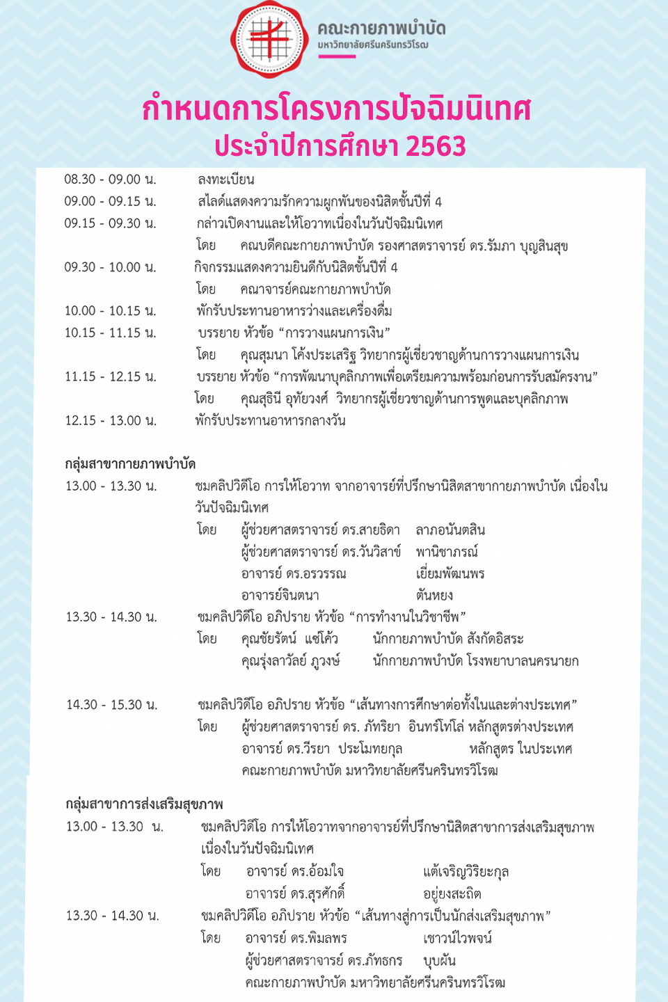 ชั้นปีที่ 4 ทุกท่าน เข้าร่วมโครงการปัจฉิมนิเทศ ปีการศึกษา 2563