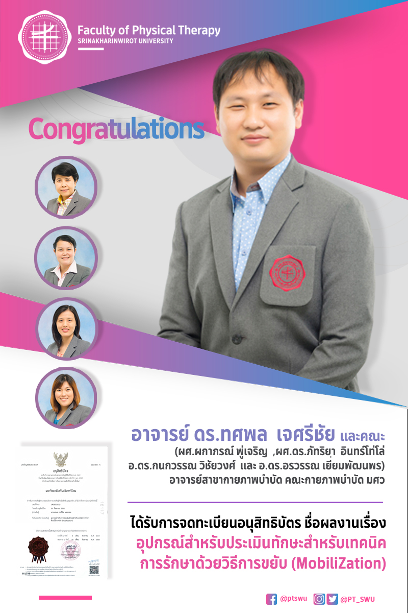 คณะกายภาพบำบัด มศว ขอแสดงความยินดีกับ อาจารย์ ดร.ทศพล เจศรีชัย และคณะ