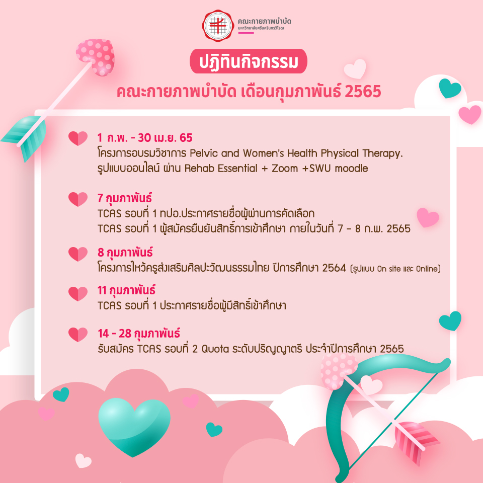 ปฏิทินกิจกรรม/โครงการ คณะกายภาพบำบัด มศว เดือนกุมภาพันธ์ 2565