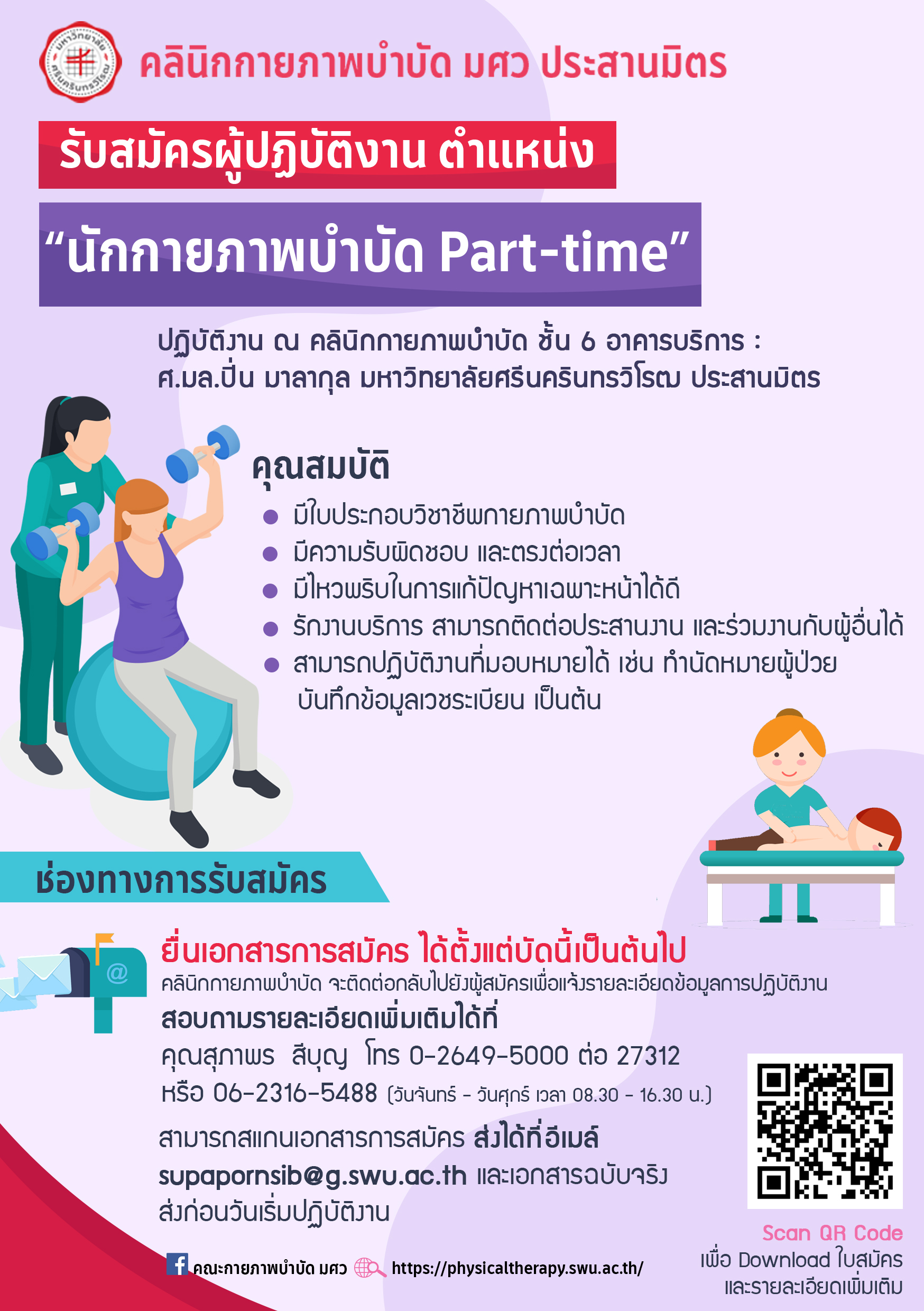 รับสมัครผู้ปฏิบัติงาน ตำแหน่งนักกายภาพบำบัด part-time