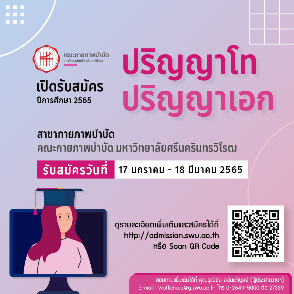 คณะกายภาพบำบัด มศว เปิดรับสมัครนิสิตระดับบัณฑิตศึกษา
