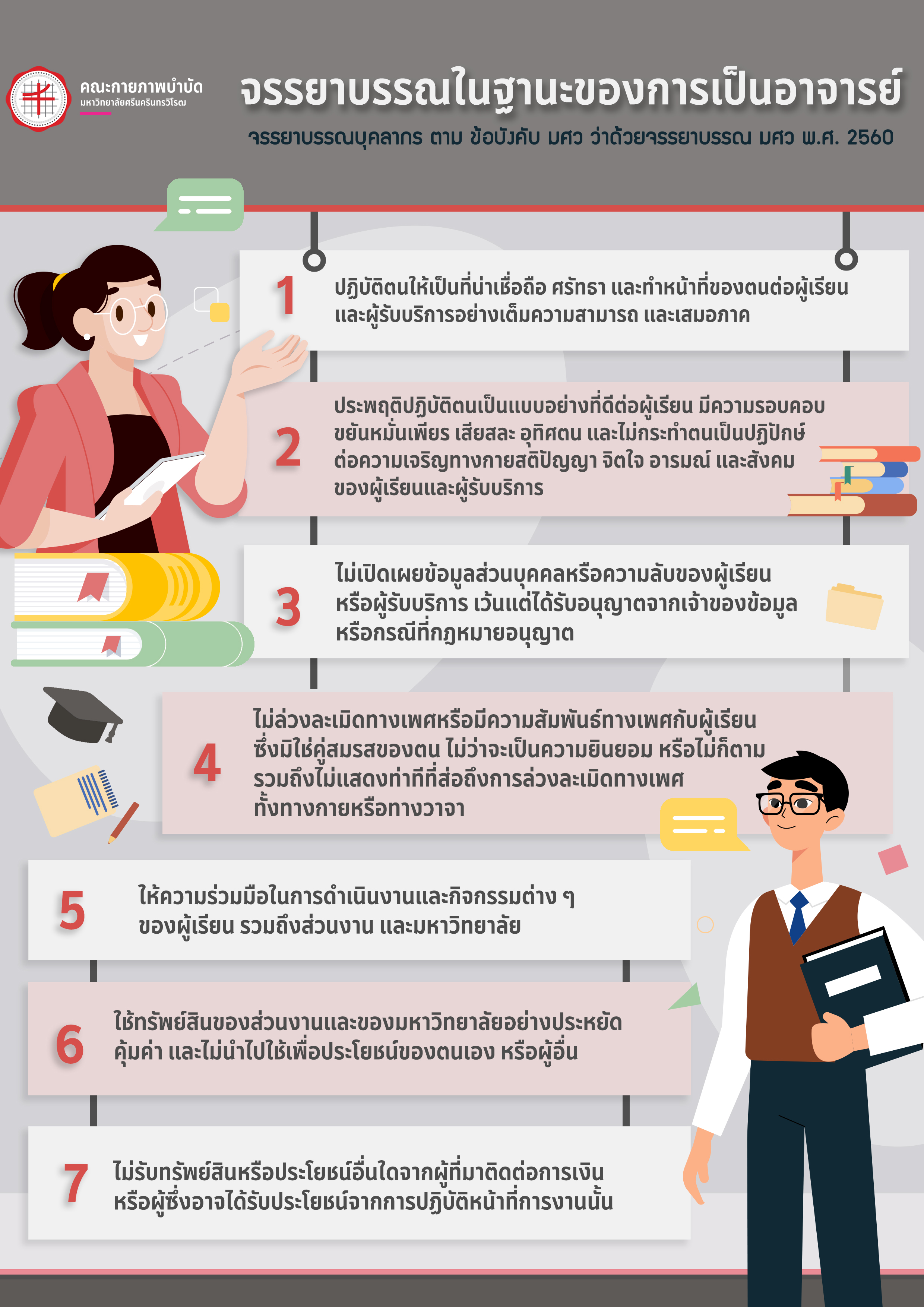ข่าวประชาสัมพันธ์ [ คณะกรรมการจริยธรรมและจรรยาบรรณบุคลากร ] ประชาสัมพันธ์ จรรยาบรรณบุคลากรและอาจารย์ คณะกายภาพบำบัด มศว ที่พึงกระทำ วันเริ่ม 2022-02-04 PreviousNext