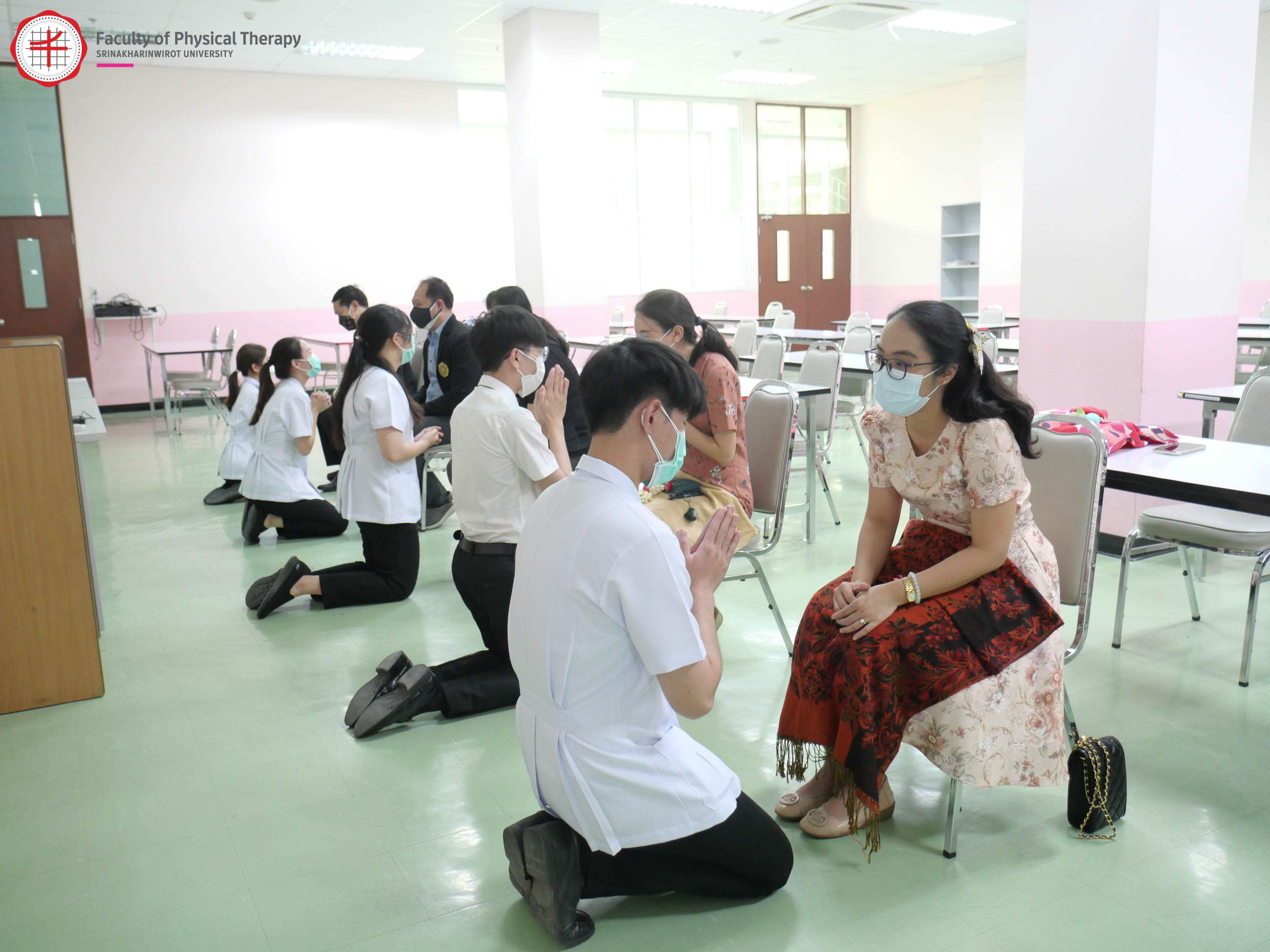 คณะกายภาพบำบัด มศว จัดโครงการไหว้ครูส่งเสริมศิลปวัฒนธรรมไทย ปีการศึกษา 2564 และพิธีมอบทุนการศึกษาและเกียรติบัตรแก่นิสิตที่มีผลการเรียนดีเด่น เมื่อวันอังคารที่ 8 กุมภาพันธ์ 2565 ณ ห้องประชุมใหญ่ คณะกายภาพบำบัด มศว และ Online ทาง Facebook Live เพื่อให้นิสิตแสดงความเคารพและระลึกถึงพระคุณครู อาจารย์ และมีส่วนร่วมในการสืบทอดวัฒนธรรม ประเพณี และมารยาทตามวัฒนธรรมอันดีงามของไทย และเพื่อเสริมสร้างอัตลักษ์นิสิตด้านการรู้กาลเทศะ อ่อนน้อมถ่อมตน และงามด้วยบุคลิก