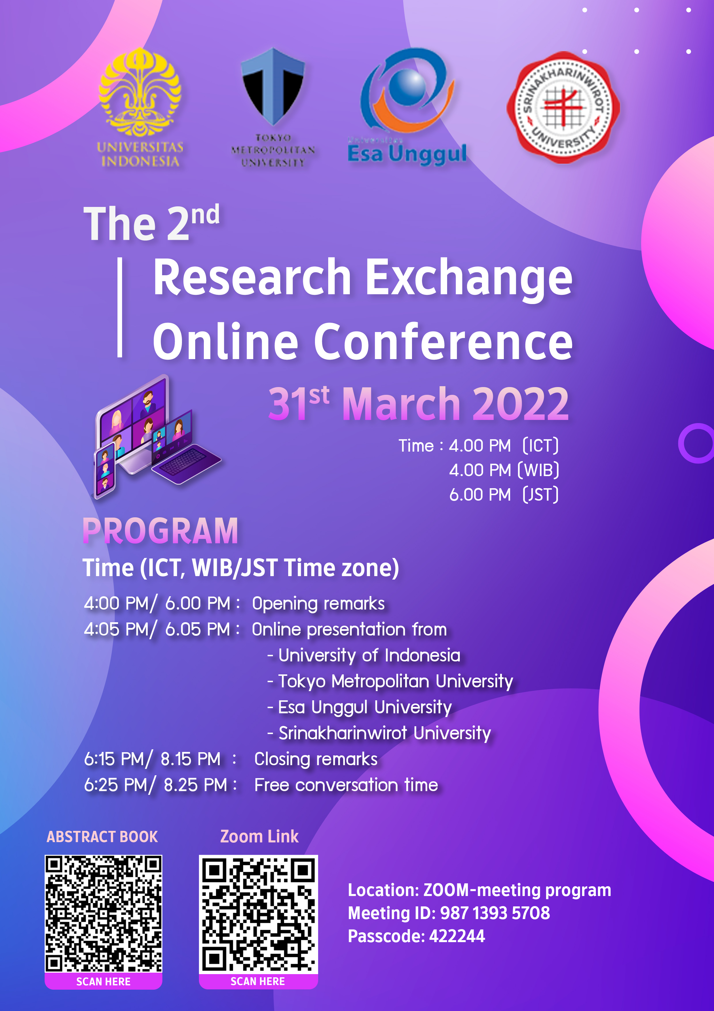 All lecturer and graduate students were invited to participate in the 2nd Research Exchange Online Conference which will be held on 31st March 2022 via Zoom-meeting program.