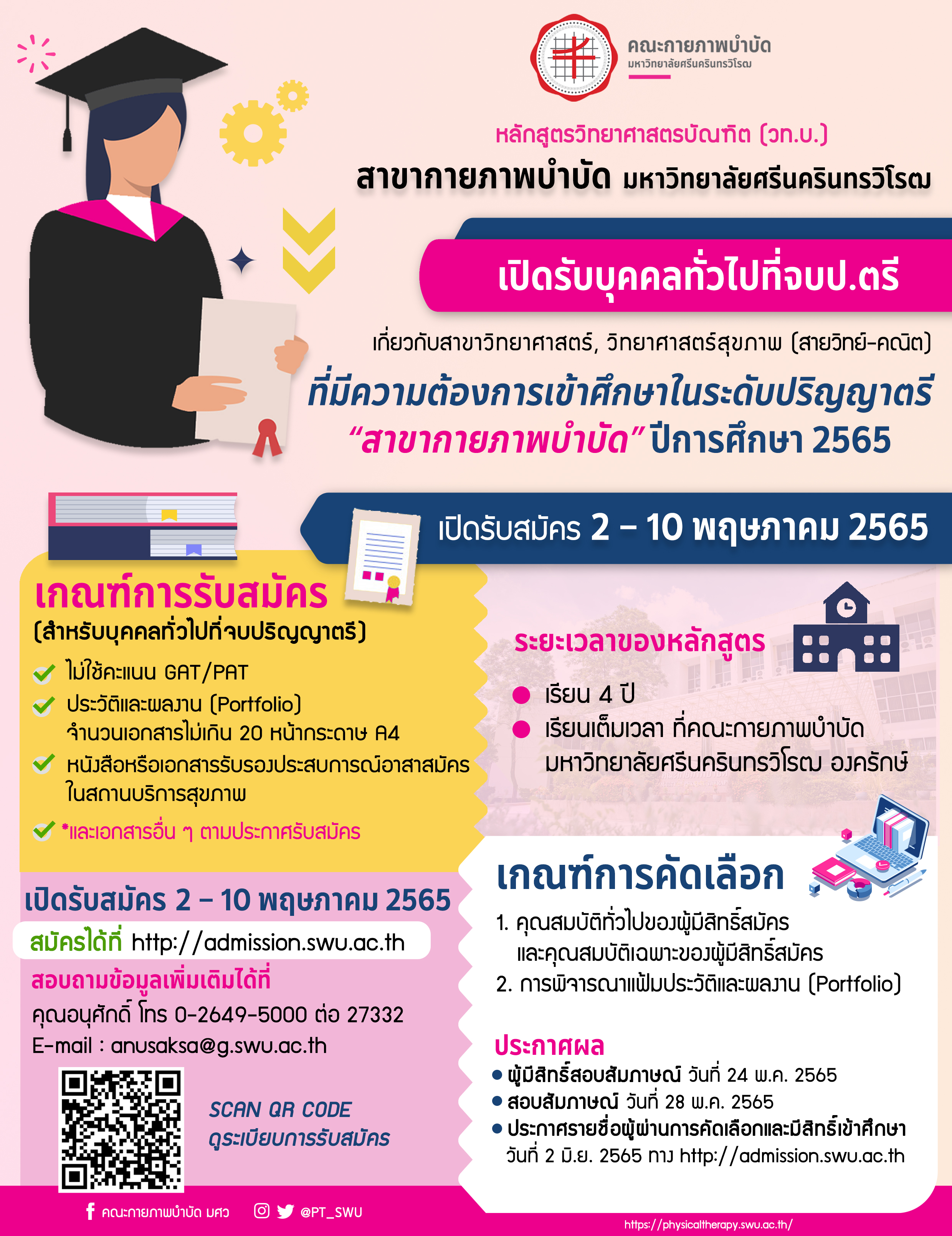 คณะกายภาพบำบัด มศว เปิดรับสมัครบุคคลทั่วไปที่จบปริญญาตรีเกี่ยวกับสาขาวิทยาศาสตร์, วิทยาศาสตร์สุขภาพ (สายวิทย์-คณิต)