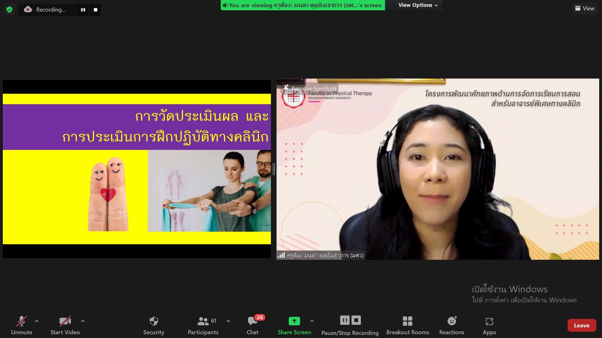 คณะกายภาพบำบัด มศว จัดโครงการพัฒนาศักยภาพด้านการจัดการเรียน