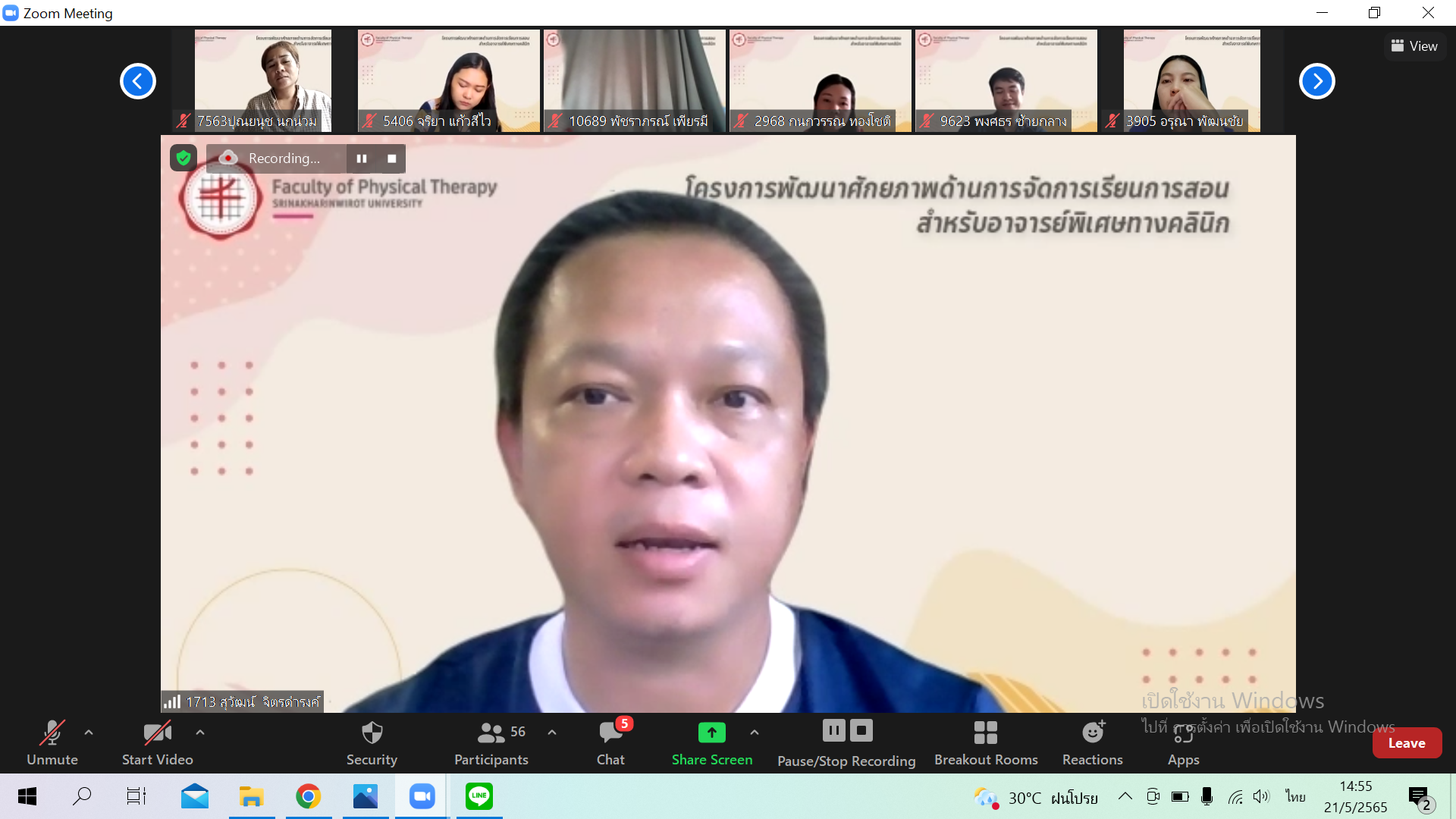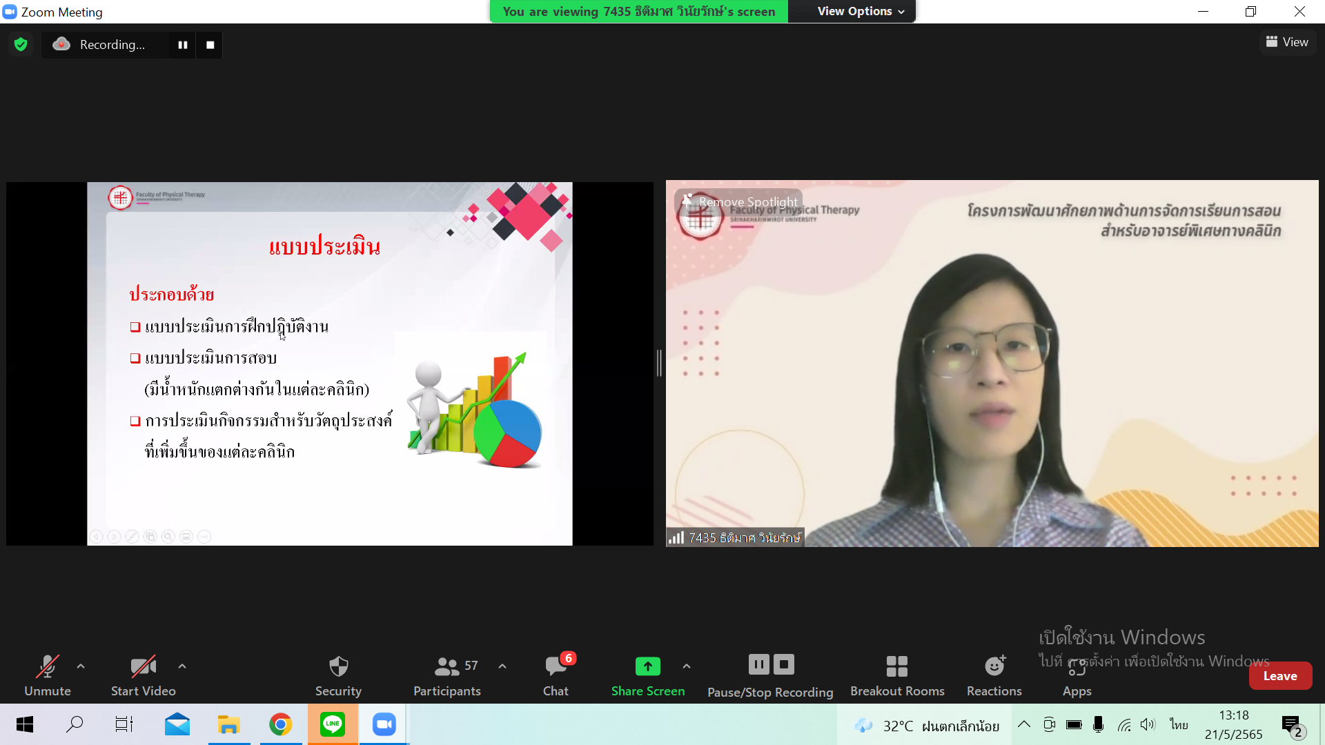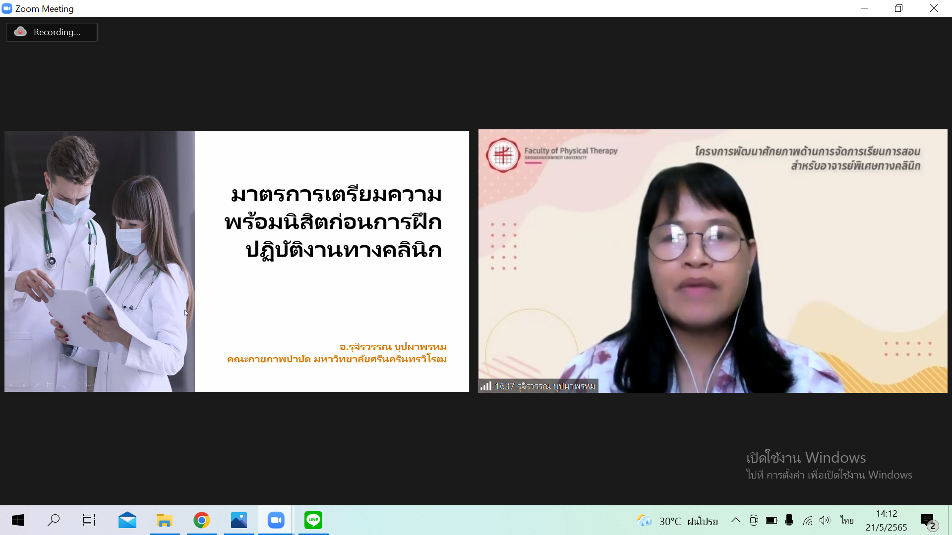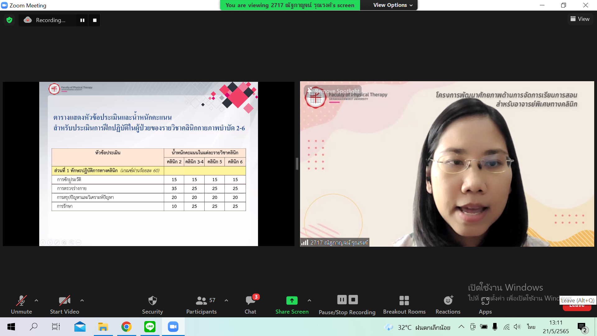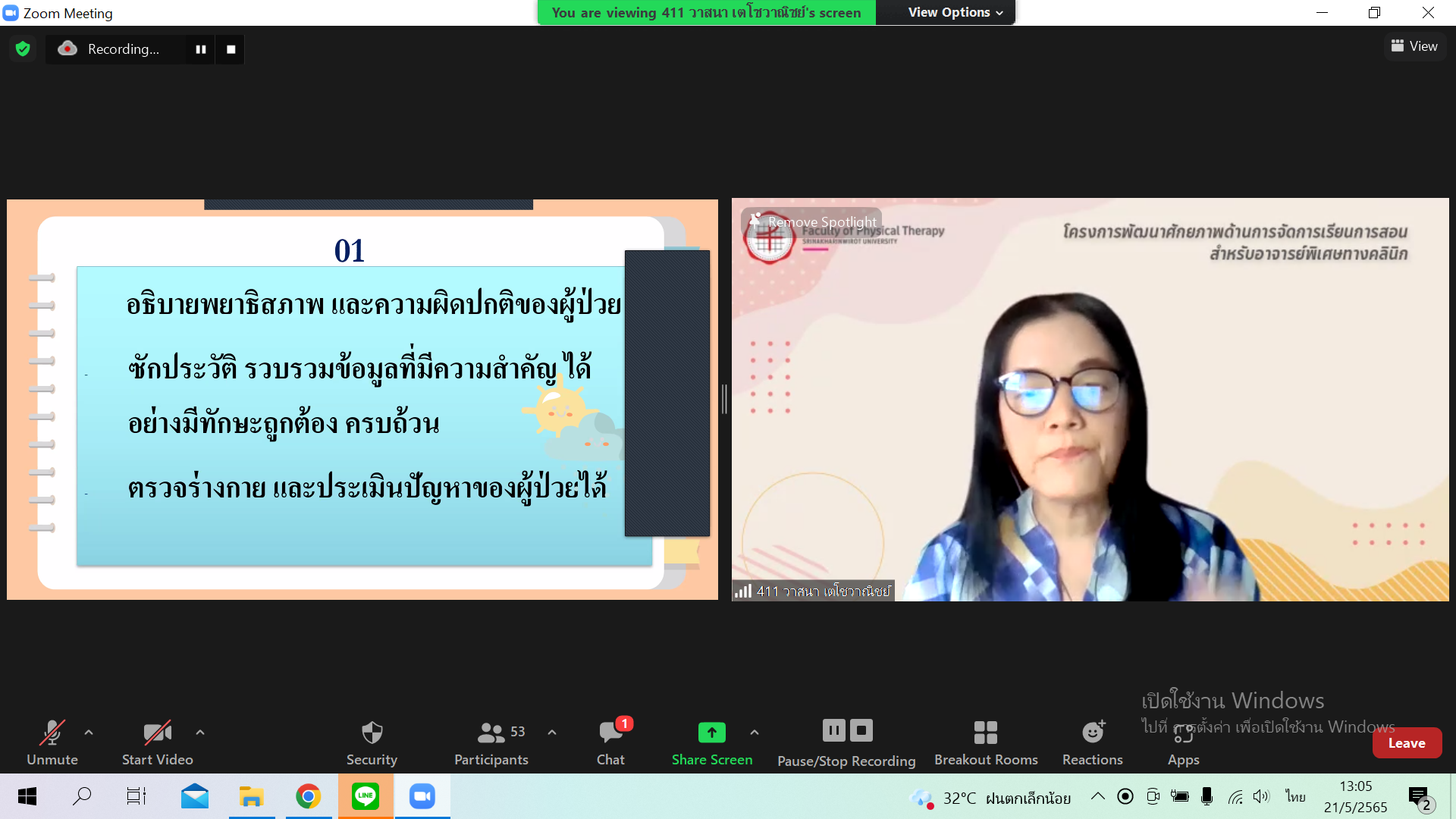 การสอนสำหรับอาจารย์พิเศษทางคลินิก เมื่อวันเสาร์ที่ 21 พฤษภาคม 2565 รูปแบบ Online ผ่าน Zoom Meeting ให้กับอาจารย์พิเศษทางคลินิก (CI)ของคณะกายภาพบำบัด โดยมีการบรรยายหัวข้อ