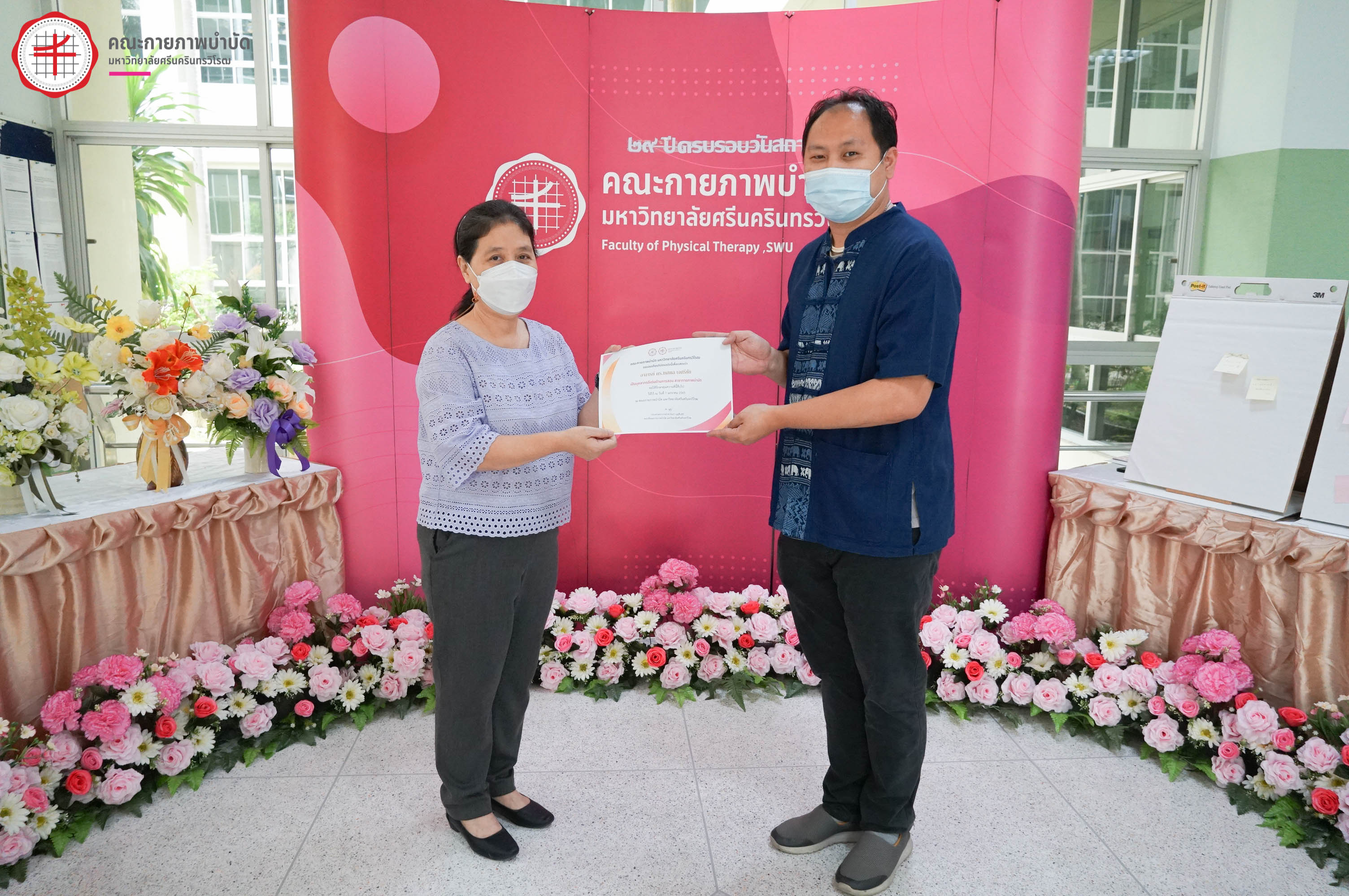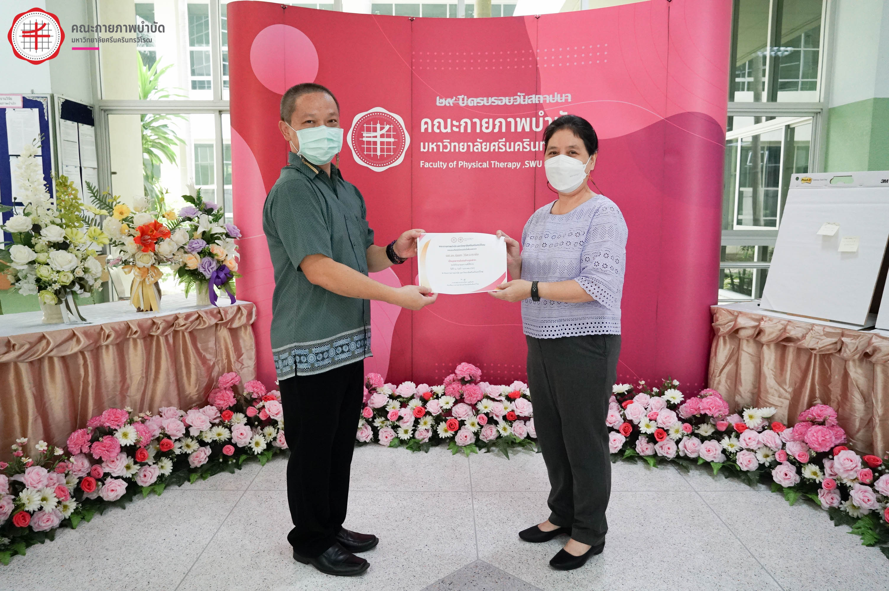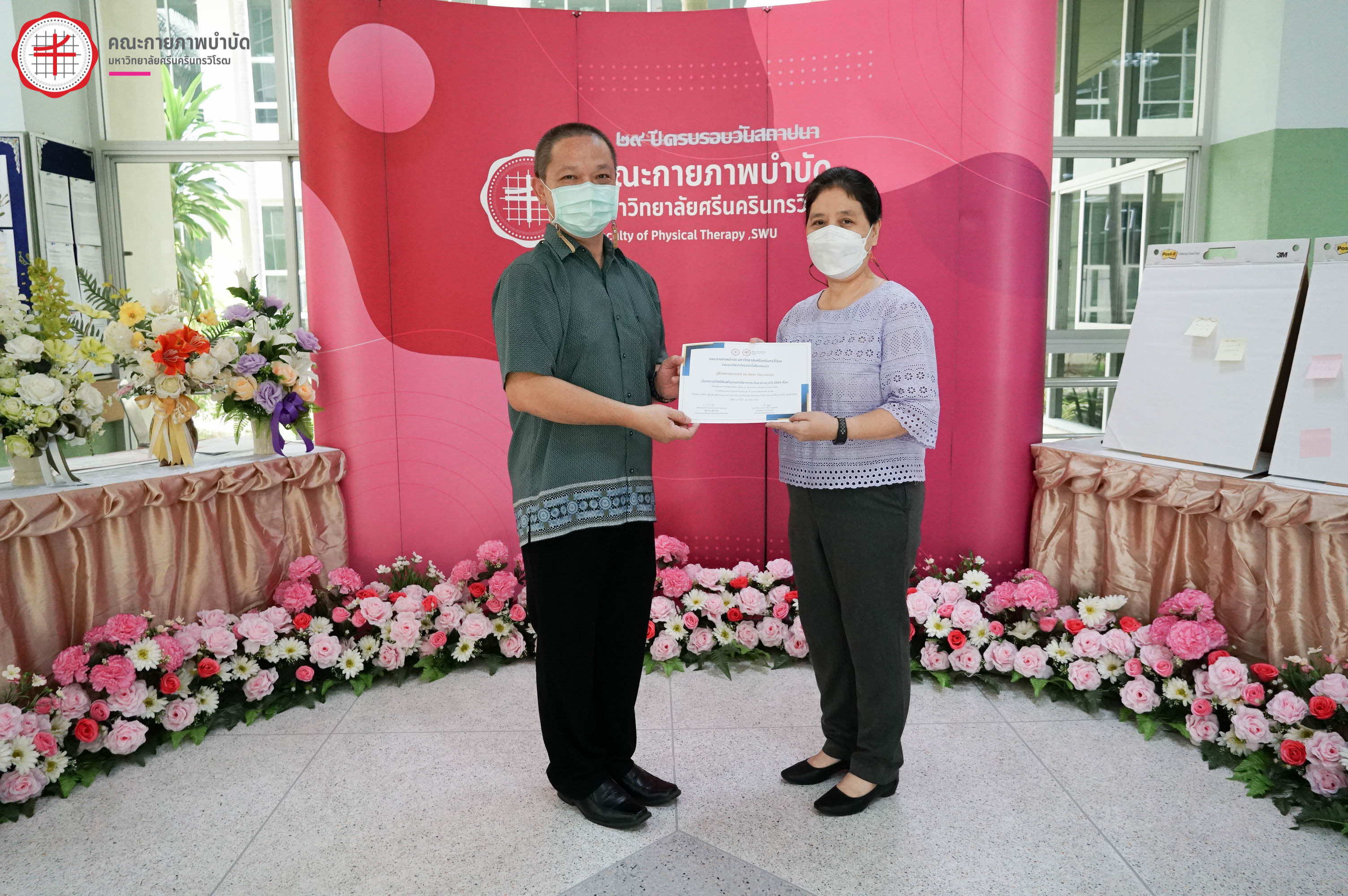 กิจกรรม คณะกายภาพบำบัด มศว จัดโครงการทำบุญเนื่องในวันคล้ายวันสถาปนาคณะกายภาพบำบัด 1 กันยายน 2565 ครบรอบ 29 ปี กิจกรรมที่ 1 ร่วมทำบุญข้าวสาร อาหารแห้ง และสิ่งของ ถวายพระสงฆ์ ณ วัดองครักษ์ธรรมปัญญาราม อ.องครักษ์ จ.นครนายก กิจกรรมที่ 2 พิธีมอบโล่รางวัลและเกียรติบัตรแก่บุคลากรที่มีผลงานวิจัยตีพิมพ์ที่สร้างชื่อเสียงให้กับคณะ และรางวัลบุคลากรดีเด่นด้านต่าง ๆ วันเริ่ม 2022-09-01 PreviousNext