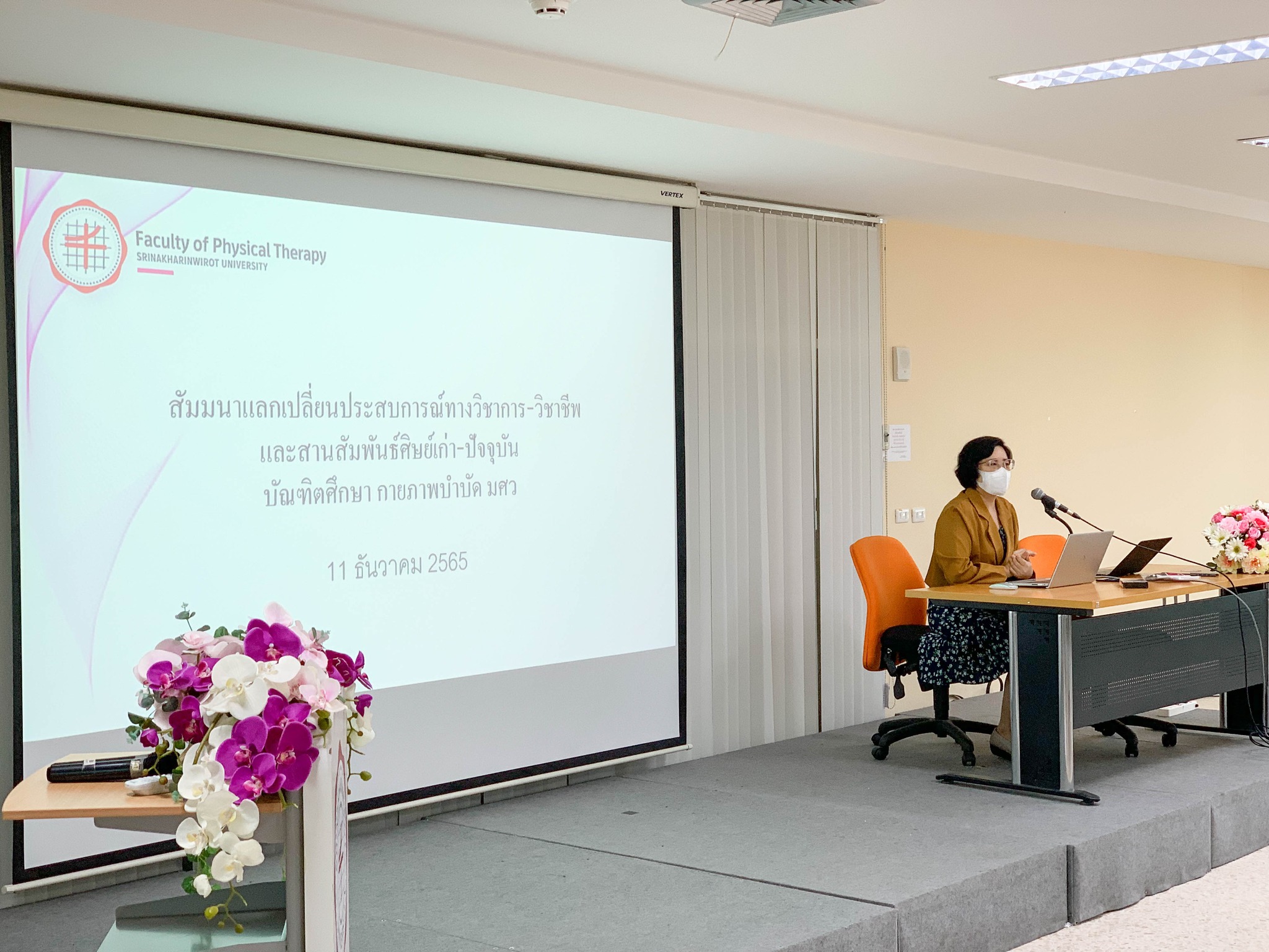 เมื่อวันที่ 11 ธันวาคม 2565 คณะกรรมการบริหารหลักสูตรบัณฑิตศึกษา คณะกายภาพบำบัด มศว ได้จัดโครงการ สัมมนาแลกเปลี่ยนประสบการณ์ทางวิชาการ-วิชาชีพ และสานสัมพันธ์ศิษย์เก่า-ศิษย์ปัจจุบัน ที่ ณ สถาบันยุทธศาสตร์ทางปัญญาและวิจัย อาคารนวัตกรรม ศาสตราจารย์ ดร.สาโรช บัวศรี ชั้น 19 มหาวิทยาลัยศรีนครินทรวิโรฒ