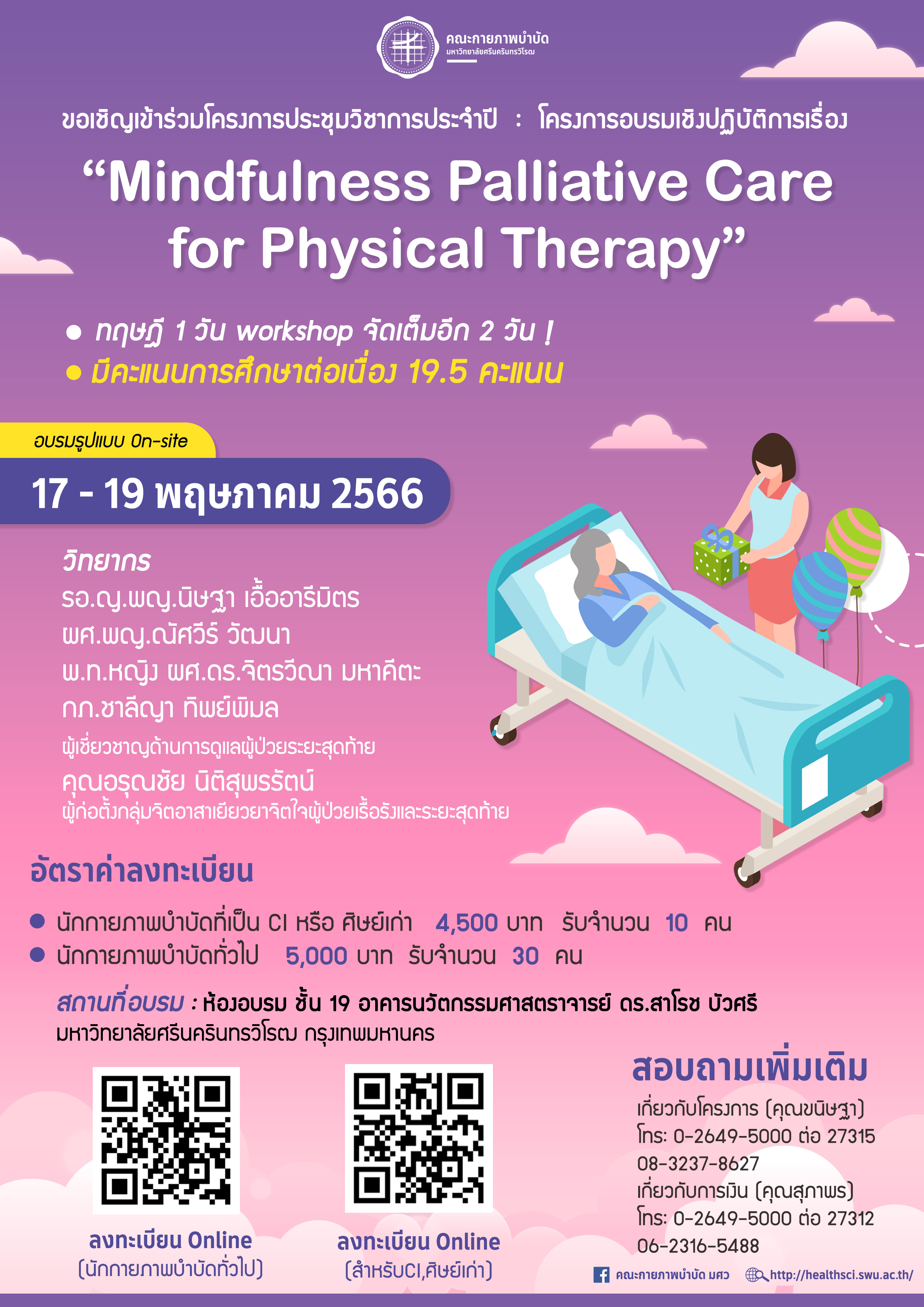 ขอเชิญเข้าร่วมโครงการอบรมเชิงปฏิบัติการเรื่อง “Mindfulness palliative care for physical therapy”
