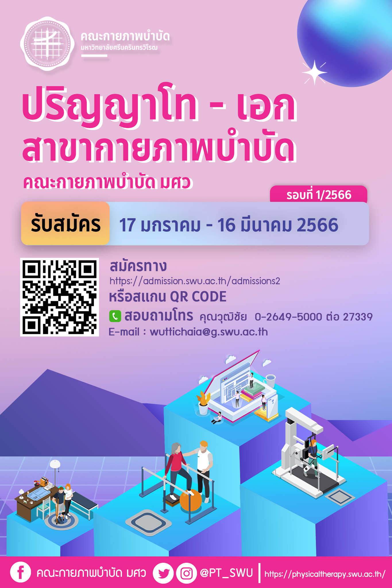 คณะกายภาพบำบัด มศว เปิดรับสมัครนิสิตระดับบัณฑิตศึกษา