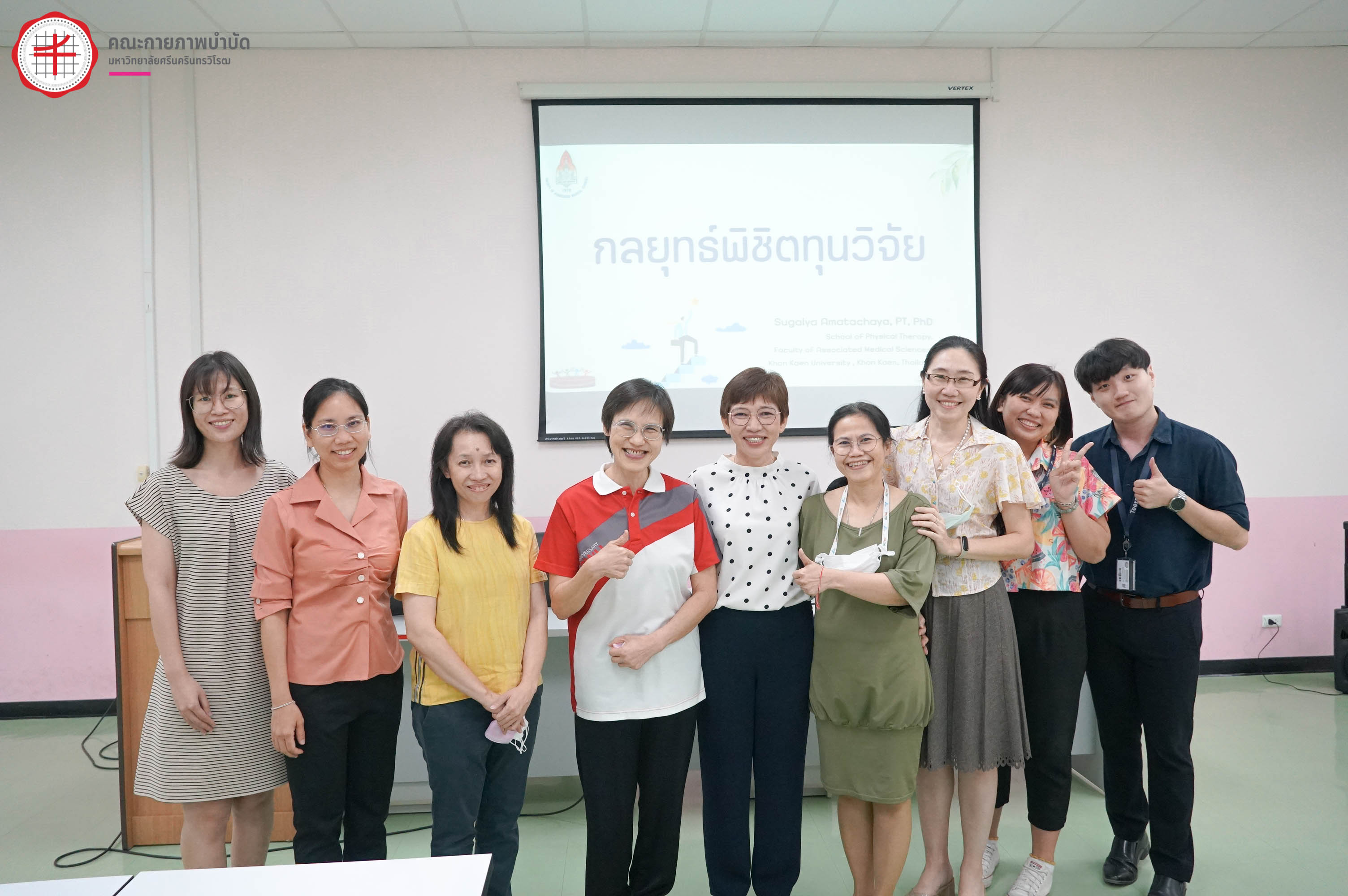 วันที่ 27 เมษายน 2566 ฝ่ายวิจัย คณะกายภาพบำบัด มศวจัดโครงการอบรมเชิงปฏิบัติการ หัวข้อ “กลยุทธ์พิชิตทุนวิจัย" ให้กับคณาจารย์คณะกายภาพบำบัด โดยได้เกียรติจาก รศ.ดร.กภ.สุกัลยา อมตฉายา สังกัดสาขาวิชากายภาพบำบัด คณะเทคนิคการแพทย์ มหาวิทยาลัยขอนแก่น เป็นวิทยากรถ่ายทอดความรู้ในการอบรมครั้งนี้