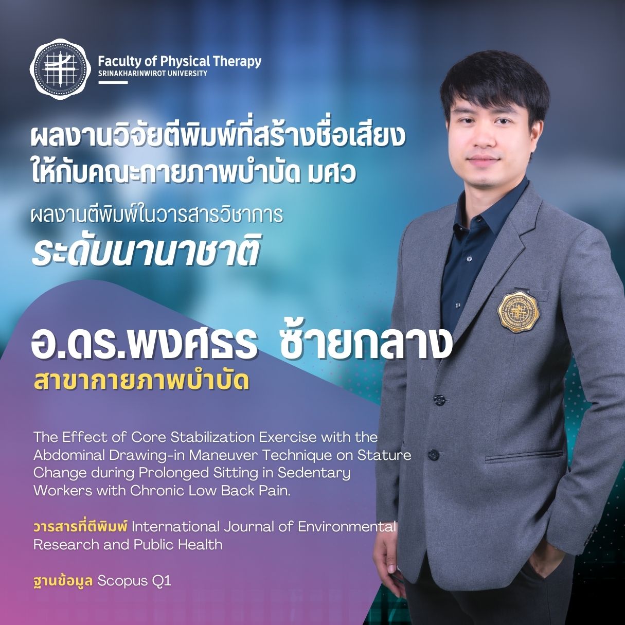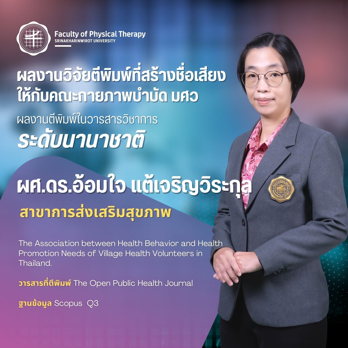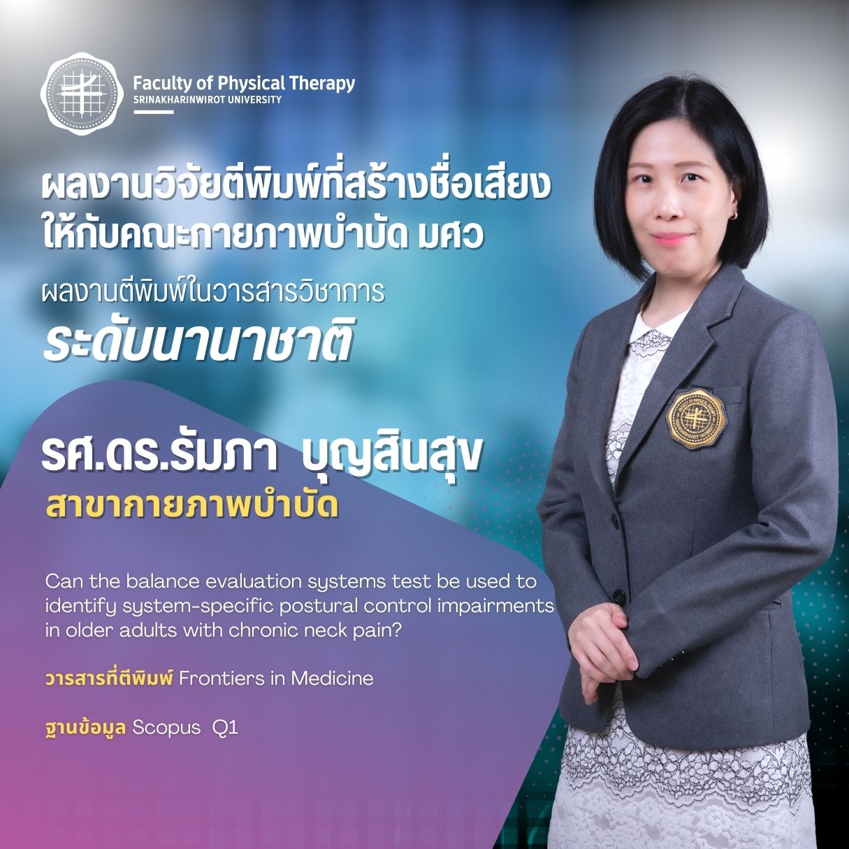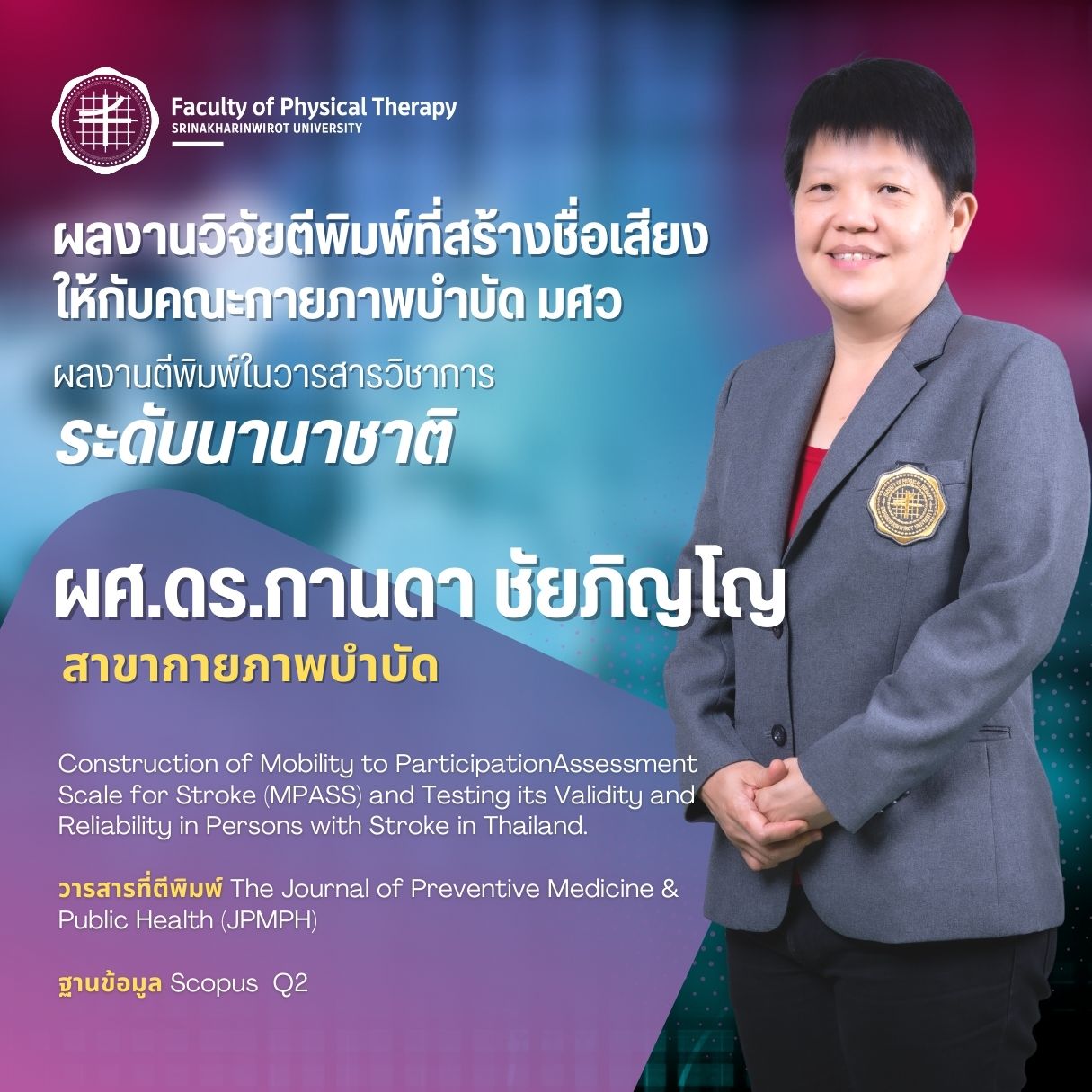 คณะกายภาพบำบัด มศว มอบรางวัลบุคลากรที่มีผลงานวิจัยตีพิมพ์ ในวารสารวิชาการระดับนานาชาติ ที่สร้างชื่อเสียงให้กับคณะกายภาพบำบัด มศว