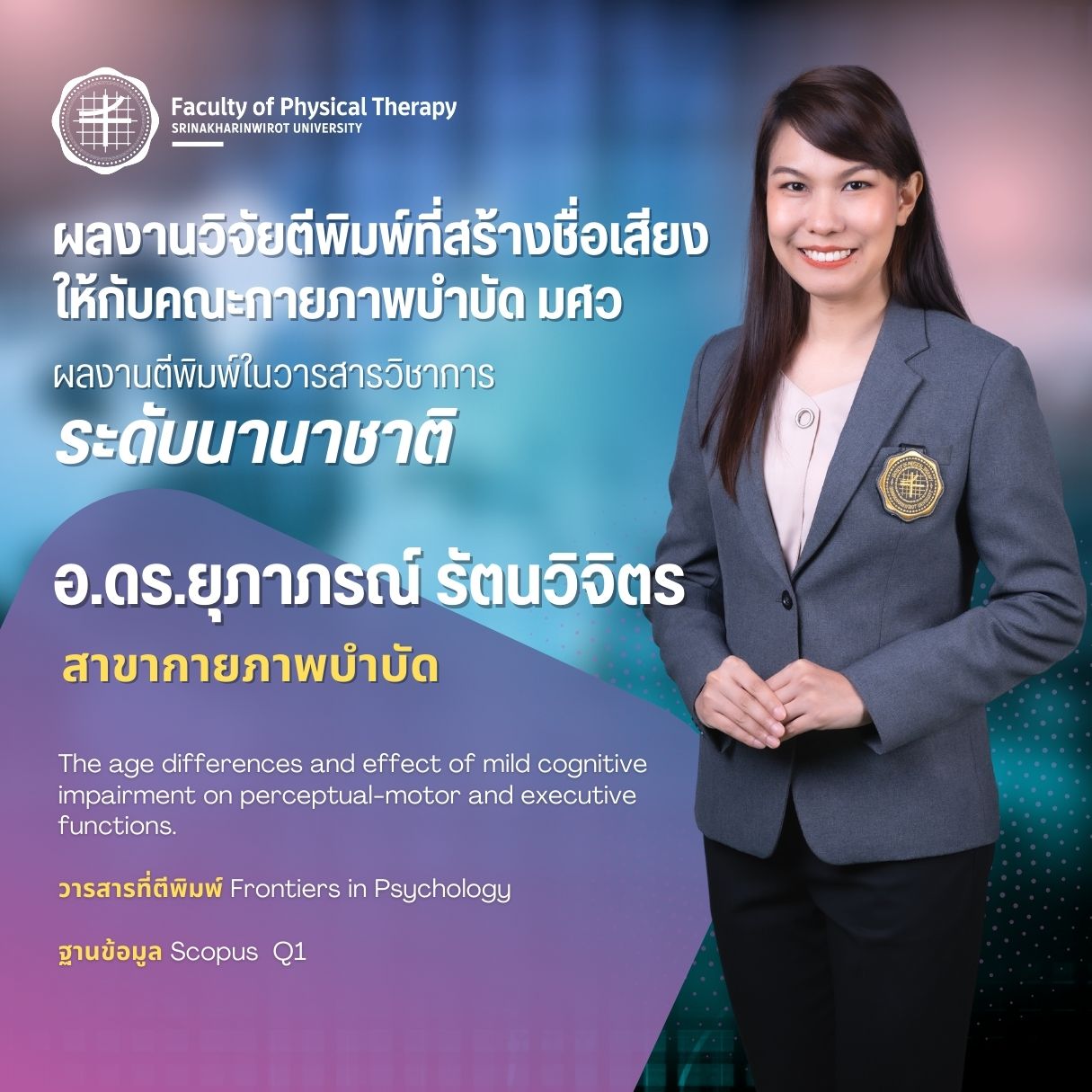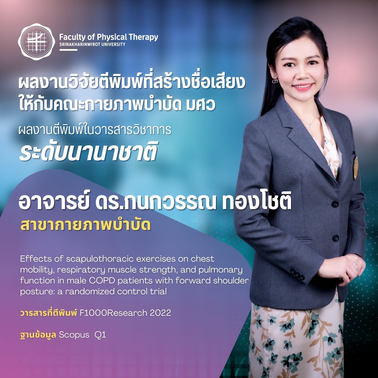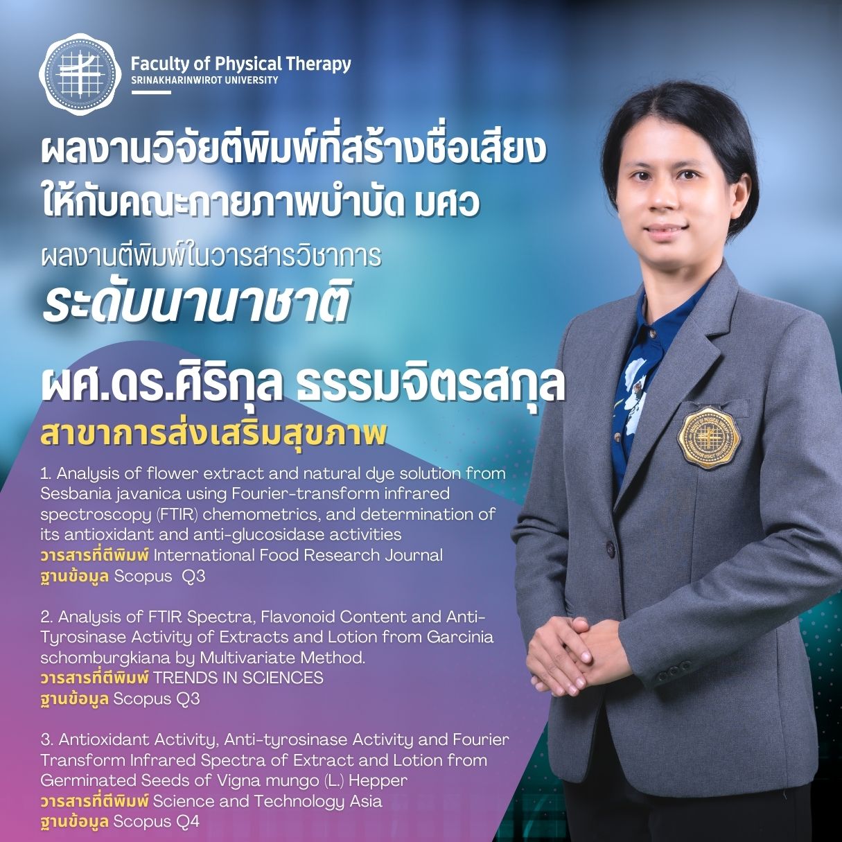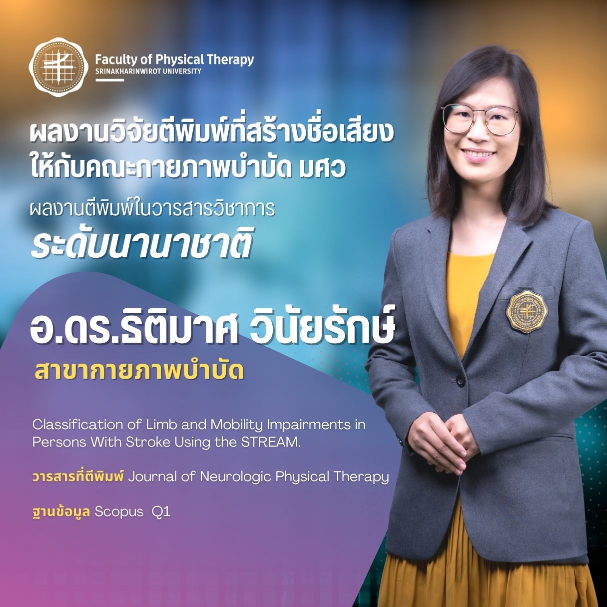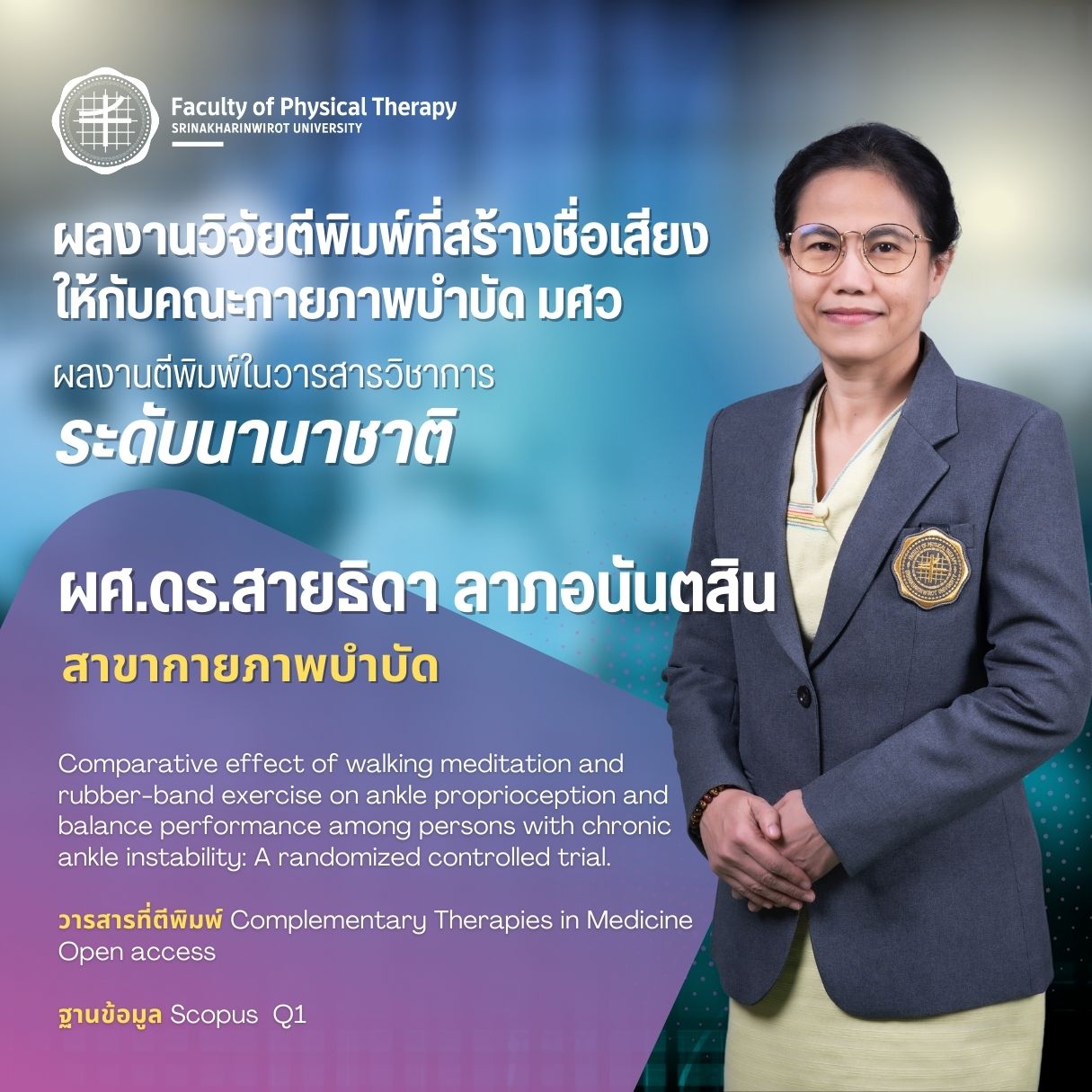 คณะกายภาพบำบัด มศว มอบรางวัลบุคลากรที่มีผลงานวิจัยตีพิมพ์ ในวารสารวิชาการระดับนานาชาติ ที่สร้างชื่อเสียงให้กับคณะกายภาพบำบัด มศว
