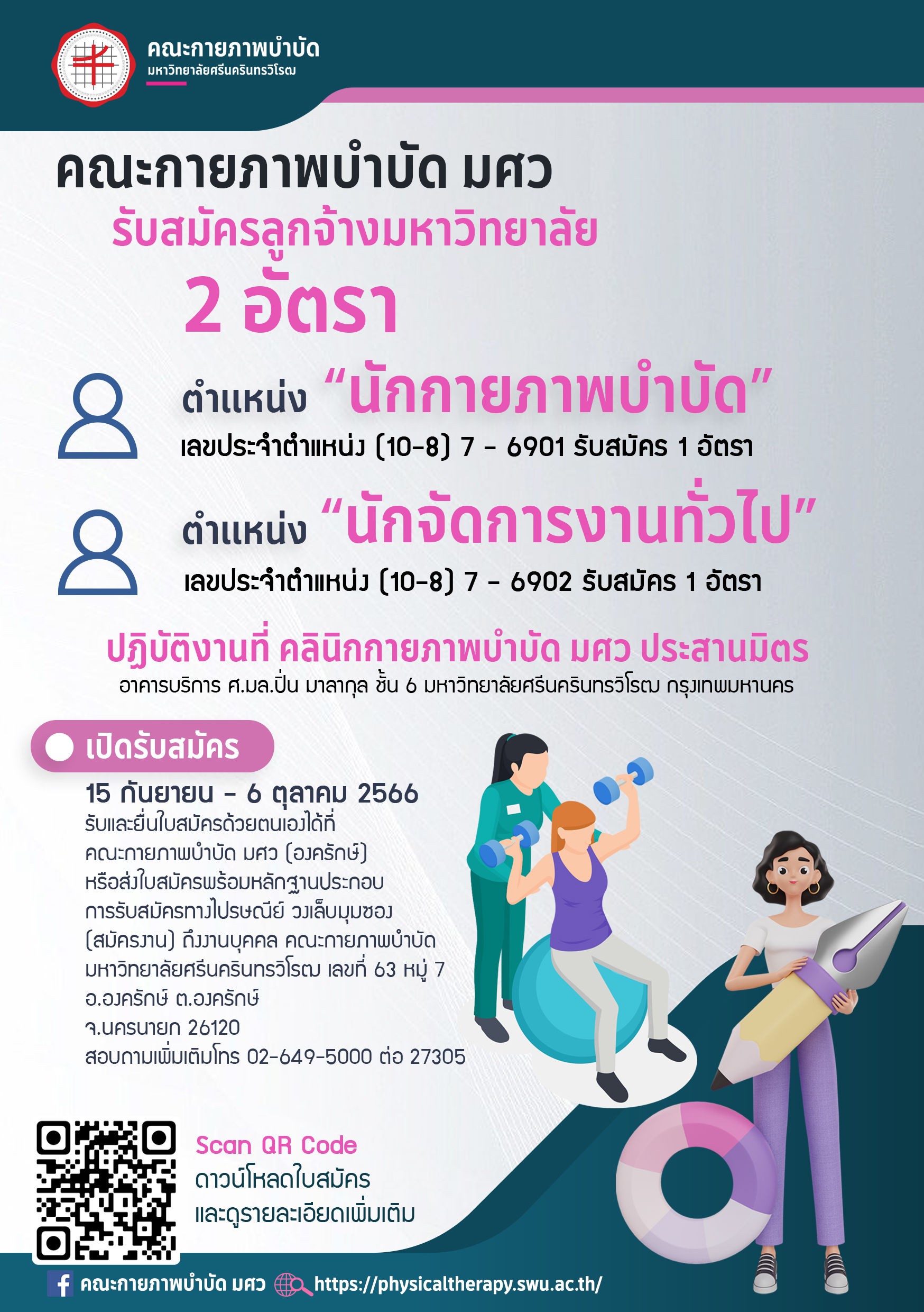 คณะกายภาพบำบัด มศว รับสมัครลูกจ้างมหาวิทยาลัย 2 อัตรา